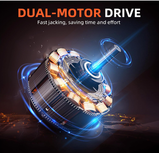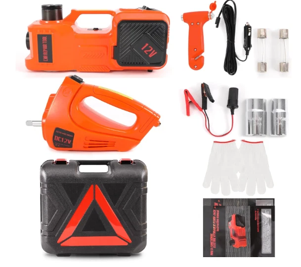 Kit de gato eléctrico hidráulico 5T para coche, con bomba de inflado y llave de impacto integradas, perfecto para cambios de neumáticos y reparaciones en garaje. Gato Eléctrico 5T: Alimentado por un motor de 12 V, se conecta al encendedor de cigarrillos o a la corriente del automóvil. Con un solo botón, eleva la mayoría de los vehículos de menos de 5 toneladas a una altura máxima de 45 cm en 2 minutos. Bomba de aire integrada para un inflado rápido y un cambio de neumáticos sencillo. Potente llave de impacto: Este kit de gato para automóvil incluye una llave de impacto eléctrica con carcasa de ABS, cuerpo de acero inoxidable y motor de cobre de alto rendimiento. Ofrece bajo nivel de ruido, alta potencia y un potente par para una rápida extracción de pernos y una rotación de 360°. Uso versátil: Este kit de gato para automóvil integra funciones de elevación, inflado, iluminación y extracción de neumáticos. Su compresor de aire integrado infla los neumáticos a 35 L/min en 2 minutos, mientras que la luz LED integrada facilita el cambio de neumáticos por la noche. Garantía de seguridad: Este gato eléctrico 5T cuenta con una parada automática a la altura máxima para evitar caídas repentinas durante un corte de energía, con liberación manual para un descenso seguro. El disyuntor integrado evita sobrecargas. Compañero perfecto para el coche: Imprescindible para su coche, ideal para viajes largos o zonas remotas. Reemplace fácilmente los neumáticos sin esfuerzo manual ni ayuda externa. Ideal para garajes, granjas, carreteras y aventuras en carretera.