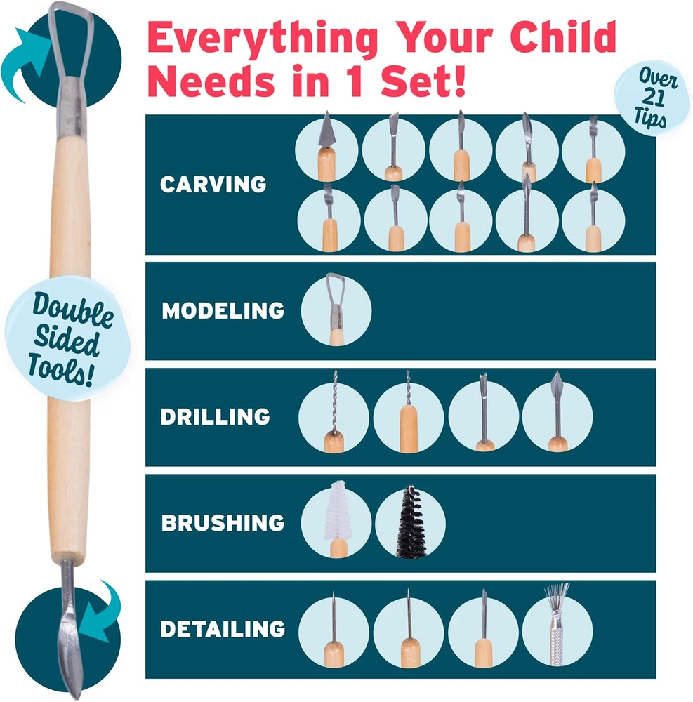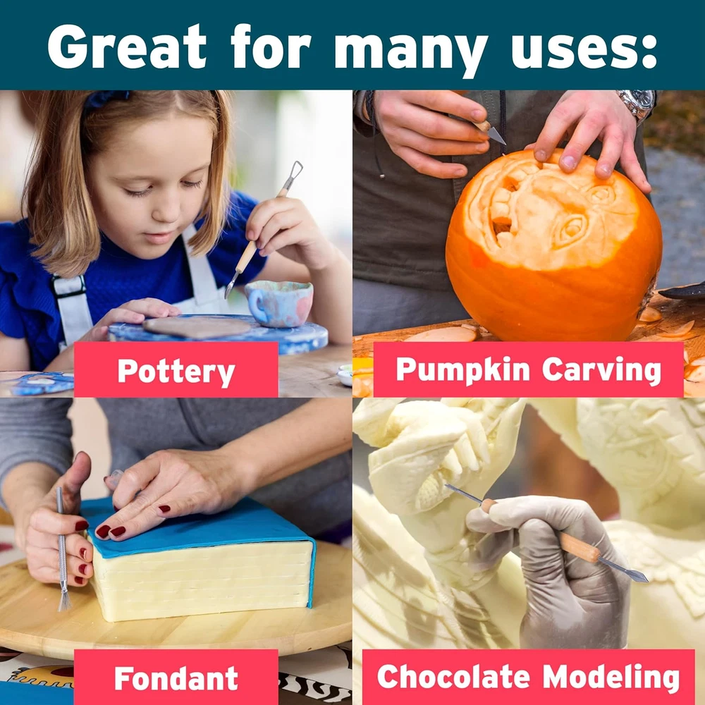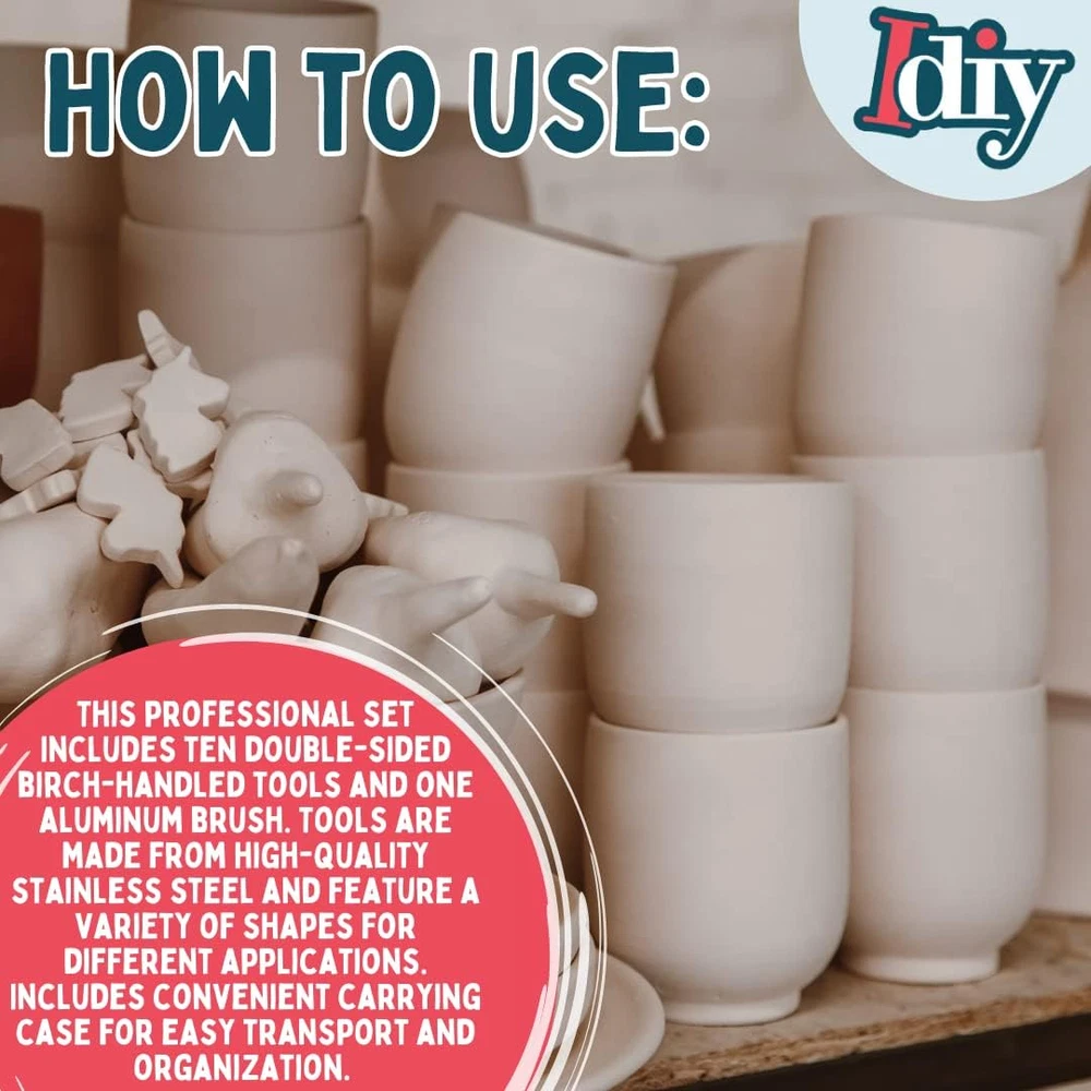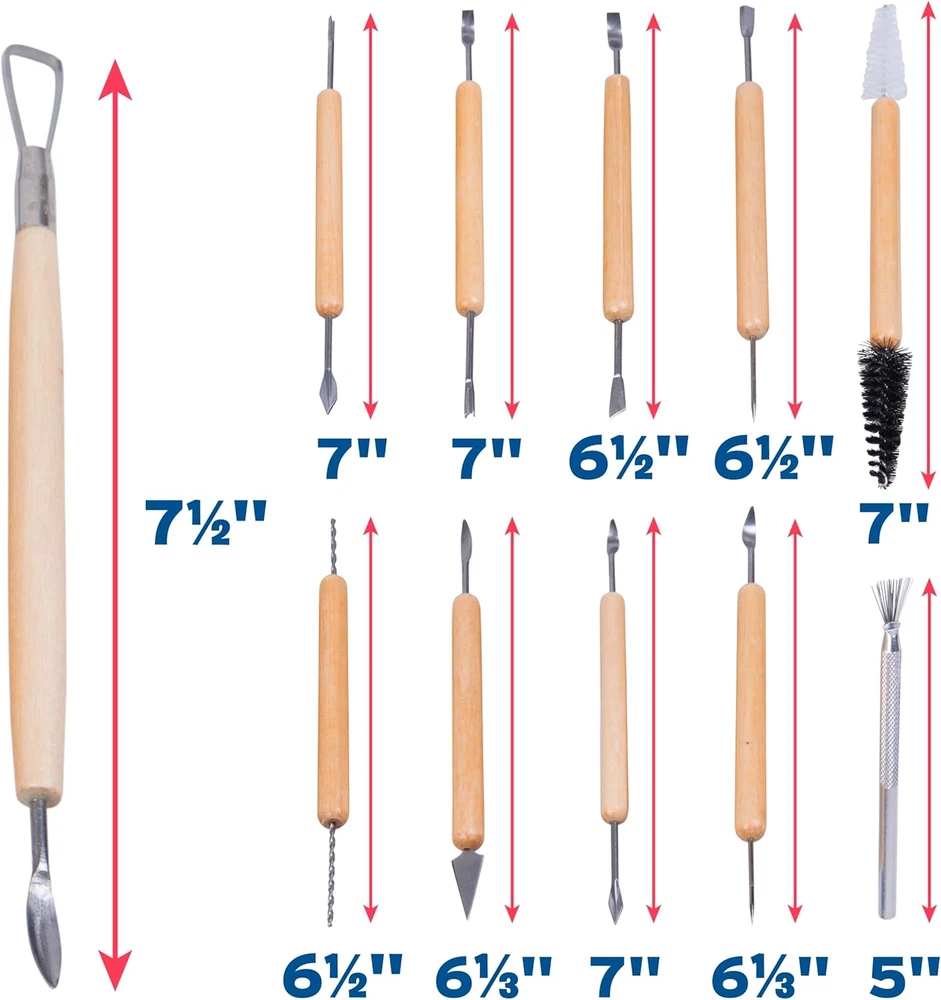 PUPIL PERFECT: Professionally-curated selection presents everything you need to get started FORM AND FUNCTION: Stainless steel and birch wood come together in a set of beautiful, effective clay sculpting tools STURDY SHARPNESS: Chromium-alloyed metal resists rust and corrosion more than carbon steel alternatives VALUE VERSATILITY: Includes 11 multifunctional pottery tools with 21 distinct applications PACKAGING MAY VARY Product Description
