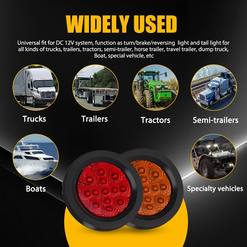 Fit for: Universally fit any vehicles with DC 12V-24V Such as Semi Truck & Trailer, Service Truck, Bus, Service Van, Utility Truck, Parade Float, Horse Trailer, Utility Trailer, Pick Up Truck, UTE, UTV. Specifications: Product Material: ABS+PC Lens Color: Amber,Red Light Color: Amber,Red Wiring Mode: White wire: Negative Black wire: Positive Voltage: 12-24V DC Connector Type: Pigtail Mounting Type: Flush-Mount Waterproof Grade: IP67 Lifespan: 50,000h+ Features: *High Brightness Each LED tail light is bright enough and energy-saving. *Superior Quality 8pcs 2.5 Inch Amber&Red Light LED Round Truck Trailer Side Marker Clearance Kit Fit for: Universally fit any vehicles with DC 12V-24V Such as Semi Truck & Trailer, Service Truck, Bus, Service Van, Utility Truck, Parade Float, Horse Trailer, Utility Trailer, Pick Up Truck, UTE, UTV. Specifications: Product Material: ABS+PC Lens Color: Amber,Red Light Color: Amber,Red Wiring Mode: White wire: Negative Black wire: Positive Voltage: 12-24V DC Connector Type: Pigtail Mounting Type: Flush-Mount Waterproof Grade: IP67 Lifespan: 50,000h+ Features: *High Brightness Each LED tail light is bright enough and energy-saving. *Superior Quality Made of high-quality material to ensure its low energy consumption, good waterproof and shock resistance. *Waterproof The tail light has an IP67 waterproof rate, which works even under extreme conditions such as rain and snow. *Wide Application This pair of LED tail lights can be used in any vehicle with DC 12V-24V, such as Semi Truck & Trailer, Service Truck, Bus, Service Van, Utility Truck, Parade Float, Horse Trailer, Utility Trailer, Pick Up Truck, UTE, UTV. *Warm Notice Please check the detailed information of the product carefully before purchasing. Packaging Include: 8 x 2.5" Round 13 LED Clearance Side Marker Light(4*Amber,4*Red) 8 x 2.5" Round Black Grommet 8 x 2-Pin 90° Plugs connector Item Specifics Brand : Unbranded Fitment Type : Direct Replacement Manufacturer Warranty : 1 Years Universal Fitment : No Type : Tail Light Assembly Features 1 : High Brightness Features 2 : Superior Quality Features 3 : Waterproof Features 4 : Wide Application Country/Region of Manufacture : China Packaging Include 1 : 8 x 2.5" Round 13 LED Clearance Side Marker Light Packaging Include 2 : 8 x 2.5" Round Black Grommet Packaging Include 3 : 8 x 2-Pin 90° Plugs connector Product Material : ABS PC Lens Color : Amber,Red Light Color : Amber,Red Wiring Mode White wire : Negative Wiring Mode Black wire : Positive Voltage : 12-24V DC Connector Type : Pigtail Mounting Type : Flush-Mount Waterproof Grade : IP67 Lifespan : 50,000h+ Lighting Technology : LED Payment (1) Instant PayPal payment is the preferred method of payment. (2) We also accept payment via PayPal, DebitCard, Visa, MasterCard, Discover. (3) We will only ship to the confirmed PayPal shipping address given with the payment. (4) If you want to ship to other address, please change your PayPal shipping address before you make payment. (5) To avoid initiating an unpaid item claim, please pay within 7 days. Shipping (1) We will ship your item(s) within 24 hours. (2) We ship this item to US usually via USPS first class mail. It usually takes 3-6 working days to deliver. Returns (1) We offer free return & money back guarantee. If you are not satisfied with your purchase for any reasons, you can return the item for refund or replacement/exchange. All returns must include the original packaging. (Please refer to our return policy for details.) (2) If you don't return goods within 60 days from date of purchase, your right to cancel will be revoked. Any items damaged because of incorrect installation will not be refunded. Please contact us for return or troubleshooting help prior to returning any products. (3) Unauthorized reselling of AUXITO products is strictly prohibited and we can't honor the warranty if purchasing from the unauthorized reseller. Contact Us [Our office hours are MONDAY - Saturday 9:00PM - 6:00PM PST, but we will response you once we get your message .There will be some delay on respons if you send message or E-Mail on Sundy.] (1).Negative feedback will not help resolve any problems you have, please contact us via eBay messages before leaving negative feedback, our customer service will make best effort to help you with the issues. (2).We maintain high standards of excellenceand strive for 100% customer satisfaction! Feedback is very important to us. We request that you contact us immediately BEFORE you give us neutral or negative feedback, so that we can satisfactorily address your concerns. FAQ Why swith to LED? LEDs not only give your vehicle a clean, modern look but, with proper use, will outlast any halogen bulb and HID bulb! Low energy draw, high lumen output, and instant on/off LED technology out shines stock bulbs in every way. Which bulbs are used in my vehicle? Check Sylvania automotive lamp replacemnt guide, you can select the year, make, and model of your vehicle, then select the application you want to replace or upgrade from stock. What does CAN Bus mean? CAN Bus means Controller Area Network Bus. This system monitors your vehicle and reports operating conditions. CAN Bus systems are commonly found in European vehicles such as BMW, Audi, Mercedes, Volkswagen, Porsche, and in many American vehicles. While most late model American vehicles have CAN Bus systems, it is always good to check with your vehicle dealer to see which system your vehicle has before purchasing electrical products. When do you need Warning Canceller? Some vehicles with cmplex internal computers(such as Audi,BMW,Jaguar,Mercedes,etc.) might report on-dash errors or flickering on the headlights. The warning canceller fixes the dashboard warning and flickering effect. Bulb Out Dashboard Error: On some vehicles, the dashboard will report as if you have a headlight bulb missing or burnt. It does not affect the headlights functioning, but the light on-dash will be on. The warning ca
