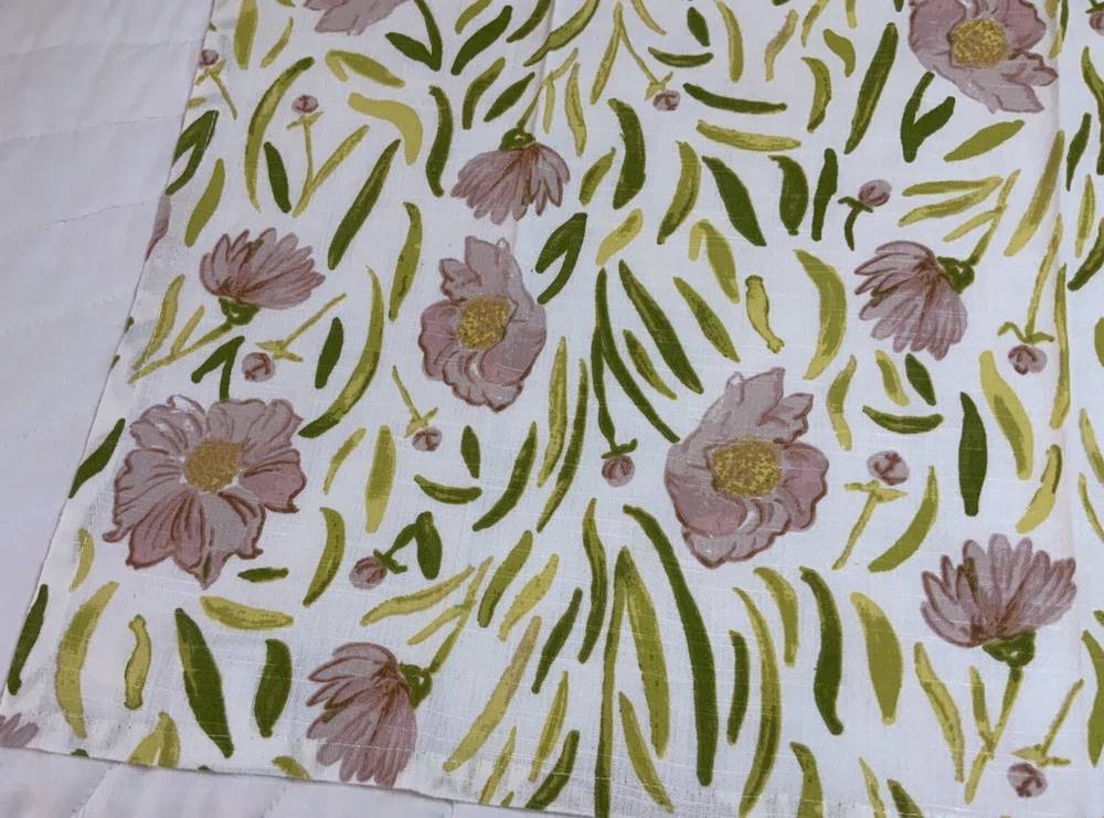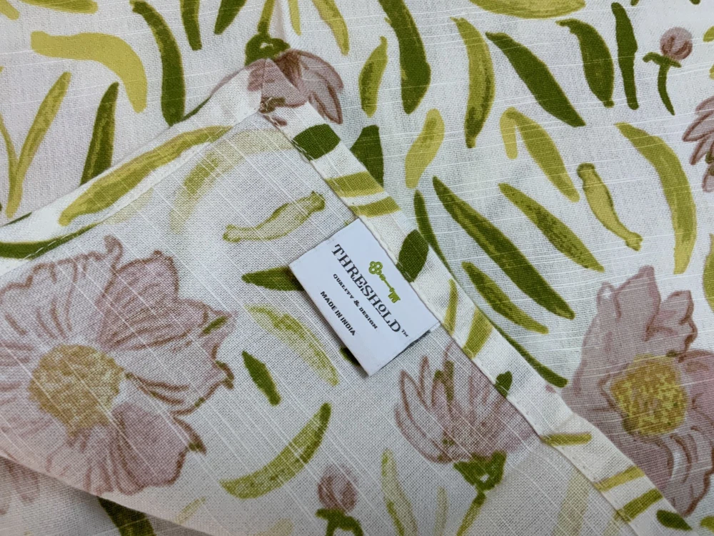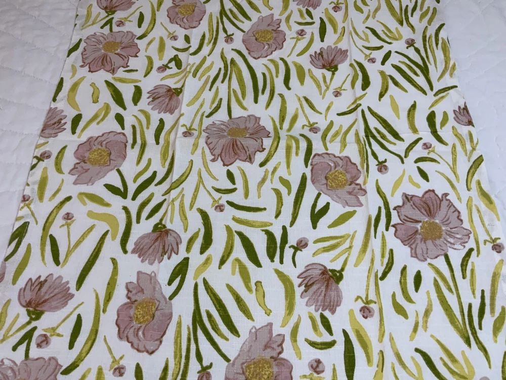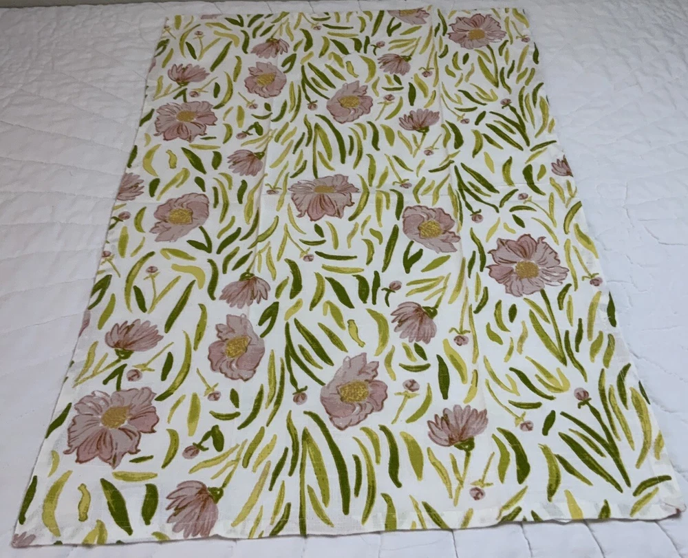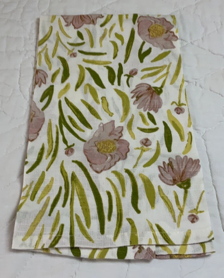 Up for sale is a kitchen dish towel. Cotton. Hanger sewn in this towel. Printed design - flowers and leaves. The colors are white, pink, green, gold, yellow. By Threshold. Very, very good condition. Measures 18” by 27”. 🪿🌹🌹🐇🌺🌻 Thank you and happy shopping. I will combine shipping charges. Smoke free home. Please make payment within three days. ~~~~Please visit my eBay store: 🇺🇸webbsamericancountry1🇺🇸 for over 2000 vintage and collectible items.~~~~🌺🌼🌹