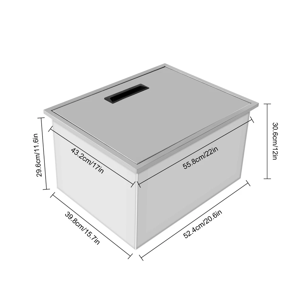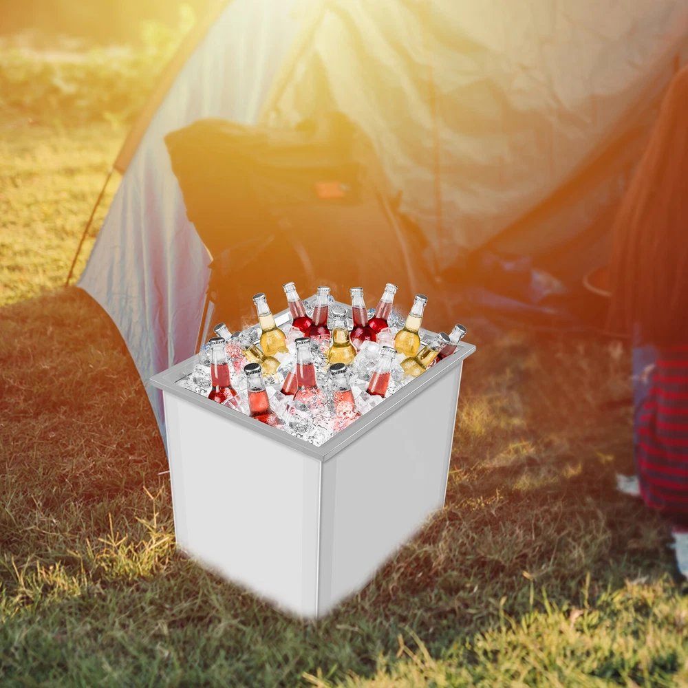 Description Do you want to achieve ice drink freedom at your barbecue time or outdoor party? Then this drop-in ice chest will be the ideal choice for you! Its unique double wall design, built-in foam layer, and lid all provide excellent insulation to keep the ice frozen. It will provide you with cool and comfortable iced drinks to make your party more exciting and active! Key Features High-quality Material: It is made of food-grade 304 stainless steel, which is not only safe and harmless for storing edible ice or food directly but also very solid, rust-proof, and not easily deformed to ensure long service life. Excellent Ice Retention: The double-walled design and built-in thickened foam insulation effectively prevent cold air from escaping from the inside and keep your ice solidified Kitchen Drop-in Ice Chest Cooler Underbar Ice Bin Stainless Steel for Cold Wine Description Do you want to achieve ice drink freedom at your barbecue time or outdoor party? Then this drop-in ice chest will be the ideal choice for you! Its unique double wall design, built-in foam layer, and lid all provide excellent insulation to keep the ice frozen. It will provide you with cool and comfortable iced drinks to make your party more exciting and active! Key Features High-quality Material: It is made of food-grade 304 stainless steel, which is not only safe and harmless for storing edible ice or food directly but also very solid, rust-proof, and not easily deformed to ensure long service life. Excellent Ice Retention: The double-walled design and built-in thickened foam insulation effectively prevent cold air from escaping from the inside and keep your ice solidified, so it can keep your drinks cool for a long time. Easy to Clean: The smooth stainless steel surface does not easily hide dirt, making it easy to clean. You can directly rinse it with water and dry it to get it as clean as a new one. Large Capacity: With a capacity of 47L/49.7 Qt, this drop-in ice chest easily stores and cools large quantities of ice, drinks, or frozen foods for the whole family or commercial needs. Outdoor Party Companion: This all-in-one ice chest allows you to take it to any outdoor scene, which will bring cold drinks to your party without the need for an electric refrigerator, making it a great choice for outdoor lineups. Open Design: You can remove the lid to convert it into an open ice chest, which is convenient for customers to take and choose their favorite drink. Space Saving: It adopts a drop-in design, making full use of the space in the bottom cabinet without taking up too much counter space, which will give you a clean and tidy countertop. Customer Service: We aim to provide quality products and services. If you have any problems, please feel free to contact us. We will reply and solve the problem for you as soon as possible. Details Stainless Steel Lid: It is equipped with a stainless steel lid for better insulation work. At the same time, it can ensure that the internal ice or drinks are kept away from dust and other contaminants. Comfortable Handle: The lid is equipped with a recessed plastic handle with a smooth and comfortable surface that does not hurt your hands, making it easy for you to open or close the lid. Application It is widely used in dinner parties, parties, bars, kitchens, offices, etc. for keeping wine, beer, whiskey, beer, cocktails, vodka, juice, and frozen food fresh. Specifications Material: 304 Stainless Steel + Plastic + Foam Installation: Drop-in, Freestanding Shape: Rectangle Color: Silver Thickness of Foam Insulation Layer: 2cm/0.78in Capacity: 47L/49.7 Qt Product Dimension: 55.8*43.2*30.6cm/22*17*12 in Packing Size: 58*45*32.5cm/22.83*17.71*12.79in Gross Weight: 4.8kg/10.58lbs Net Weight: 4.5kg/9.92lbs Package Included 1* Drop-in Ice Chest 1* Lid Notes Please allow the slight color difference caused by the shooting light and 1-3cm error due to manual measurement, and make sure you do not mind before you order. Payment Delivery details Terms of sales About us Contact us Payment We accept ebay payment 。 Fees such as import duties, taxes are not included in the item price or shipping costs. These charges are the buyer's responsibility. Delivery details Shipping: 2-9 working days to: USA Terms of sales We maintain high standards of excellence and strive for hundred percent customer satisfaction. Feedback is very important to us. We hope that you contact us immediately before you give neutral or negative feedback, so that we can address your concerns. It is impossible to address issues if we do not know about them! About us Your satis faction is our ultimate goal. We work hard to earn your trust and future business. Our certified technicians have tested each item before shipping. The unit comes with 1 year limited warranty on all manufacturing defects. a) If you receive a defective item, you may return it or ask for a discount. Please contact us within 14 days after you receive the package. b) What you returned must be intact and in its original packaging as re? u. Customer is responsible for shipping costs of the returned item. c) We will cover the cost of shipping back t with the shipping rate indicated in the registration page. We will send you a new unit or refund the full payment you paid. Thank you. Contact us Business Hour Business Hour: Monday To Friday: 8:30 AM to 5:00 PM (Beijing China time) Due to time zones, our reply to your questions may not be immediately. But within above working time, we will reply your email within 24 hours. If it's non-workdays, please kindly be patient and wait till Monday. Please contact us with ebay message. Please feel free to contact us if you have any questions. Monday To Friday: 8:30 AM to 5:00 PM (Beijing China time) Due to time zones, our reply to your questions may not be immediately. But within above working time, we will reply your email within 24 hours. If it's non-workdays, please kindly be patient and wait till Monday. Please contact us with eb