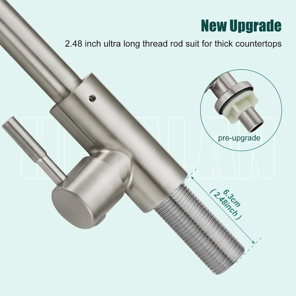Store New Arrivals Add to Favorite View Feedback Kitchen Faucet Single Handle 1 Hole Deck Mount SUS304 Stainless Steel Sink Bar Tap Goose Neck,Cold Water Faucet,Brushed Nickel Description Item model number B08LGQGGWK Style Cold Water Faucet Spout Height 6.1 Inches Hole Count 1 Units Spout Reach 4.3 Inches Country of Origin China Warranty Type lifetime Speaker Cutout Diameter or Length 1.5 Inches Maximum Flow Rate 1.79 Gallons Per Minute Batteries Included? No Usage indoor use Number of Pieces 1 Batteries Required? No Finish Brushed Brand Heyalan Material Stainless Steel Installation Type Single Hole Model Name B08LGQGGWK Finish Type Brushed Package Dimensions 14.09 x 7.17 x 1.5 inches Hose Length 60 Centimeters Included Components Aerator, Deck Plate, Handle, Installation Hardware, Instruction Manual Item Package Quantity 1 Spout Design Goose Neck Number of Handles 1 Item Weight 1.15 pounds Is Electric No Special Features Water Saving System, 360 Swivel, cold water faucet Special Feature Water Saving System, 360 Swivel, cold water faucet Valve Type Cartridge Valve Mounting Type Deck Mount Series ID cold water faucet Color Brushed Nickel Handle Material Stainless Steel Recommended Uses For Product Kitchen Manufacturer Heyalan Handle Type 1 handle Size 8.3inch SUS304 Stainless Steel Construction : Maximum Flow Rate:1.79 Gpm 6.78L/Min. Single lever goose neck bathroom faucet with commercial SUS 304 Stainless Steel ,superior corrosion &rust -resistant finish . Feature : Cold water faucet only upgraded threaded pipe extended to 2.4 inch provides you with a convenient installation for all length of connectors . All Connectors are US Standard 3/8" Thread. Design : The faucet cold water only high-arc spout reach 4.3” and 360 degree rotation spout offer superior clearance for a variety of sink activities . Longer extension tube reduces water leakage. Installation : Single hole deck mounted sink faucet ,easy installation , 60cm water hose .Diameter of hole in sink should be 22mm to 38mm ( 0.86 inch to 1.5 inch ) . Including : The packaging includes faucet body,24 inch water pipe, and some fixed hardware . Product Description This faucet is made of premium SUS304 stainless steel, more anti-oxidation and anti-scratch. High spout can be 360 degree rotated. Longer extension tube reduces water leakage. The total height of the faucet is 8.3 inches ( 21 cm ). 1 Quality Promise 2 Special Function 3 Size Display Product Details Display Longer threaded pipe The longer threaded pipe, has higher connection strength, better sealing performance and more stable installation. Matched Hose 3/8" Standard pipe connection and G1/2 female thread pipe adapter are resistant to corrosion, ensuring quality and longevity. Brass valve core The faucet valve core is made of solid brass, sturdy and durable, to ensure durability and high quality. Ultra long thread rod Pre-upgrade 2.48" ultra long thread rod suit for thick countertops. Different Sizes of Cold Water Only Faucet Add to Cart Add to Cart Add to Cart Add to Cart Add to Cart Add to Cart Add to Cart Customer Reviews 4.5 out of 5 stars 981 4.4 out of 5 stars 78 4.4 out of 5 stars 242 4.5 out of 5 stars 981 4.2 out of 5 stars 85 4.5 out of 5 stars 981 4.5 out of 5 stars 981 Price $19.52 $ 19 . 52 $23.83 $ 23 . 83 $24.97 $ 24 . 97 $24.99 $ 24 . 99 $24.99 $ 24 . 99 $23.89 $ 23 . 89 $21.97 $ 21 . 97 Faucet Height 28cm/11inch 21cm/8inch 21cm/8inch 28cm/11inch 30cm/12inch 27cm/10.64inch 27cm/10.64inch Finish Brushed Nickel Matte black Brushed Nickel Matte black Brushed Nickel Matte black Brushed Nickel Material 304 Stainless steel 304 Stainless steel 304 Stainless steel 304 Stainless steel 304 Stainless steel 304 Stainless steel 304 Stainless steel Hot and Cold Cold Only Cold Only Cold Only Cold Only Cold Only Cold Only Cold Only Style Arc Gooseneck Arc Gooseneck Arc Gooseneck Arc Gooseneck Arc Gooseneck Seven-character Seven-character Drain includes ✘ ✘ ✘ ✘ ✘ ✘ ✘ Single handle ✔ ✔ ✔ ✔ ✔ ✔ ✔ ABOUT US We offer the best prices around on high quality products. Our E-store includes media such as books, movies, music and games while offering electronics, toys, sporting apparel, clothing, tools, general home, garden items and more. SHIPPING We are always working hard to ensure your package arrives as soon as possible. Please understand that some factors like weather, high postal traffic, and the performance of shipping companies are outside of our control. We offer free shipping to the lower 48 states and ship within 2 business days of payment, usually sooner. We do not accept P.O. Boxes. Please provide a physical address. RETURNS We offer a 30-Day Return Policy on items which you are not completely satisfied with. You have the option for a full-refund or an exchange of the item. No returns are available on items shipped outside of the USA. PAYMENT We accept PayPal. CONTACT US This page content is yet to come Please ad us to your favorite seller and visit again later Thank You