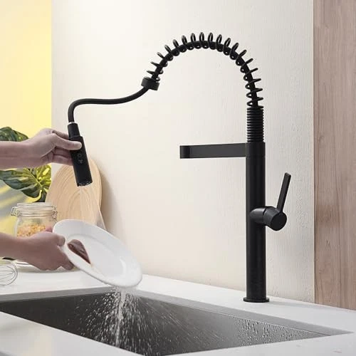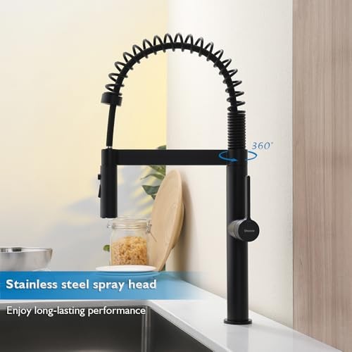 Kitchen Faucet with Pull Down Sprayer, Stainless Steel Single Matt Black
