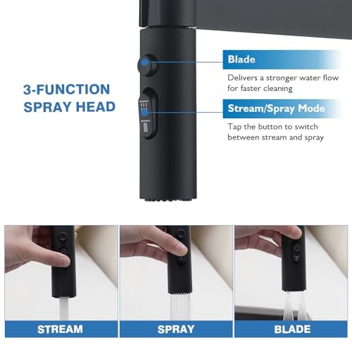 Spout Design: High Arch Gooseneck Product Dimensions: 11.8"D x 2.8"W x 26.8"H Included Components: Handle Model Name: US55535BK Installation Type: Countertop Is Electric: No Special Features: Pull Down Sprayer, 360 Swivel, 3 function Sprayer, Lead Free Spout Reach: 20 Inches Type: Does Not Apply Finish: Matt EAN: Does Not Apply Item Weight: 6.2 Pounds Handle Type: Lever MPN: Does Not Apply Materials Sourced From: China Item Package Quantity: 1 Item Height: 1 Batteries Included: No Speaker Cutout Diameter or Length: 1.8 Inches Item model number: US55535BK Style: Modern Recommended Uses For Product: Bar, Kitchen, Outdoor Number of Handles: 1 Finish Type: Matt Valve Type: Cartridge Valve Warranty Type: limited Handle Material: Stainless Steel UPC: Does Not Apply Spout Height: 7.3 Inches Material: Stainless Steel Brand: Does Not Apply Item Width: 1 Item Length: 1 Manufacturer: Does Not Apply Mounting Type: Deck Mount Batteries Required: No Handle Location: Center Color: Matt Black Special Feature: Pull Down Sprayer, 360 Swivel, 3 function Sprayer, Lead Free Customer Reviews: 4.6 out of 5 stars Date First Available: July 31, 2024 Hose Length: 19.7 Inches gtin13: Does Not Apply