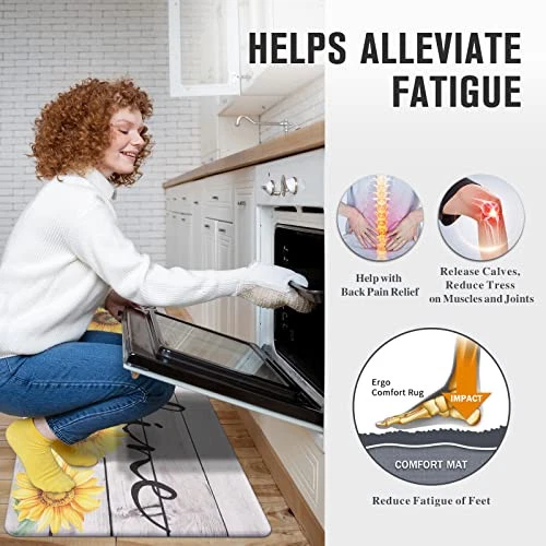 Menu 1. We require immediate payment. 2. We currently accept payment via eBay managed payments only. 3. Once payment is cleared, we will dispatch your shipment within 1-3 business days. Please refer to the "Shipping" tab for more information regarding shipping speed to your destination. Kitchen Floor Mats 2Pcs, Anti Fatigue Kitchen Rugs and Mats Farmhouse Sunflowers Non-Skid Cushioned Floor Comfort Mat for Kitchen, Doorway, Sink, Laundry, 17"x27"+17"x47" Product description Floor Comfort Mat: The kitchen mats for the floor are 0.4" thick, providing cushioned support to relieve fatigue in your feet and legs when standing for extended periods. Experience ultimate comfort and support with our thick kitchen mats. Non-slip Design: Our kitchen floor mat features an anti-slip design on the back, ensuring it stays securely in place and preventing accidents caused by slipping. Enjoy peace of mind knowing our non-slip kitchen mat works perfectly on various surfaces such as wood, ceramic, laminate, marble, and concrete. Easy Maintenance: Our kitchen runner rugs are made of safe and durable high-density material that is oil resistant, stain-resistant, and waterproof. Cleaning and maintaining them is a breeze—simply wipe off dirt or debris with a damp cloth. Say goodbye to stains and foul odors with ease. Versatile Use: These kitchen mats are suitable for a wide range of areas in your home or workplace, including kitchens, offices, bathrooms, and laundry rooms. With a variety of patterns available, finding the perfect one to complement your space is effortless. Package Includes: Our kitchen runner rug set includes two sizes: 17.3"x27.5" and 17.3"x47.2" (44 x 70 + 44 x 120cm). Each rug has a thickness of 0.4 inches (10mm). Prioritize safety by ensuring the floor is dry before using the kitchen rug set to prevent any potential slipping accidents. PLEASE MESSAGE US IF YOU HAVE ANY OTHER QUESTIONS, AND MANY THANKS FOR READING ALL OF THIS. Copyright ©#. All Rights Reserved.