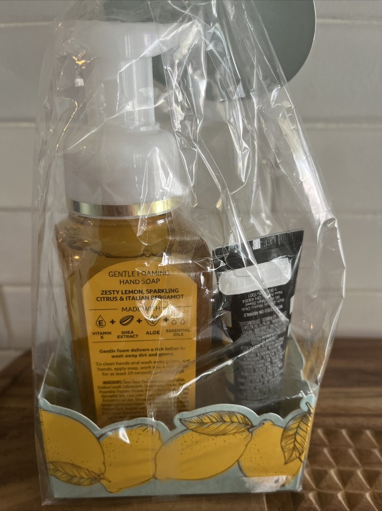Kitchen Lemon BATH AND BODY WORKS White Barn Foaming Hand Soap Gift Set NEW in package. Includes foaming hand soap, antibacterial pocket, and a purse size lotion. From a smoke-free home.