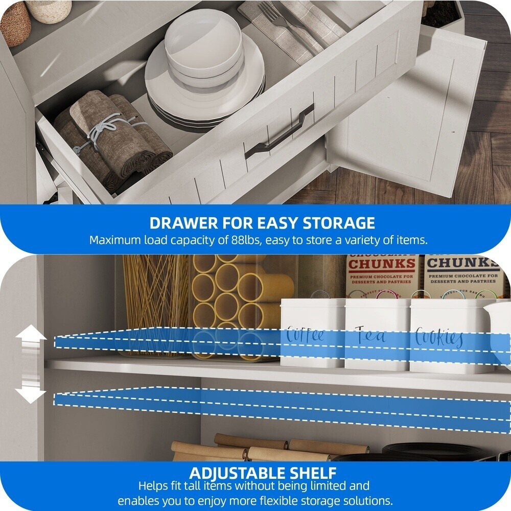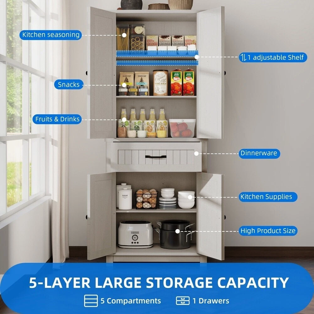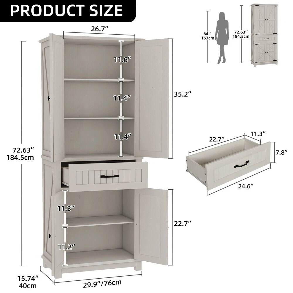 You may also like Wide Grip Kettlebell Exercise Fitness Weight Set 3PC 10lb 15lb 20lb Kettlebells 37.49 USD Free shipping Cake Stand Divided Serve Tray Multi-functional 5 in 1 Cake Dome Dishwasher Safe 27.09 USD Free shipping 12-Speed Adjustable Height Quiet Pedestal Fan w/Digital Display & Remote Control 52.8 USD Free shipping Mineral Supplement 1-0-0 Fertilizer, 30 lbs 10,000 sq. ft.Promote Growth Lawns 49.48 USD Free shipping Orbit Irrigation Brass Adjustable Impact Telescoping Tripod Lawn Sprinkler NEW 58.34 USD Free shipping 64.6" Convertible Futon Sleeper Sofa Bed Modern PU Futon Couch Guest Room Brown 118.29 USD Free shipping Locking File Chest w/Adjustable File Rails Letter/Legal Files 17.5"x14" x12.5" 97.49 USD Free shipping 2-Pack 9x3.50-4" Flat Free Lawnmower Tire and Wheel Assemblies 3/4" Bushings US 52.18 USD Free shipping 24"-60" Wood Expansion Walk-Thru Swing-Wide Room Divider Retractable Baby Gate 58.49 USD Free shipping 32-PCS Box End Combination Wrench Set SAE and Metric 1/4"-1" & 7mm-22mm,12 Point 63.78 USD Free shipping 20 ft. x 30 ft. Heavy Duty Polyethylene Tarp w/Grommets &Reinforced Hem Durable 57.66 USD Free shipping 18 and 16-Gauge Brad 3-in-1 Nailer and Stapler 360-degree Adjustable Lightweight 66.29 USD Free shipping Introducing our Dextrus versatile kitchen pantry storage cabinet, designed to elevate your organization. With a focus on functionality and style, this pantry cabinet offers ample storage space to keep your items neatly arranged. Featuring 5 shelves and a convenient drawer, it ensures everything has its place. The adjustable shelves allow you to customize the position of each shelf or remove them altogether for larger storage needs, adapting to your specific requirements with ease. Crafted from high-quality P2 MDF board, this pantry storage cabinet prioritizes durability and safety, providing a reliable storage solution for your home. This multifunctional storage cabinet isn't limited to just the kitchen; its generous storage capacity makes it suitable for various spaces such as the living room, bedroom, or any area in need of organization. Assembly is a breeze with straightforward instructions, ensuring a hassle-free setup process. After installation, the kitchen storage cabinet measures 15. 74"L x 29. 9"W x 72. 63"H, offering a practical and stylish storage solution that seamlessly blends into your living space. Organize your essentials with ease and elegance using Dextrus versatile kitchen pantry storage cabinet. Spacious Storage: Dextrus Kitchen Pantry Storage Cabinet offers ample storage space with 5 shelves and a drawer, ensuring organized storage for your items Adjustable Shelves: Allows for customization of shelf positions and easy removal to accommodate larger items, enhancing flexibility High-Quality Construction: Crafted from durable P2 MDF board, ensuring longevity and safety for the pantry storage cabinet Versatile Usage: Suitable for various spaces such as the kitchen, living room, bedroom, providing abundant storage options Easy Installation: Simple assembly process guided by clear instructions, making setup a hassle-free experience Overall Dimension: After installation, the storage cabinet measures 15. 74"L x 29. 9"W x 72. 63" Convertible Futon Sofa Bed Sleeper Couch with USB Ports for Living Room Gray 233.99 USD Free shipping Convertible Velvet Futon Sleeper Bed with Armrests and 2 Pillows Sofa Bed Black 211.25 USD Free shipping 71"Velvet Futon Sofa Bed 2 Pillows Convertible Futon Couch 3 Adjustable Backrest 205.24 USD Free shipping Convertible Futon Sleeper Sofa Bed Gray Modern Folding Couch for Living Room 174.2 USD Free shipping Convertible Futon Sofa Bed Adjustable Backrest Recliner Lounge w/Lumbar Pillows 174.2 USD Free shipping Cloud Comfort Convertible Futon Sofa Bed w/Lumbar Pillows Sleeper Bed Black 174.2 USD Free shipping Convertible Futon Sofa Sleeper Bed Modern Folding Couch for Living Room Blue US 174.2 USD Free shipping Convertible Futon Twin-Size Sleeper Sofa Bed 3-Position Adjustable Backrest US 149.47 USD Free shipping PU Fabric Convertible Futon 3-Position Adjustable Backrest Twin Sleeper Sofa Bed 149.47 USD Free shipping 66" Modern Fabric Convertible Futon Sofa Bed Folding Couch Sofa Home with USB 148.2 USD Free shipping 66" Modern Fabric Convertible Futon Sofa Bed with USB for Living room Black US 148.2 USD Free shipping Modern Linen Futon Convertible Sofa Bed Home Office Tufted Back Folding Sofa 140.39 USD Free shipping