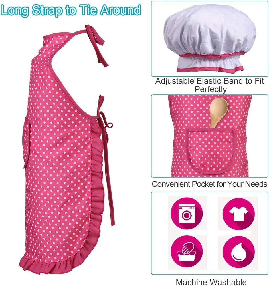 ✅ COMPLETE TOY KITCHEN ACCESSORIES - Total 23 pieces include: a colander, Stainless Steel play pots and pans with Lid and Handles, 4 Stainless Steel and a Wooden Utensils, Apron & Chef Hat, Pot Holder and cutting vegetables toys. ✅ KIDS CHEF HAT AND APRON SET - Chef Apron is pink with white polka dots and frilly edges, comes with a 12" strap to tie around neck and waist to fit even the toddler girl. Chef’s Hat is white with pink trim and has an adjustable elastic band to perfectly fit a child's head. ✅ PREMIUM QUALITY - Made of thick, safe and environment friendly materials. Round edge design, tested to be safe for kids. Adhesive attachments are sticky and make it sound like real slicing when cutting Pretend play food, to create a realistic feel for kids while playing. Lasting fun for endless play. ✅ FUN AND EDUCATIONAL TOY - Role playing for children is extremely important. It allows their imagination to run free. The Play Kitchen Accessories Set inspires kids to take on the role of a chef, teach them some simple culinary skills, they will happily spend hours preparing pretend "meals” for the family! ✅ BEST GIFT SET - Mini stainless steel play pots and colander with play kitchen utensils, beautiful toddler kitchen apron and chef hat, 9 pieces pretend play food vegetables toys! A great set for a affordable price, the pretend play kitchen set is perfect for holidays, birthday party or festival gifts.