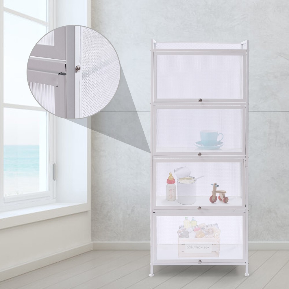 Sideboard Storage Cabinet with 4 Open Shelves for Kitchen Highlights: [Sturdy durable construction] the cabinet is made of waterproof PC and high quality metal , which won't be affected by damp or rainy days. Each tier could hold 50lb, top board could support up to 70lbs. [Modern cabinet] The sideboard and buffet with storage are designed in classic solid color, with smooth cabinet lines, beautiful appearance, and product safety. Simple style paired with white, high-end, and elegant, it gives you a new style feel and a classic look, suitable for all styles of home decoration. [Large storage space] 4 layer flip door storage shelf. 1 level open storage space. 5 layers of super large storage space to meet your storage needs. High-quality PC transparent clamshell door, not only take things convenient,Better protection against dust. [Breathable mesh] Tableware in this pantry storage experienced great ventilation away from the smell. Visible meshes make the cabinet visualized.Adjustable cabinet feet make the shelf safe and stable. Lockers are suitable for kitchen, bedroom, living room, office, not only kitchen storage, but also as bookshelves, shoe racks,wine cooler,ect. [Easy to install and clean] This cabinet with doors comes with clear and short instructions on how to assemble and necessary accessories, you can easily complete the installation. With a flat and smooth surface, you can easily wipe off dust and grime with a damp cloth. Keep the white cabinet clean. Product Specifications: Product size: 60*32*141.5cm (23.6*12.6*55.7inch) Material: PC+Metal+MDF Maximum load: 270lbs color: White Features: - Large capacity partition storage lockers. - Transparent PC door , easy to take and place items at a glance. - Clamshell door to prevent dust. - Suitable for multiple scenes, kitchen, bedroom, living room, study, porch, etc. - Adjustable foot pads, the shelf is still stable and safe on uneven ground. - Comes with installation instructions and all tools for installation for easy installation. Payment Delivery details Terms of sales About us Contact us Payment We accept ebay payment 。 Fees such as import duties, taxes are not included in the item price or shipping costs. These charges are the buyer's responsibility. Delivery details Shipping: 2-9 working days to: USA Terms of sales We maintain high standards of excellence and strive for hundred percent customer satisfaction. Feedback is very important to us. We hope that you contact us immediately before you give neutral or negative feedback, so that we can address your concerns. It is impossible to address issues if we do not know about them! About us Your satis faction is our ultimate goal. We work hard to earn your trust and future business. Our certified technicians have tested each item before shipping. The unit comes with 1 year limited warranty on all manufacturing defects. a) If you receive a defective item, you may return it or ask for a discount. Please contact us within 14 days after you receive the package. b) What you returned must be intact and in its original packaging as re? u. Customer is responsible for shipping costs of the returned item. c) We will cover the cost of shipping back t with the shipping rate indicated in the registration page. We will send you a new unit or refund the full payment you paid. Thank you. Contact us Business Hour Business Hour: Monday To Friday: 8:30 AM to 5:00 PM (Beijing China time) Due to time zones, our reply to your questions may not be immediately. But within above working time, we will reply your email within 24 hours. If it's non-workdays, please kindly be patient and wait till Monday. Please contact us with ebay message. Please feel free to contact us if you have any questions. Monday To Friday: 8:30 AM to 5:00 PM (Beijing China time) Due to time zones, our reply to your questions may not be immediately. But within above working time, we will reply your email within 24 hours. If it's non-workdays, please kindly be patient and wait till Monday. Please contact us with ebay message. Please feel free to contact us if you have any questions. Brand Unbranded Item Height 55.7Inch Item Length 23.6inch Item Width 12.6Inch Type Cabinet Material PC+Metal+MDF Room Any Room Handle Material N/A Door Style PC Color White Style Modern Features Dustproof Mounting Free Standing Assembly Required Yes Item Depth As Description Shows Item Length (Interior) As Description Shows Item Height (Interior) As Description Shows Item Width (Interior) As Description Shows Model N/A Additional Parts Required No Door Handing Middle Department Baby, Unisex Kids, Teens, Adult Item Weight 33.8LbS MPN Does Not Apply Number of Doors 4 Manufacturer Warranty 1 Year Number of Drawers 4 Maximum load 270lbs UPC Does not apply On Jul 29, 2025 at 23:24:09 PDT, seller added the following information: