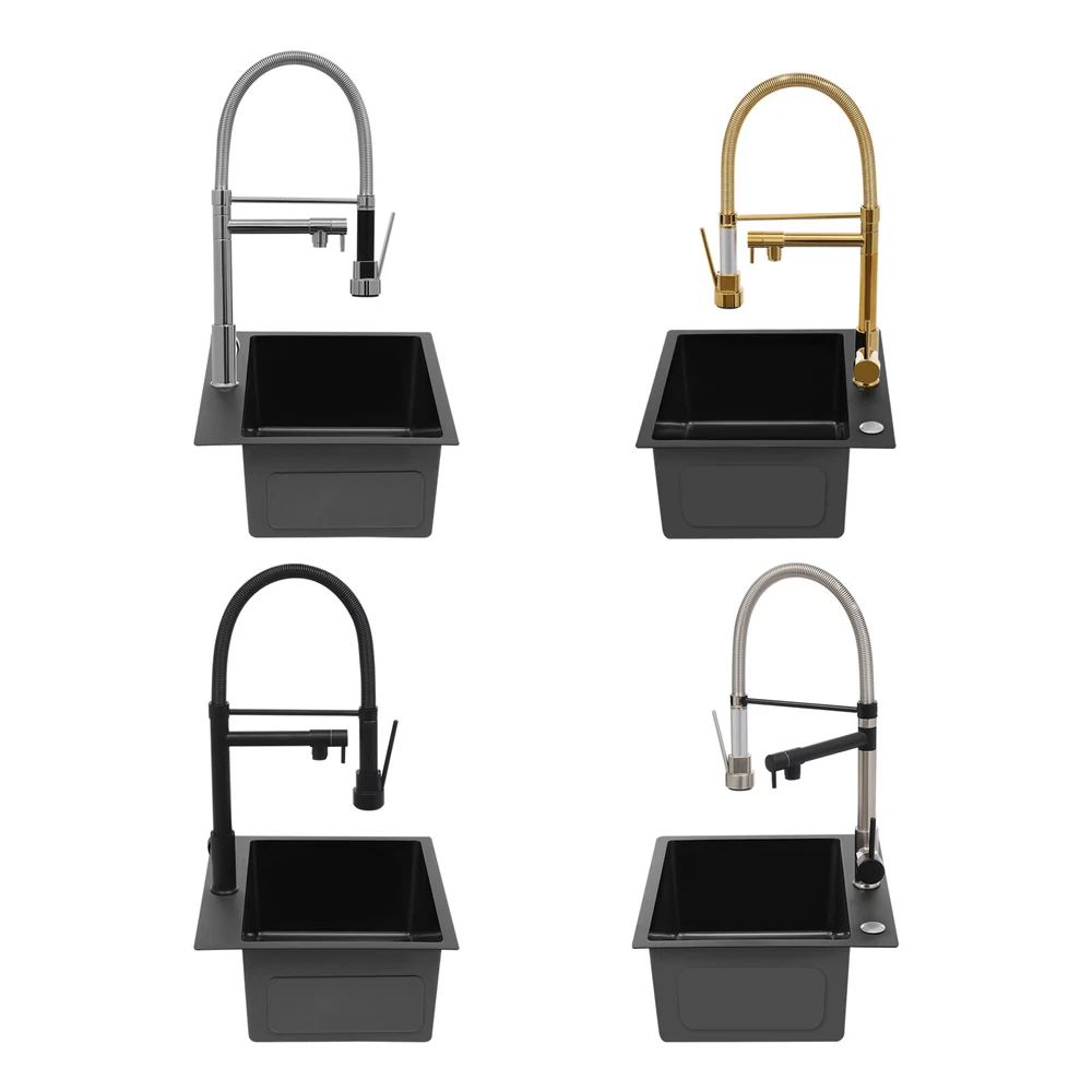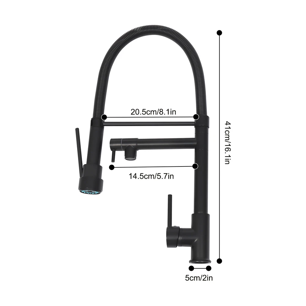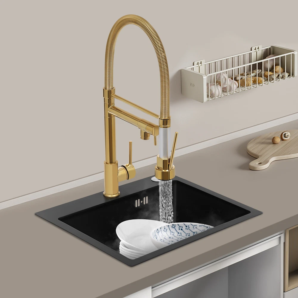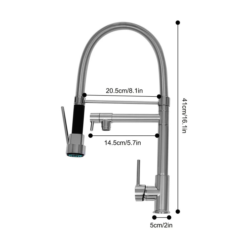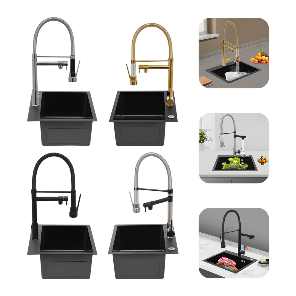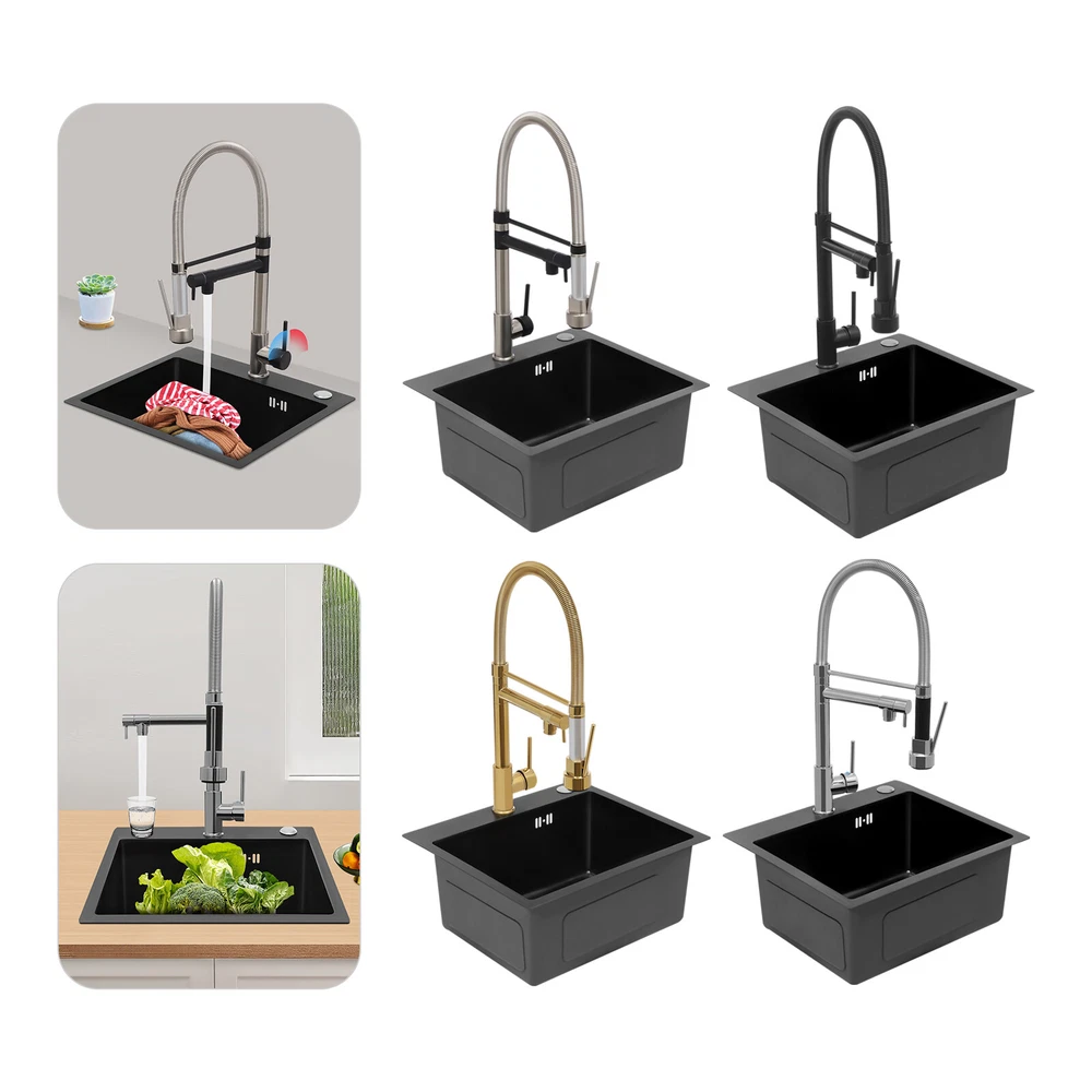 Specification Color: Titanium Gold/Black/Silver Material: Brass, Stainless Steel, Ceramic and Silicone Surface Treatment: Vacuum Plating/Electroplated/Brushed/Baking Paint Assembly Required: Yes Mount Type: Sink-mounted Interface: G1/2inch Rotation: 360° Fix Rod Length: 20.5cm/8.07in Installation Hole Diameter: 5cm/1.97inch Product Overall Height: 41cm/16.14inch Gross Weight: 2.5kg/5.5lbs Net Weight: 2kg/4.4lbs Package Size: 58.5*29.5*5.9cm/23.03*11.61*2.32inch Package Included 1* Kitchen Tap 2* Hoses 1* English Installation Manual Other Accessories for Installation Kitchen Sink Single Handle Stainless Steel Faucet with Pull Down Sprayer Description An excellent kitchen tap is not only an elegant gift of life like a spring, but also a flexible assistant in cooking and a creator of a clean environment. It not only gives you pure and healthy life enjoyment but also in the cooking of food kitchen territory and the pursuit of freshness and cleanliness in the bathroom space, weaving the double rhythm of convenience and elegance. Key Features Build to Last: The high-quality stainless steel and brass with a vacuum plating/baking paint/brushed/electroplated process ensures high rigidity and durability, making it ideal for kitchen and bathroom use. Thoughtful Design : It comes with a buckle design for continuous water dispensing, giving you the freedom to wash items without having to keep pressing the spray head, while the height-appropriate stand provides more comfort and safety. Hot and Cold Use: You can control the water temperature and water flow through a single handle, which is easy and convenient. Comfortable Experience: Its air bubbler can make the water flow more smoothly and reduce noise and water consumption, providing you with fine and uniform water without splashing. In addition, the spray mode and stream mode allow you to enjoy a comfortable washing experience. Enhance Your Relationship: The faucet with a pull-down sprayer and separate spout can be turned on at the same time. If your loved one or roommate prepares dinner or does the dishes with the sprayer, you can do what you want with the other sprayer, saving time and increasing intimacy. Compact Spring: The spring design makes the product more flexible to use, taking into account 360 degrees of rotation and 360 degrees of bending, which in turn facilitates you to change the curvature of the hose with less effort, and giving your kitchen tap a full range of washes. Easy to Clean: Thanks to its smooth surface and simple structure, you can clean it with a damp rag or water. Plus, the silicone spout makes it possible to clear clogs with a flick of your hand! Quality Service: We stand behind all our guests and look forward to assisting you with your purchase. It is our pleasure to answer your confusion and questions. The end of the story between us is definitely not "we sell and you buy" . Details Ceramic Valve Core: The sturdy and durable ceramic valve core can effectively prevent water leakage, improv e the stability of the faucet, and reduce the scale. Flexible Sprayer Stand&Faucet: They can be rotated 360° for convenient use and space-saving. Standard G1/2 Interface: The standard G1/2-inch interface makes this product suitable for most water supply systems. Practical Hoses: They provide you with easy access to a water source for hot and cold use. Application It is suitable for single and double sinks of different shapes in homes, restaurants, shopping centers, schools, companies, hotels, kitchens, clinics, hospitals, KTVs, subway stations, bathrooms, and more. It is suitable for washing pots and pans Specification Color: Titanium Gold/Black/Silver Material: Brass, Stainless Steel, Ceramic and Silicone Surface Treatment: Vacuum Plating/Electroplated/Brushed/Baking Paint Assembly Required: Yes Mount Type: Sink-mounted Interface: G1/2inch Rotation: 360° Fix Rod Length: 20.5cm/8.07in Installation Hole Diameter: 5cm/1.97inch Product Overall Height: 41cm/16.14inch Gross Weight: 2.5kg/5.5lbs Net Weight: 2kg/4.4lbs Package Size: 58.5*29.5*5.9cm/23.03*11.61*2.32inch Package Included 1* Kitchen Tap 2* Hoses 1* English Installation Manual Other Accessories for Installation Notes Please install it in strict accordance with the instructions and pay attention to the safety precautions inside. Please allow the slight color difference caused by the shooting light and the 1-3cm error due to manual measurement. Please make sure you do not mind before you order. Payment Delivery details Terms of sales About us Contact us Payment We accept ebay payment 。 Fees such as import duties, taxes are not included in the item price or shipping costs. These charges are the buyer's responsibility. Delivery details Shipping: 2-9 working days to: USA Terms of sales We maintain high standards of excellence and strive for hundred percent customer satisfaction. Feedback is very important to us. We hope that you contact us immediately before you give neutral or negative feedback, so that we can address your concerns. It is impossible to address issues if we do not know about them! About us Your satis faction is our ultimate goal. We work hard to earn your trust and future business. Our certified technicians have tested each item before shipping. The unit comes with 1 year limited warranty on all manufacturing defects. a) If you receive a defective item, you may return it or ask for a discount. Please contact us within 14 days after you receive the package. b) What you returned must be intact and in its original packaging as re? u. Customer is responsible for shipping costs of the returned item. c) We will cover the cost of shipping back t with the shipping rate indicated in the registration page. We will send you a new unit or refund the full payment you paid. Thank you. Contact us Business Hour Business Hour: Monday To Friday: 8:30 AM to 5:00 PM (Beijing China time) Due to time zones, our reply to your questions may not be immediately. But within above working 