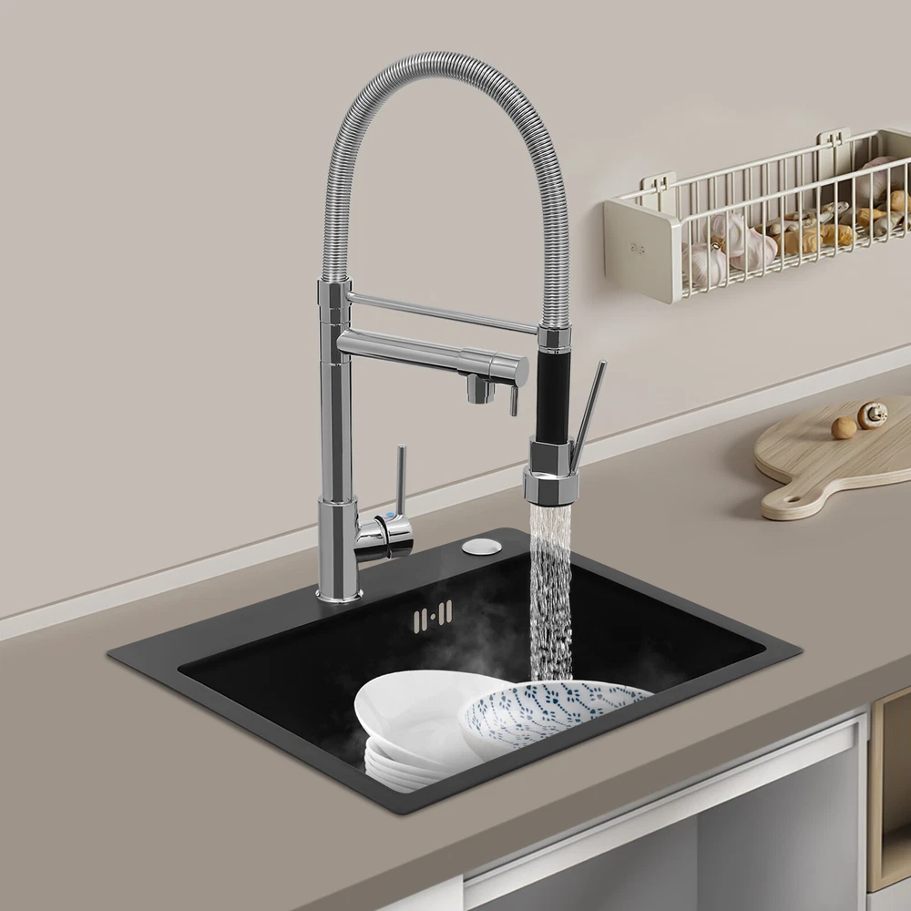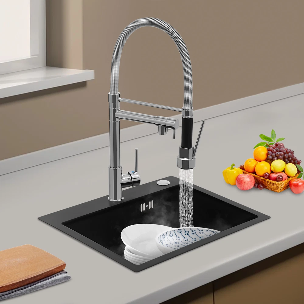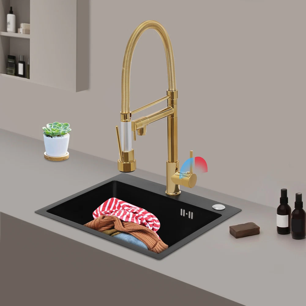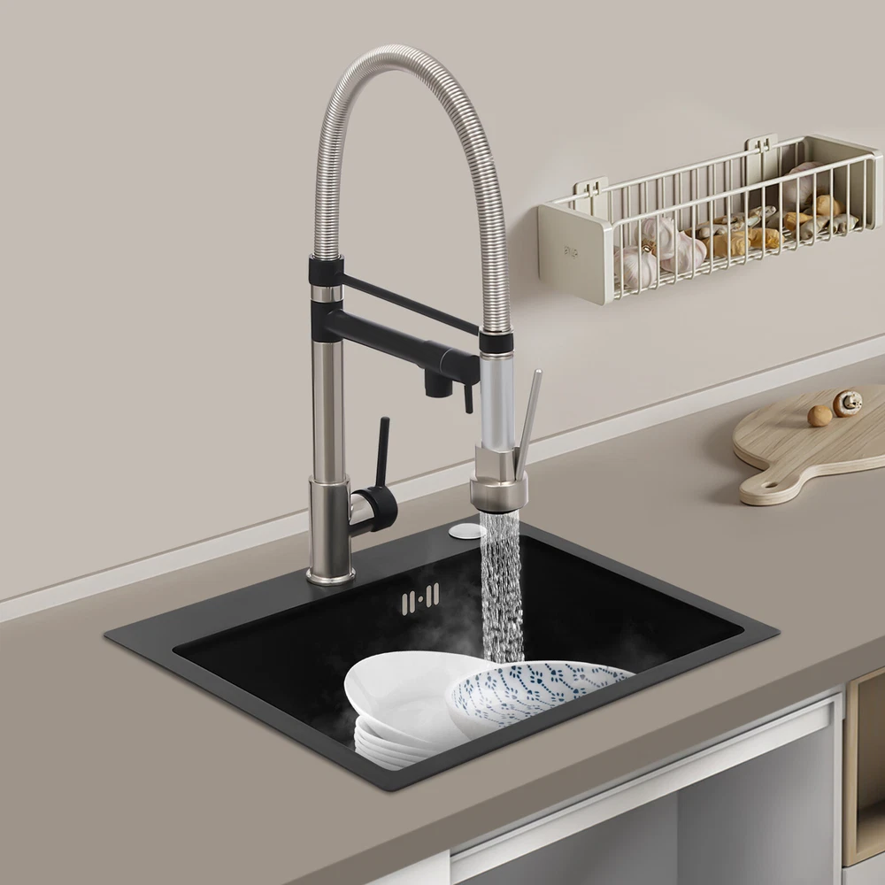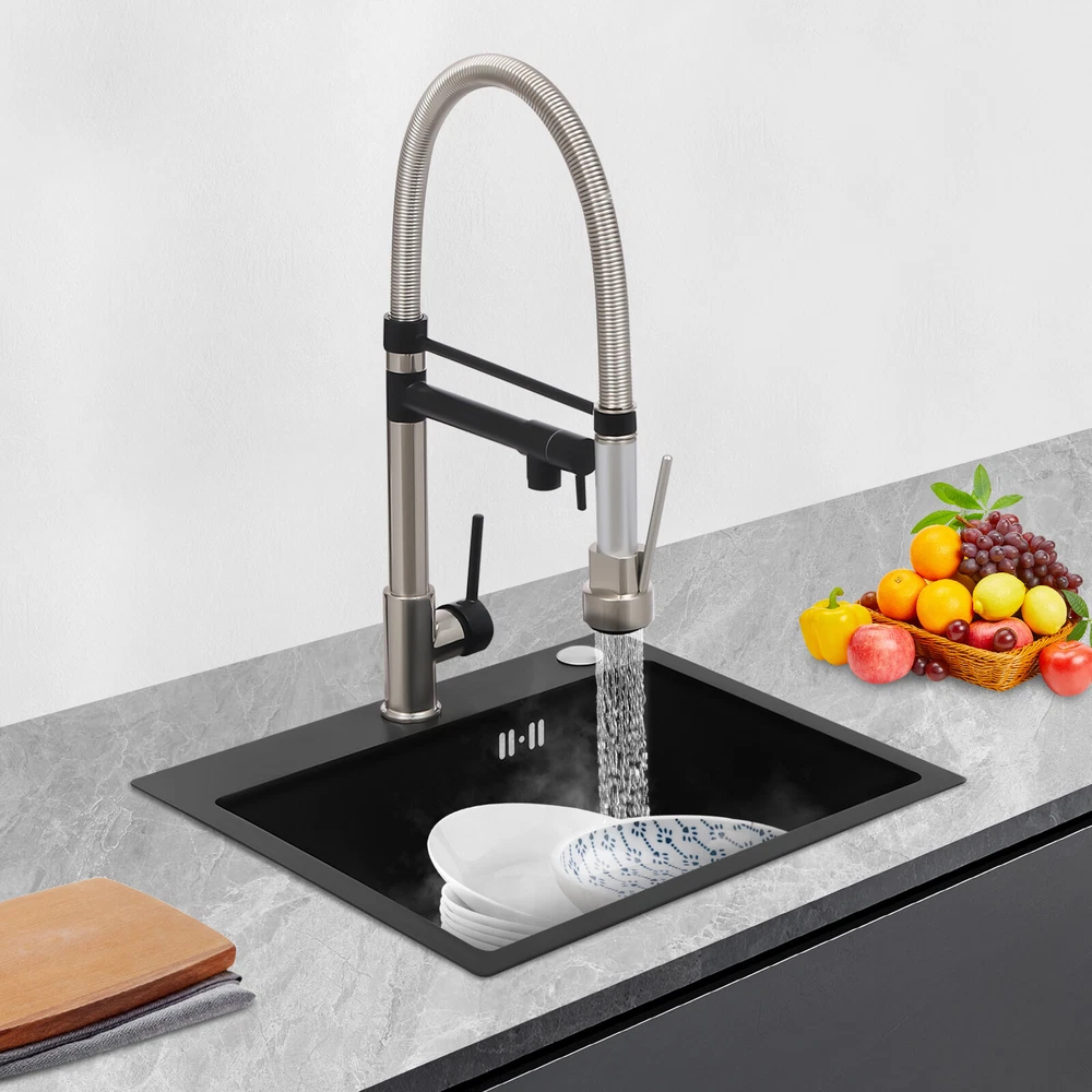 Specification Color: Titanium Gold/Black/Silver Material: Brass, Stainless Steel, Ceramic and Silicone Surface Treatment: Vacuum Plating/Electroplated/Brushed/Baking Paint Assembly Required: Yes Mount Type: Sink-mounted Interface: G1/2inch Rotation: 360° Fix Rod Length: 20.5cm/8.07in Installation Hole Diameter: 5cm/1.97inch Product Overall Height: 41cm/16.14inch Gross Weight: 2.5kg/5.5lbs Net Weight: 2kg/4.4lbs Package Size: 58.5*29.5*5.9cm/23.03*11.61*2.32inch Package Included 1* Kitchen Tap 2* Hoses 1* English Installation Manual Other Accessories for Installation Kitchen Sink Single Handle Stainless Steel Faucet with Pull Down Sprayer Description An excellent kitchen tap is not only an elegant gift of life like a spring, but also a flexible assistant in cooking and a creator of a clean environment. It not only gives you pure and healthy life enjoyment but also in the cooking of food kitchen territory and the pursuit of freshness and cleanliness in the bathroom space, weaving the double rhythm of convenience and elegance. Key Features Build to Last: The high-quality stainless steel and brass with a vacuum plating/baking paint/brushed/electroplated process ensures high rigidity and durability, making it ideal for kitchen and bathroom use. Thoughtful Design : It comes with a buckle design for continuous water dispensing, giving you the freedom to wash items without having to keep pressing the spray head, while the height-appropriate stand provides more comfort and safety. Hot and Cold Use: You can control the water temperature and water flow through a single handle, which is easy and convenient. Comfortable Experience: Its air bubbler can make the water flow more smoothly and reduce noise and water consumption, providing you with fine and uniform water without splashing. In addition, the spray mode and stream mode allow you to enjoy a comfortable washing experience. Enhance Your Relationship: The faucet with a pull-down sprayer and separate spout can be turned on at the same time. If your loved one or roommate prepares dinner or does the dishes with the sprayer, you can do what you want with the other sprayer, saving time and increasing intimacy. Compact Spring: The spring design makes the product more flexible to use, taking into account 360 degrees of rotation and 360 degrees of bending, which in turn facilitates you to change the curvature of the hose with less effort, and giving your kitchen tap a full range of washes. Easy to Clean: Thanks to its smooth surface and simple structure, you can clean it with a damp rag or water. Plus, the silicone spout makes it possible to clear clogs with a flick of your hand! Quality Service: We stand behind all our guests and look forward to assisting you with your purchase. It is our pleasure to answer your confusion and questions. The end of the story between us is definitely not "we sell and you buy" . Details Ceramic Valve Core: The sturdy and durable ceramic valve core can effectively prevent water leakage, improv e the stability of the faucet, and reduce the scale. Flexible Sprayer Stand&Faucet: They can be rotated 360° for convenient use and space-saving. Standard G1/2 Interface: The standard G1/2-inch interface makes this product suitable for most water supply systems. Practical Hoses: They provide you with easy access to a water source for hot and cold use. Application It is suitable for single and double sinks of different shapes in homes, restaurants, shopping centers, schools, companies, hotels, kitchens, clinics, hospitals, KTVs, subway stations, bathrooms, and more. It is suitable for washing pots and pans Specification Color: Titanium Gold/Black/Silver Material: Brass, Stainless Steel, Ceramic and Silicone Surface Treatment: Vacuum Plating/Electroplated/Brushed/Baking Paint Assembly Required: Yes Mount Type: Sink-mounted Interface: G1/2inch Rotation: 360° Fix Rod Length: 20.5cm/8.07in Installation Hole Diameter: 5cm/1.97inch Product Overall Height: 41cm/16.14inch Gross Weight: 2.5kg/5.5lbs Net Weight: 2kg/4.4lbs Package Size: 58.5*29.5*5.9cm/23.03*11.61*2.32inch Package Included 1* Kitchen Tap 2* Hoses 1* English Installation Manual Other Accessories for Installation Notes Please install it in strict accordance with the instructions and pay attention to the safety precautions inside. Please allow the slight color difference caused by the shooting light and the 1-3cm error due to manual measurement. Please make sure you do not mind before you order. Payment Delivery details Terms of sales About us Contact us Payment We accept ebay payment 。 Fees such as import duties, taxes are not included in the item price or shipping costs. These charges are the buyer's responsibility. Delivery details Shipping: 2-9 working days to: USA Terms of sales We maintain high standards of excellence and strive for hundred percent customer satisfaction. Feedback is very important to us. We hope that you contact us immediately before you give neutral or negative feedback, so that we can address your concerns. It is impossible to address issues if we do not know about them! About us Your satis faction is our ultimate goal. We work hard to earn your trust and future business. Our certified technicians have tested each item before shipping. The unit comes with 1 year limited warranty on all manufacturing defects. a) If you receive a defective item, you may return it or ask for a discount. Please contact us within 14 days after you receive the package. b) What you returned must be intact and in its original packaging as re? u. Customer is responsible for shipping costs of the returned item. c) We will cover the cost of shipping back t with the shipping rate indicated in the registration page. We will send you a new unit or refund the full payment you paid. Thank you. Contact us Business Hour Business Hour: Monday To Friday: 8:30 AM to 5:00 PM (Beijing China time) Due to time zones, our reply to your questions may not be immediately. But within above working 