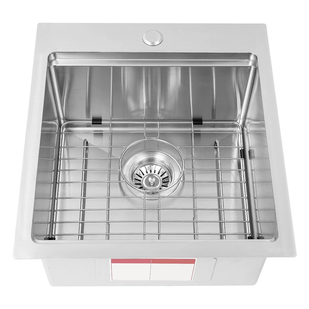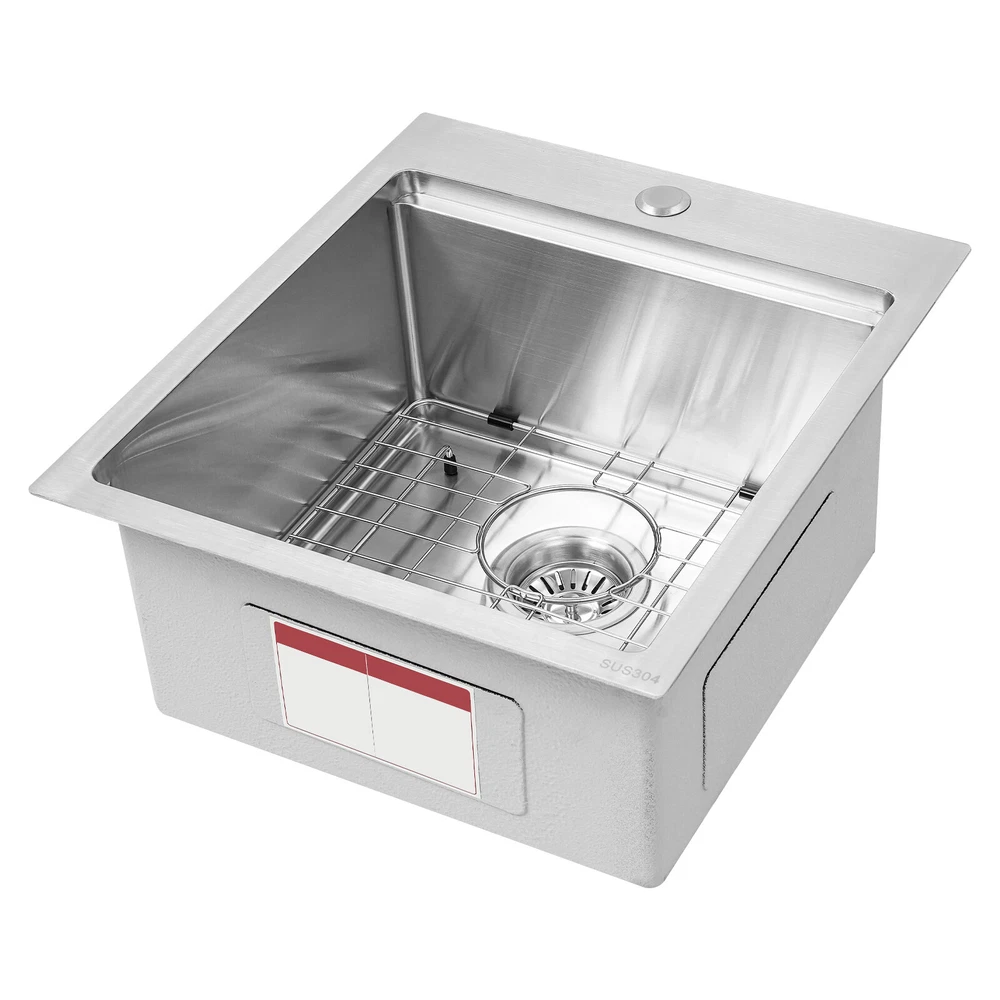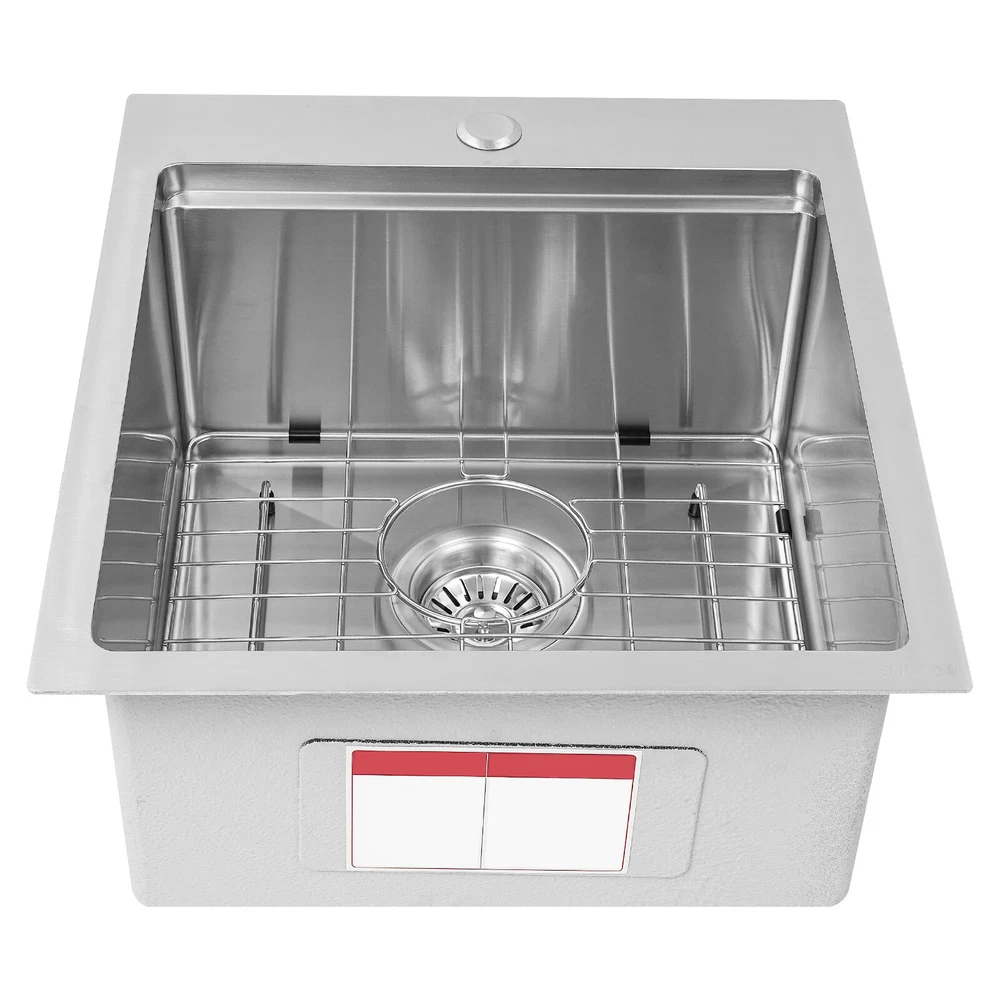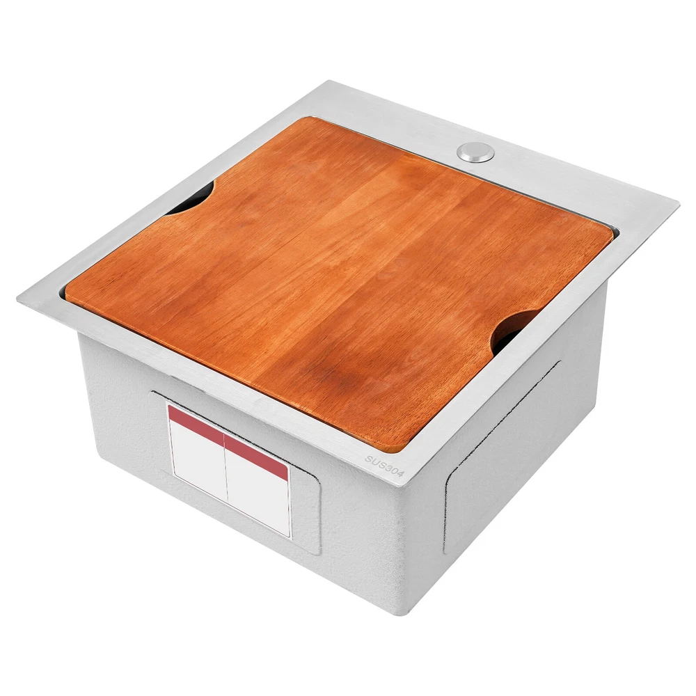 Kitchen Sink Workstation Sink with Cutting Board Stainless Steel Kitchen Sink Description Made of high-quality 304 stainless steel, this kitchen sink is exquisitely crafted, wear- resistant , and corrosion- resistant . Its enlarged and deepened sink not only alleviates the splashing problem but also increases space utilization for cleaning numerous cookwares. The design with a cutting board and bottom rinse grid allows you to wash and cut fruits and vegetables simultaneously, with which you can enjoy a more convenient life. Key Features Strong and Durable: Made of premium 304 stainless steel through the brushed process, it is corrosion and heat- resistant and will remain as good as new for a long time, even in the face of frequent daily use and all kinds of kitchen utensils collision. Space Optimization: The workstation sink is designed to hold the cutting board on a single track, maximizing the available space on the countertop. Large Capacity: Its large washing size ( 15*15in ) allows you to clean large amounts of plates, dishes, and pots, and wash fruits, and vegetables at one time without splashing, saving time. Life Assistant: This sink with a cutting board and bottom rinse grid cleverly combines washing and meal preparation functions, allowing you to enjoy a convenient life. Invisible and Beautiful: It supports three mount types: top mount, flush mount, and under mount, which will not affect the aesthetics when the sink is flush with the countertop, and the smooth lines and low-key silver-colored appearance can also add a touch of simplicity and elegance to the kitchen. Hassle-free Cleaning: The brushed surface is not easy to leave marks, you can remove surface dust and grease by wiping with a damp cloth and detergent (not included). User Friendly: The rubber mute mat can effectively reduce the noise generated by the faucet water release and the collision of dishes, creating a quiet kitchen environment. The anti-condensation coating effectively prevents excessive temperature differences and protects the cabinet from moisture. Rapid Drainage: The X-shaped water guidelines and enlarged 3.5-inch drain hole help drain water quickly. Customer Service: We aim to provide quality products and services. If you have any problems, please feel free to contact us. We will reply to you and solve the problem for you as soon as possible. Details Rounded Corners: They are not easy to leave hygiene blind spots, making it convenient for you to clean the sink. Bottom Rinse Grid: With protective covers, it can prevent scratches on the kitchen utensils and sink. Utensils can be placed on the rinse grid for fast drainage. Thoughtful Handles: Two curved handles on either side of the cutting board make it easy to reach and move. Application It can be widely used in homes, restaurants, laundries, basements, bars, kitchens, food trucks, dessert stores, coffee shops, hotels, garages, gardens, etc. for washing dishes and cutting vegetables and fruits. Specification Material: 304 Stainless Steel Color: Silver Style: Modern Process: Brushed Shape: Rectangular Mount Type: Topmount, Undermount, Flushmount Assembly Required: Yes Thickness: 100mm/0.39in Drain Hole Diameter: 8.9cm/3.5in Cutting Board Size: 38.1*38.1cm/15*15in Product Size: 43.1*48.2*21.9cm/17*19*8.6in Package Size: 53*48*27cm/20.87*18.90*10.63in Gross Weight: 8.4kg/18.52lbs Net Weight: 7.8kg/17.2lbs Package Included 1* Stainless Steel Kitchen Sink 1* Cutting Board 1* Bottom Rinse Grid 1* Strainer Notes Please check the style and size before purchasing. Please do not scratch its surface with sharp objects to prolong its service life. If you want to get a better installation effect, we suggest you ask professional workers to install it. Please allow the slight color difference caused by the shooting light and 1-3cm error due to manual measurement and make sure you do not mind before ordering. Payment Delivery details Terms of sales About us Contact us Payment We accept ebay payment 。 Fees such as import duties, taxes are not included in the item price or shipping costs. These charges are the buyer's responsibility. Delivery details Shipping: 2-9 working days to: USA Terms of sales We maintain high standards of excellence and strive for hundred percent customer satisfaction. Feedback is very important to us. We hope that you contact us immediately before you give neutral or negative feedback, so that we can address your concerns. It is impossible to address issues if we do not know about them! About us Your satis faction is our ultimate goal. We work hard to earn your trust and future business. Our certified technicians have tested each item before shipping. The unit comes with 1 year limited warranty on all manufacturing defects. a) If you receive a defective item, you may return it or ask for a discount. Please contact us within 14 days after you receive the package. b) What you returned must be intact and in its original packaging as re? u. Customer is responsible for shipping costs of the returned item. c) We will cover the cost of shipping back t with the shipping rate indicated in the registration page. We will send you a new unit or refund the full payment you paid. Thank you. Contact us Business Hour Business Hour: Monday To Friday: 8:30 AM to 5:00 PM (Beijing China time) Due to time zones, our reply to your questions may not be immediately. But within above working time, we will reply your email within 24 hours. If it's non-workdays, please kindly be patient and wait till Monday. Please contact us with ebay message. Please feel free to contact us if you have any questions. Monday To Friday: 8:30 AM to 5:00 PM (Beijing China time) Due to time zones, our reply to your questions may not be immediately. But within above working time, we will reply your email within 24 hours. If it's non-workdays, please kindly be patient and wait till Monday. Please contact us with ebay message. Please feel free to contact us if you have any questions.