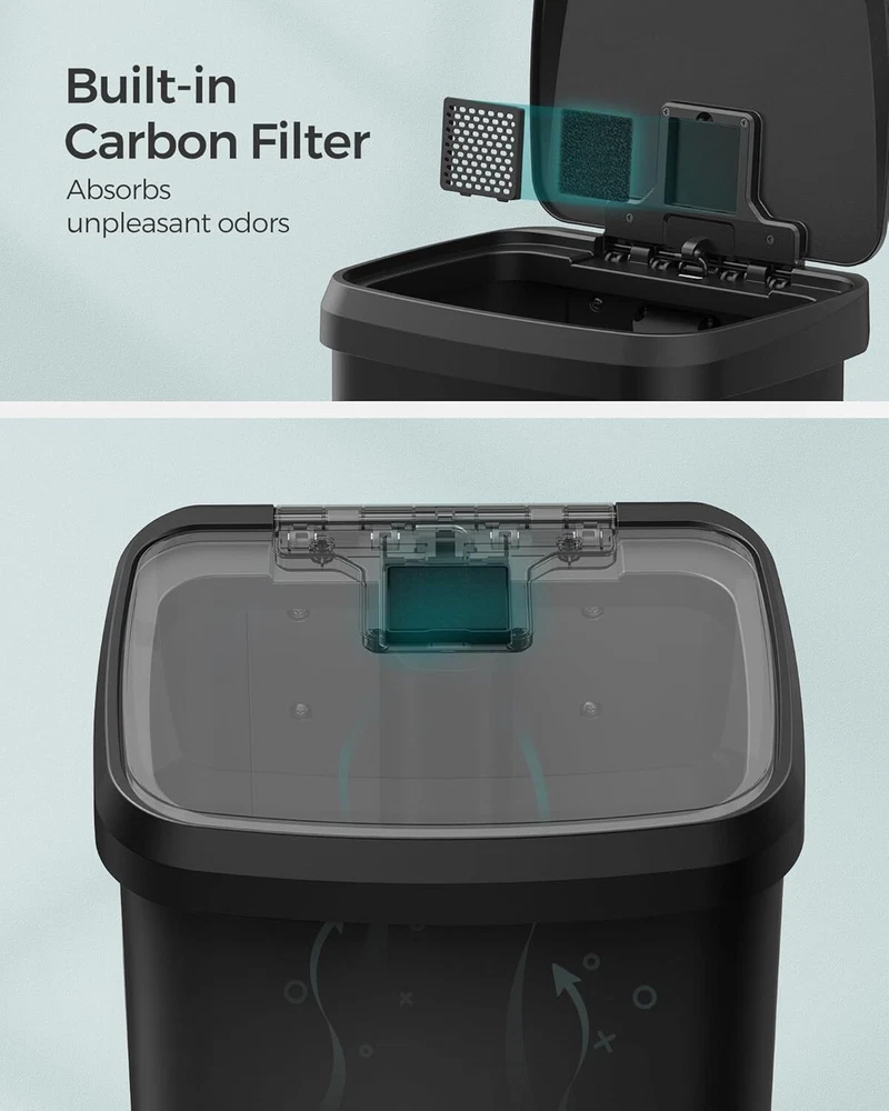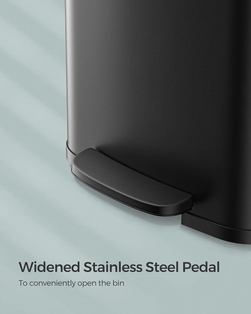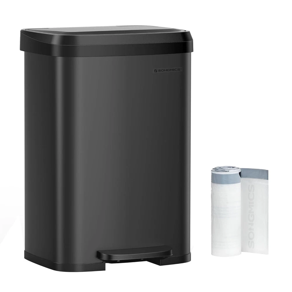 [Spacious Solution for Big Families] This 13-gallon trash can offers a large interior volume, catering to the needs of big families. It saves you from the inconvenience of frequent trips between the kitchen and curbside bin to empty it [User-Friendly Pedal] The 7.8" wide pedal provides a comfortable stepping surface, making it effortless to open the lid. It is crafted from sturdy stainless steel for long-lasting durability [Quality Stainless Steel] Made from stainless steel, this trash can is rust-resistant and easy to clean. It adds a stylish modern touch to any kitchen [Soft-Close & Stay-Open] This garbage can has a lid that closes quietly and gently without slamming shut. Additionally, you can easily keep the lid open by manually opening it to a catch point when dealing with large clean-ups [Thoughtful Detailing] The carbon filter in the lid helps absorb unpleasant odors, keeping your kitchen smelling fresh. Included are 15 liner bags (12-14.5 gallons) that perfectly fit this kitchen can Product Dimensions : 15.9 x 15 x 23 inches; 9.5 Pounds