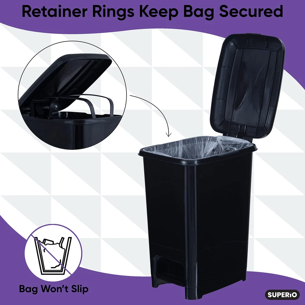 plastic kitchen trash cans are designed for durability, convenience, and style. These garbage cans are made from a sturdy plastic material that is easy to clean and maintain. The tight-fitting lids help keep odors contained. The sleek and modern design of these recycling and waste bins adds a stylish touch to any kitchen. They come in a variety of sizes and colors, making it easy to find the perfect trashcan for your needs. Unlike stainless steel waste bins, this durable and high-quality slim garbage can, will never rust! Our step-on trash can will last you for years to come. This high-quality slim Waste Bin is specially designed to fit "narrow areas" and is a great space saver. It offers an easy-to-use foot pedal that opens and closes the lid smoothly and quietly. The practical solution for waste management. DESIGNED TO SAVE SPACE – Introducing this slim and compact step-on trash can that is perfect for kitchens and bathrooms, but can also be used in offices. With a slim and sleek shape, it will squeeze into just about any space, and the modern finish makes it a subtle addition to the room. With the simple step-on mechanism, the lid opens automatically. Once you have disposed of your waste, the lid closes by itself. INCLUDES INTERIOR BUCKET HANDLE – Slim Garbage Can also comes with an easily removable inner bucket that will allow you to empty the trash quickly and efficiently! The interior bucket handle prevents the garbage bag from slipping so you never have to reach inside to pull out the bag. This feature allows for easy removal when it is time to change or empty the bag. ZERO CHANCE OF RUST AND EASY TO CLEAN – Unlike stainless steel trash cans, our trash can is made of plastic that is easy to rinse and will not rust. Also, a nice choice for office settings because it has no exposed metal parts that might scratch or dent. With a slim design and a durable plastic construction, this trash can will keep your area clean, tidy, and sanitary. NO MORE SMELLY TRASH CAN – This step-on trash can has a lid that effectively seals in odor and secures your bag to the can making removing your garbage easy and sanitary. This prevents you from cross-contaminating yourself or others which is especially important in your home or office as it keep bad odors locked away. With this said, it is perfect for dog waste trash can, bathroom trash can, and kitchen trash cans. COMES IN DIFFERENT COLORS – We have a color to suit every preference! No matter the decor style of your home, of these trash can colors will be a great fit in your space. our large catalogue of home and living essentials that will benefit you in designing your home aesthetics or spicing up your interiors.