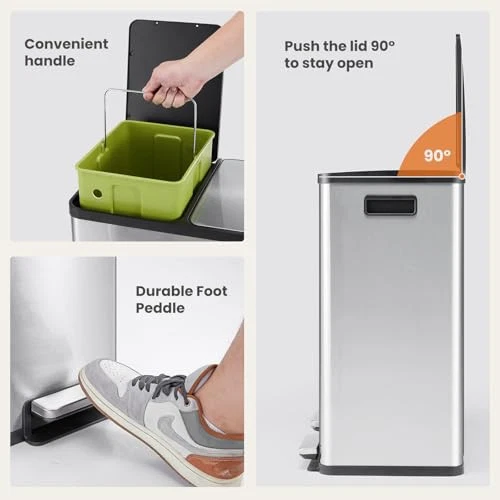 Return Policy Fast Delivery Trusted seller Kitchen Trash Can with Lid, 2 x 8 Gallon Garbage Dustbin, with Soft-Close Foot Pedal and Removable Inner Bucket, 60 Liter Large Stainless Waste Bin for Bathroom Bedroom Home Office Product Description [Strong & Fashionable Appearance] Crafted from high-quality stainless steel, our kitchen trash can displays a sleek and stylish design. The contemporary oval shape coupled with a sloping lid enhances its aesthetic appeal,this step trash can will be an eye-catcher in your kitchen. [Mute Design & Hands-Free Operation] Far from conventional noisy garbage cans, ours features a slow down technology that ensures quiet operation,whether in your bedroom or anyw else, it won’t disturb your peace. meanwhile our trash with a pedal, letting you have your hands free to tuck away your waste. [16 Gallon Ultar-Large Capacity] Offering a generous capacity of 16 gallons, this trash can caters to your daily needs with ease. this trash can includes 2 removable buckets for your convenience in loading and disposing of trash. [Easy to Clean & Isolates Smell] With its easy-to-clean stainless steel wire drawing surface, maintaining its spotless appearance is a breeze. To keep your home odor-free, the trash can features a well-sealed lid that traps in stinking smell. [Suitable for Various Places] Its design suits any room in your house - kitchen, bathroom, bedroom, living room, study, activity room or even your child's room. Shipping Returns Payment Shipping Shipping is FREE to all addresses other than APO/PO boxes in the lower 48 states. All our stock ships from US-based warehouses. Shipped via USPS or UPS (depending on location and package weight) Unless stated otherwise, all orders will ship within 24-72 hours of your payment being processed. Check our feedback to see the great reviews of FAST shipping we offer. Returns Seller does not accept returns Payment We currently accept payment via eBay managed payments only. Once payment is cleared, we will dispatch your shipment within 1-3 business days. Please refer to the "Shipping" tab for more information regarding shipping speed to your destination.