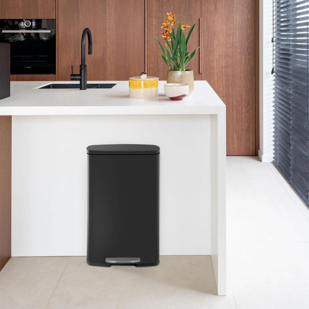★『STRONG &FASHIONABLE APPEARANCE』Our kitchen trash can is made of high quality stainless steel with a stainless steel wire drawing surface. The oval body with a sloping lid makes the garbage can look even more cool and beautiful. Buying our stainless steel trash can is a great deal for you. ★『MUTE DESIGN』Conventional』 Garbage can in use will make a lot of noise, how our kitchen trash can use slow down technology, open and close will not make a lot of noise, you can rest assured that you can use, do not worry about disturbing the rest of the family. So putting stainless steel trash can in the corner of your bedroom will make a good choice. ★『13 GALLON ULTRA-LARGE CAPACITY』 13 gallons can absolutely meet your daily use, in the kitchen table next to a kitchen trash can, you will be more convenient to deal with kitchen waste. The regular 13-gallon garbage bag in the supermarket can be used in our stainless steel trash can, and it's kind of you to use a bigger bag. The lid of the garbage can is removable, it’s convenient for you to put in and take out the garbage bag. ★【EASY TO CLEAN & ISOLATED SMELL 】Our kitchen trash can is treated with stainless steel wire drawing, which makes it very convenient to clean up the stainless steel trash can. The dirt on the surface of the garbage can be easily removed with only a rag. If you don't want the whole house to smell like you don't like, you need to make sure that the lid of the bathroom trash can is always closed, and good sealing makes this possible. ★【SUITABLE FOR VARIOUS PLACES】 Our stainless steel trash can be used in all places where we can use it. It's big, beautiful and the price is right. Why not to buy one ? The kitchen, the bedroom, the living room, the study, the activity room, even in your kid's cabin, I think it's all right to put one of our kitchen trash can .Quality assurance, if garbage can have any quality problems, you can contact us the first time, we will give you a satisfactory answer.