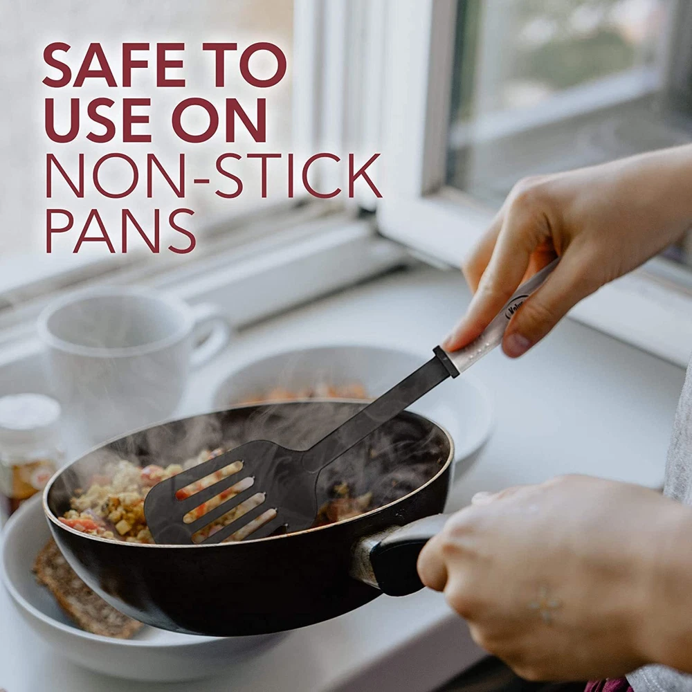 Kitchen Utensil Set – 24 Piece Nylon & Stainless-Steel Black Cooking Utensils Set, Non-Stick & Heat Resistant Black Utensil Set – Useful Kitchen Gadgets and Tools KITCHEN UTENSIL SET: Our utensil sets have everything you need for a perfect cooking experience. kitchen gadgets and accessories are made of a combination of nylon and stainless steel to ensure no scratching or sticking. COOKING UTENSIL SET INCLUDES: Soup Ladle, Solid Spoon, Slotted Spoon, Solid Turner, Slotted Turner, Potato Pusher, Can Opener, Whisk, Grater, Spatula, Tongs, Ice Scream Scooper, Wine Opener Peeler,Measuring Cups, Measuring Spoons HIGH QUALITY KITCHEN TOOLS DESIGNED TO LAST: No more worries about melting or rusty kitchen utensils. Our high-quality kitchen gadgets are polished with a special oil to prevent it from getting rusty. They are dishwasher safe, light weight and non-stick. Heat resistant is up to 350 F/180℃. GREAT VALUE NYLON AND STAINLESS STEEL UTENSIL SET : Don't spend a fortune buying each utensil individually. Buy yourself a complete kitchen tool set. Our 24 piece high quality set has everything you need included. It is specifically designed to help you with all your food preparations, such as whisking, peeling, cutting, stirring, mixing, basting, baking, grilling, frying and serving up that perfect dish. HOLIDAY GIFT IDEA: Kitchen Utensils are a great holiday gift idea and come ready to gift.
