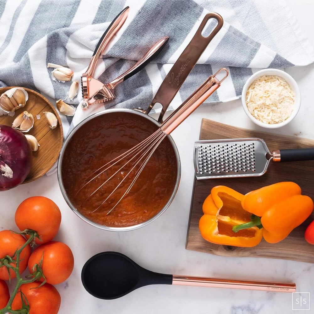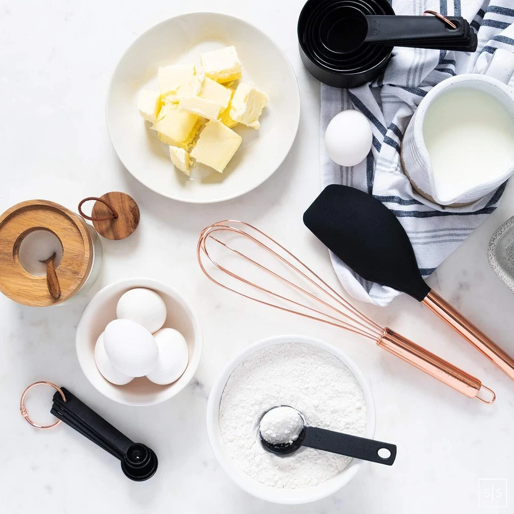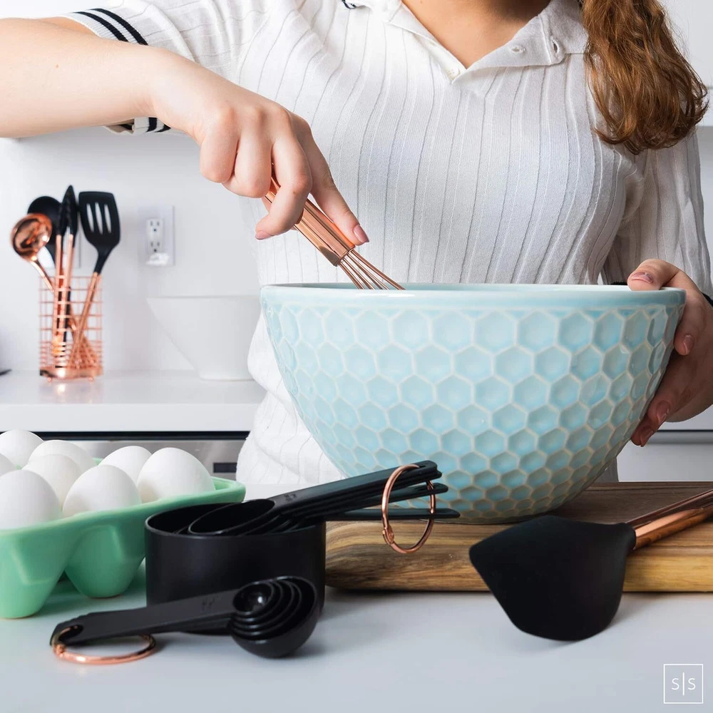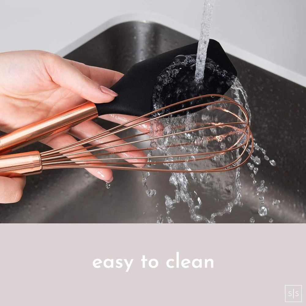 ✔ HAND WASH ONLY - The secret ingredient to cooking and baking is always love. Please give these beauties some love by keeping them out the dishwasher and hand-washing them only to maintain their vibrant luster; looks amazing with your copper home decor and copper kitchen appliances too! ✔ LONG-LASTING AND DURABLE COPPER AND BLACK COOKING UTENSIL SET, – no more melting plastic or abrasive metal - protect and extend the life of your cookware with this easy to use black silicone utensil set; avoid scratches and scuffs on all your pots and pans, even non-stick, when cooking and serving with this versatile and heat-resistant rose gold utensils set. ✔ CONVENIENT AND PRACTICAL STARTER SET – eliminate multiple purchases and mismatched utensils; outfit your kitchen with this complete and cohesive 17-PC set of stylish black and copper utensils set essentials; our black kitchen utensil set includes a black and copper spoon, copper tongs with silicone tip, rose gold ladle,silicone turner spatula, copper whisk, black spatula, black and copper measuring spoons and cups with matching copper utensil holder to complement your copper kitchen decor. On Dec 22, 2024 at 18:24:59 PST, seller added the following information: