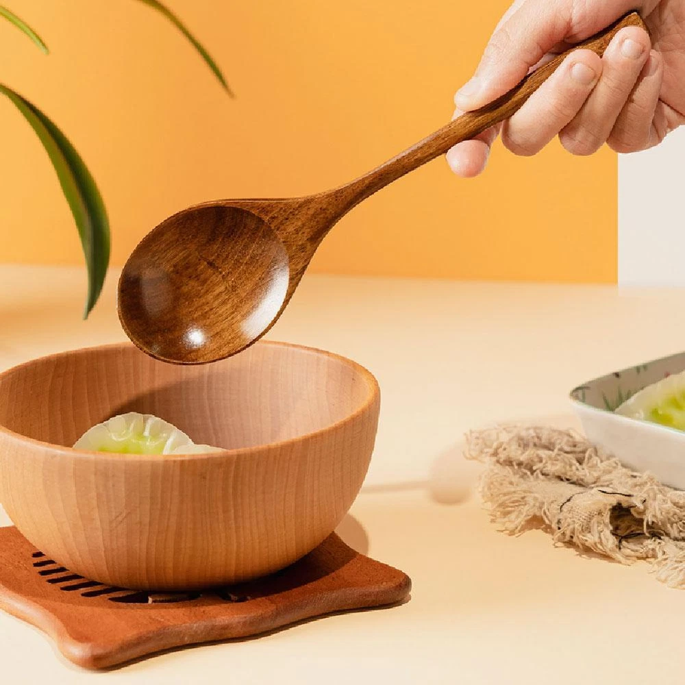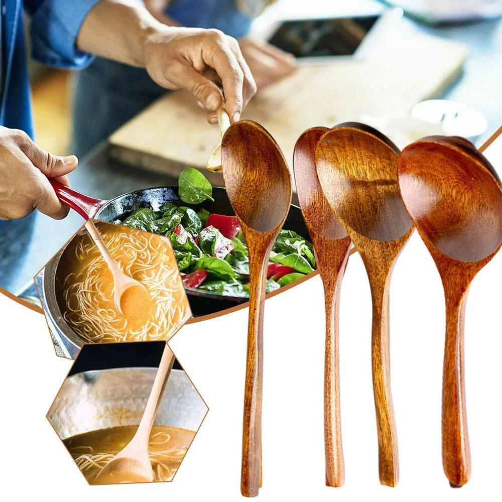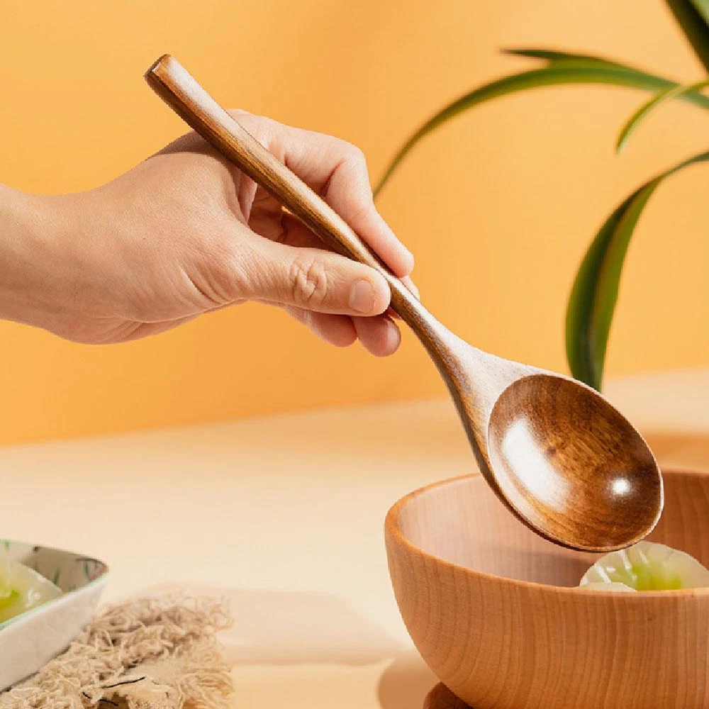 Kitchen Wooden Long Handle Ladle Soup Ladle Retro Japanese Wood Spoon Utens U9A3