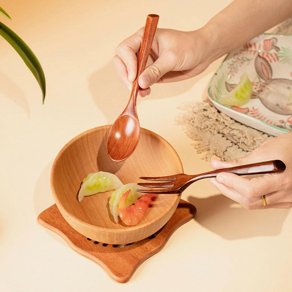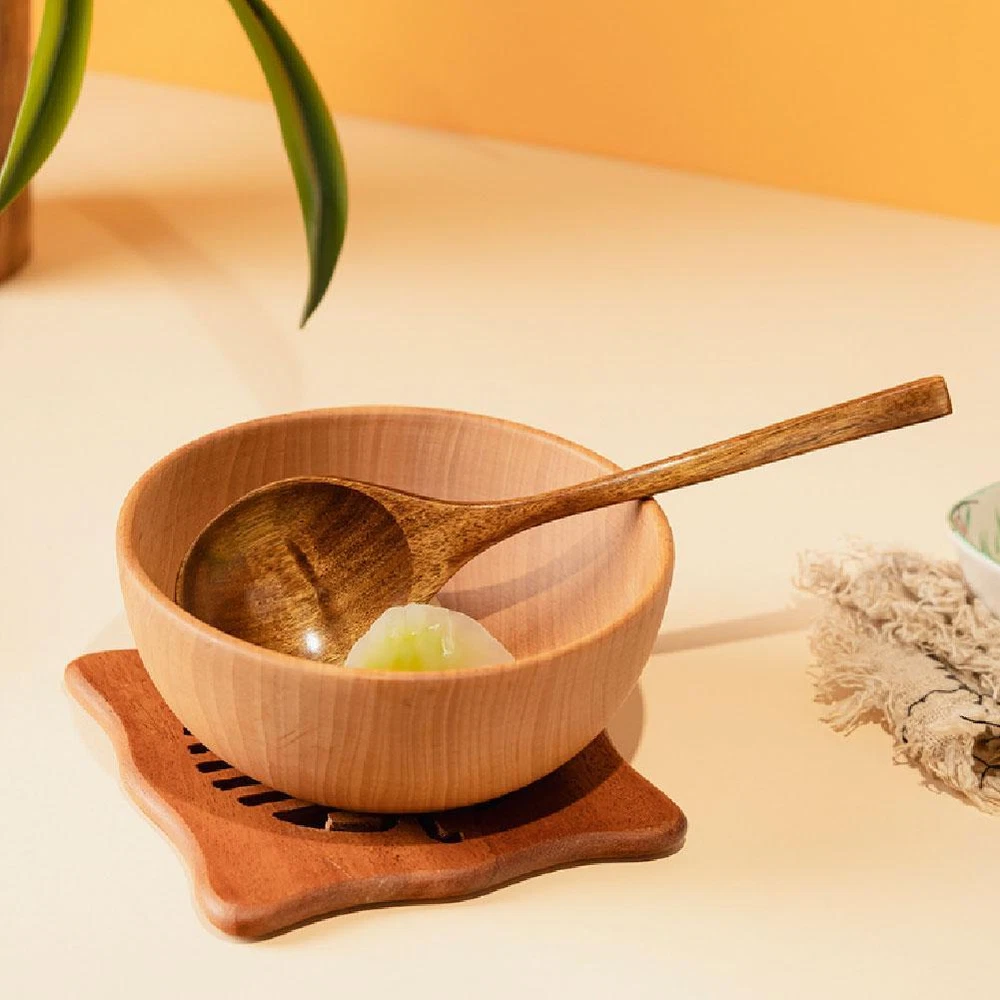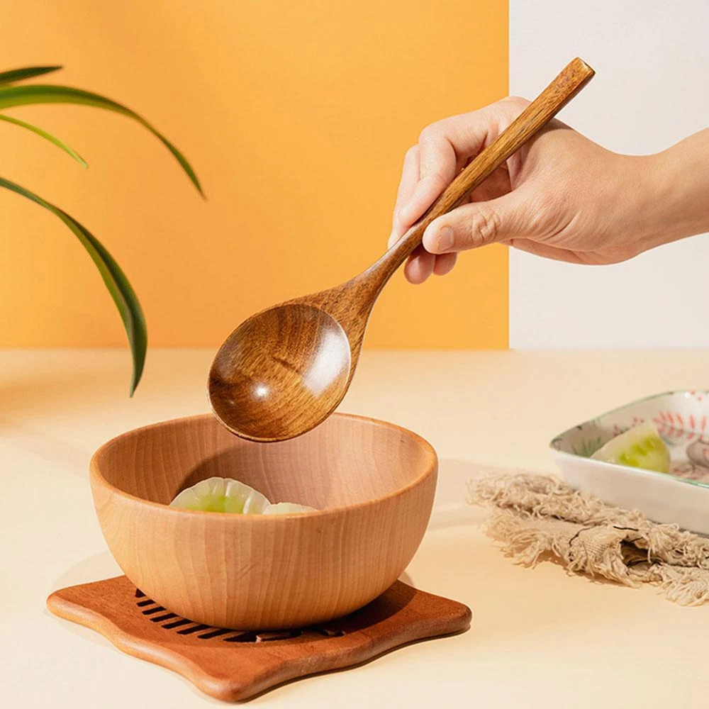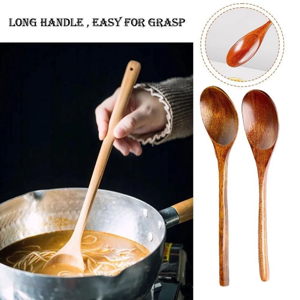 Kitchen Wooden Long Handle Ladle Soup Ladle Retro Japanese Wood Spoon Utens U9A3