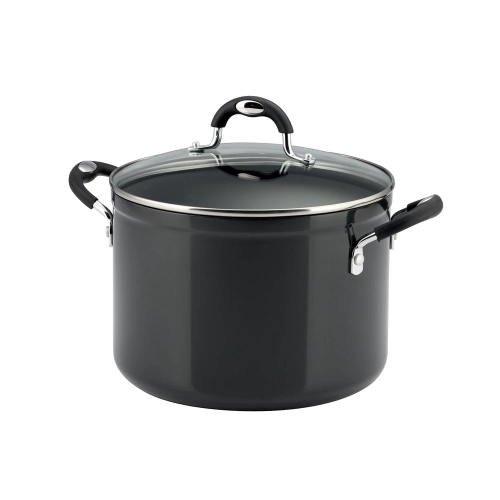 The 8-Quart Porcelain Enamel Aluminum Nonstick Lid Stockpot is perfect for boiling pasta, preparing soups, cooking vegetables, or simmering chili. Cooks will appreciate its heavy-gauge aluminum construction, quick heat distribution, and durable porcelain-enamel exterior that resists chips and scratches. The heat- and shatter-resistant tempered glass lid lets you monitor cooking progress, while the ergonomically designed handles provide extra support when handling a pot filled with water. This dishwasher-safe cookware is suitable for gas, electric, and ceramic glass stovetops. PFOA-free nonstick interior for easy cooking and cleanup ? Durable porcelain-enamel exterior with heavy-gauge aluminum for even heat distribution ? Tempered glass lid ? Stainless steel handles with soft-grip silicone trim ? Suitable for gas, electric, and ceramic glass stovetops ? Oven safe up to 400 °C 8-Quart Style Gray Nonstick Lid Stockpot On Dec 5, 2024 at 01:53:32 PST, seller added the following information: