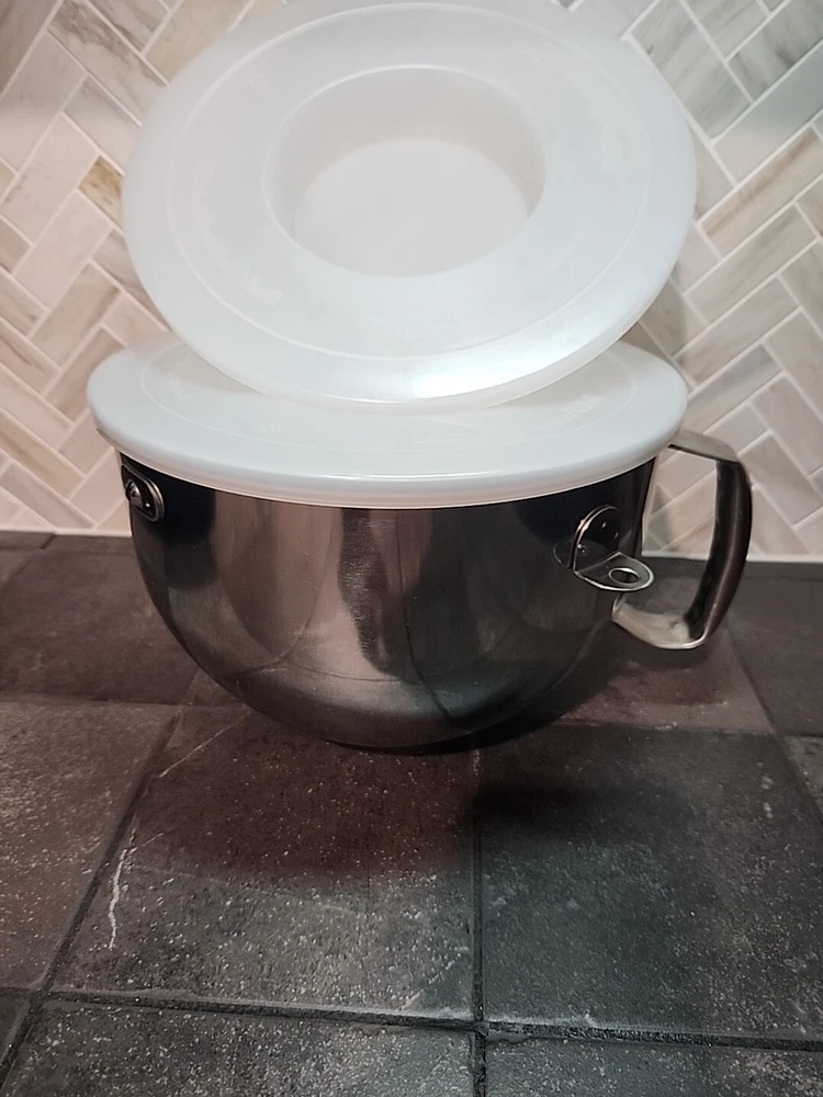 This is a pre-owned BOWL and 2 LIDS. It is in great condition. You can use this as a replacement or just an extra bowl for your larger jobs. The lids are great for Christmas cookie time