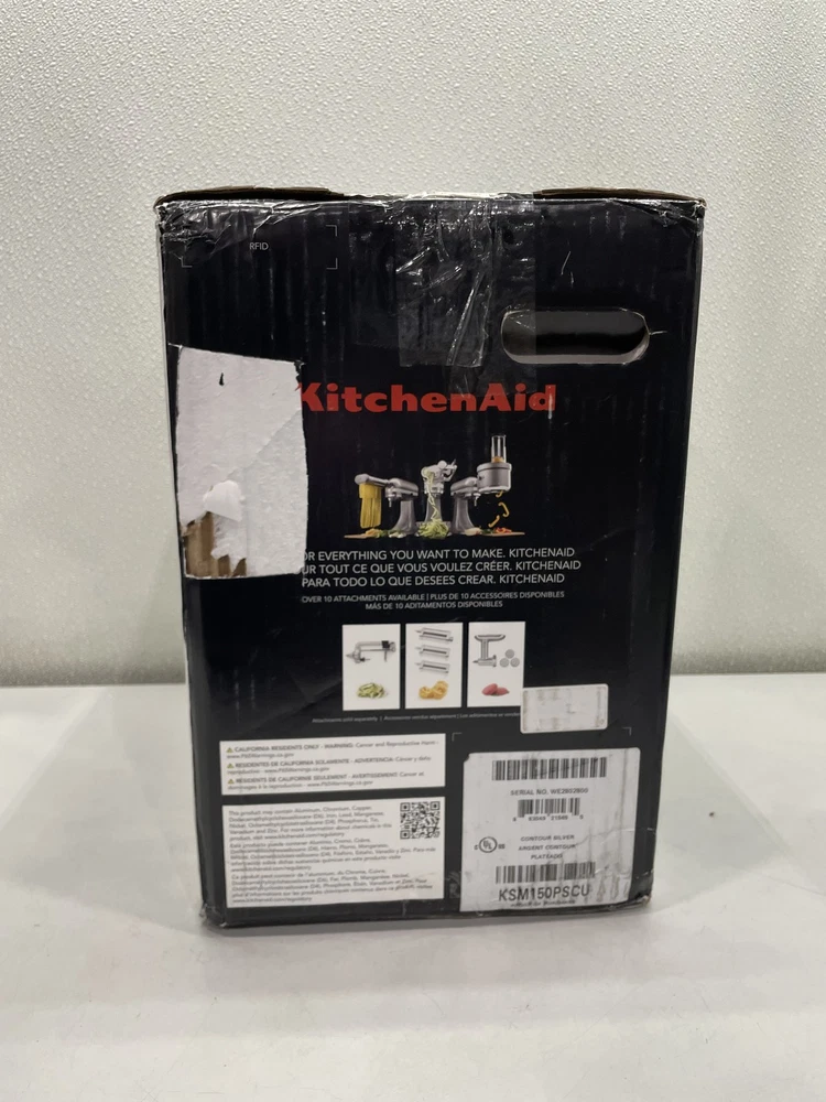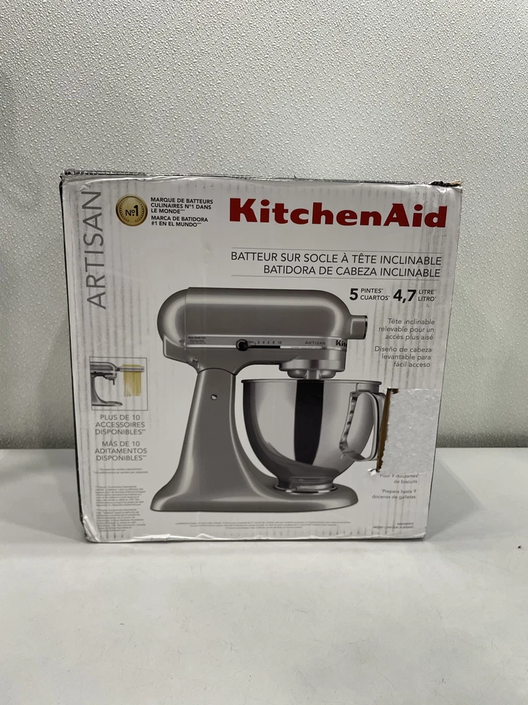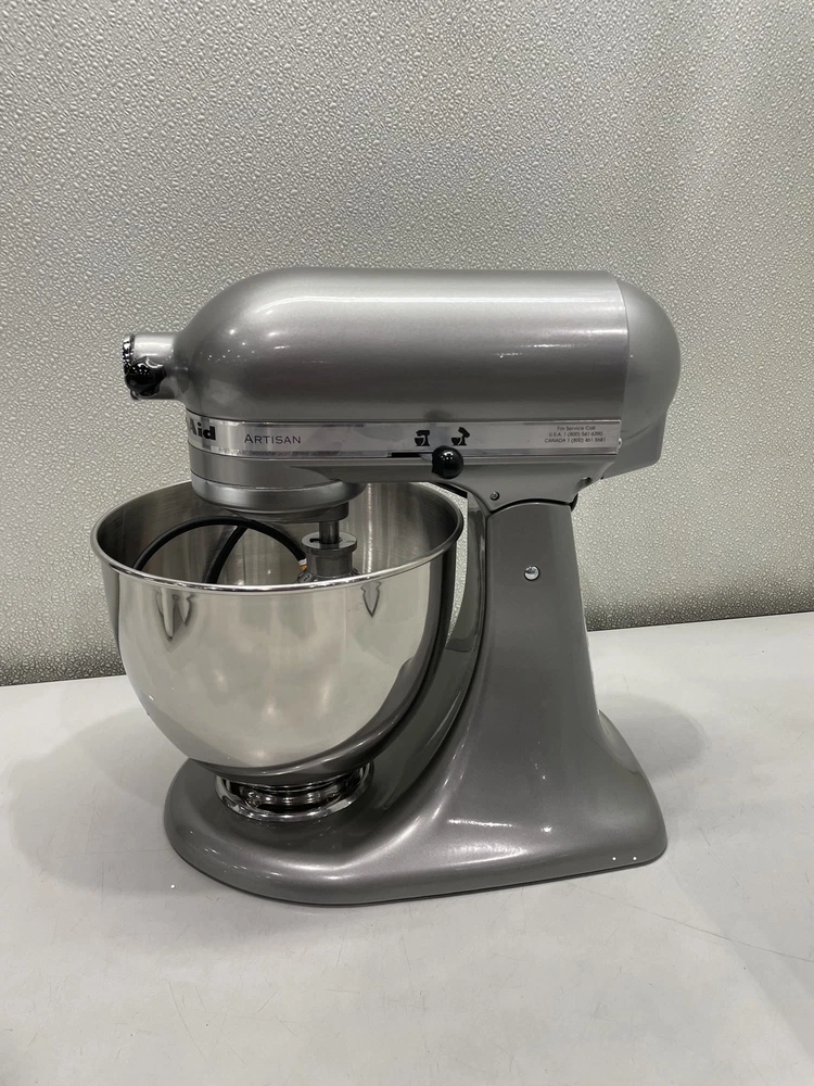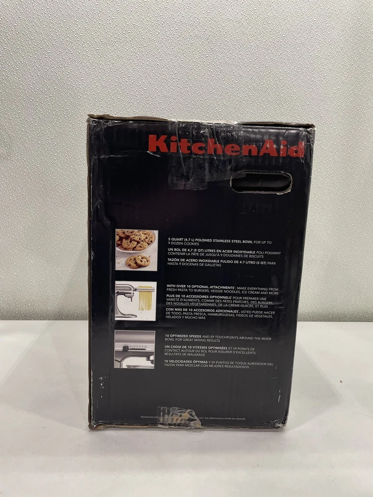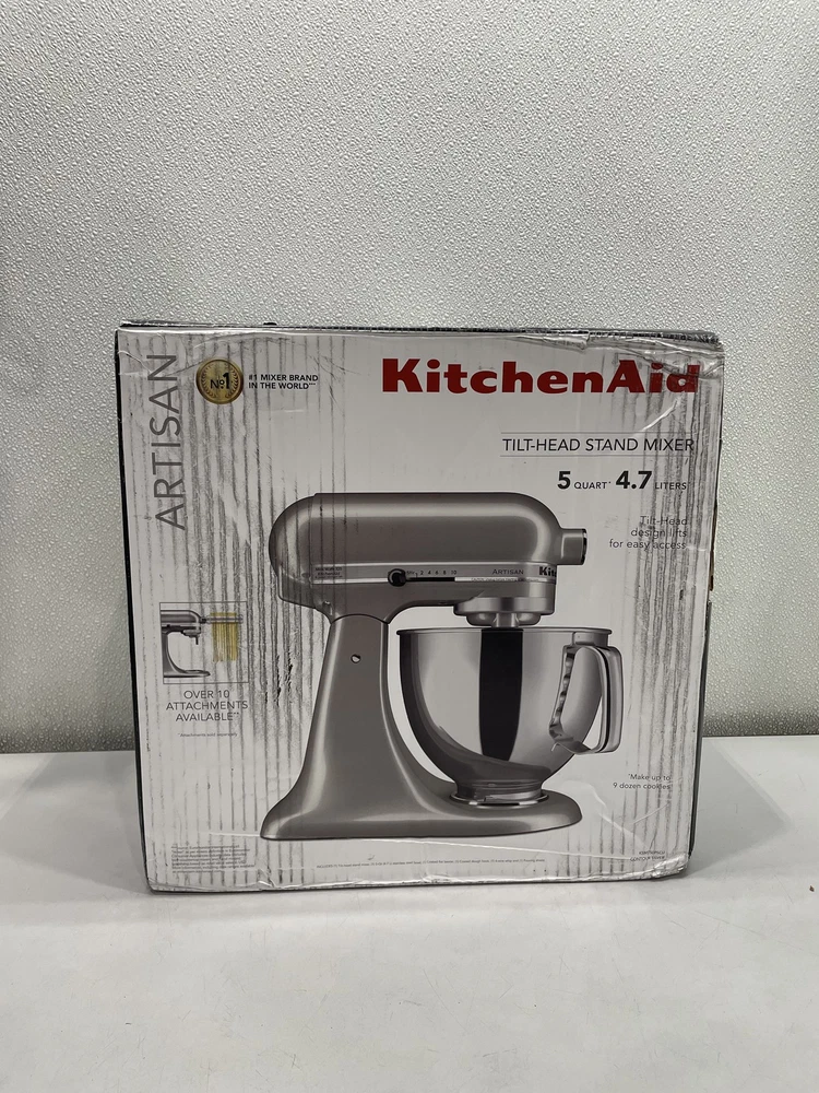 ebay template KitchenAid Artisan 5 qt. Tilt-Head Stand Mixer Contour Silver Condition: Open box -- New in original distressed packaging. Dusty from warehouse storage. Notice: All items included are shown in photos. All dimensions are approximate. Item Specifics: BRAND KitchenAid MODEL Stand Mixer COMPONENTS INCLUDED 1x Coated Flat Beater, 1 Coated Dough Hook, 1x 6-Wire Whip COLOR Gray CAPACITY 5 qt POWER SOURCE Electric TYPE Standalone Mixer UNIT QUANTITY 1 UNIT TYPE Unit Cargo Largo is not sponsored by or affiliated with the brand associated with the product being sold. Payment Shipping Local Pickup Returns Contact Us Payment Cargo Largo requires payment within four (4) days. (Please note that this is real-time, beginning when the auction ends.) If payment has still not been received by the fourth (4th) day after the end of the auction, Cargo Largo will relist the item. Most states require the collection of SALES TAX on online sales by remote sellers. We will abide by all local, state and federal tax codes and buyer should check their state and locality for tax liability. Residents of Missouri and all buyers who pick their item(s) up locally are required to pay Missouri sales tax on all items. Shipping We ONLY ship within the lower 48 United States. We ONLY ship to the address selected by the customer at checkout. Buyers MAY NOT arrange their own shipping. ALL orders with total value of $750 or more WILL require a delivery signature. For this item, we DO NOT offer combined shipping with other listings. Local Pickup We offer local pickup for all our eBay auction items. To request local pickup for items you have won, please send us a message asking for “pick up” and we will send you an updated eBay invoice with your total. All local pickup orders MUST be paid within 4 DAYS after the listing ended per eBay policy. The payment total will include Missouri sales tax AND a $4 handling fee per item. Buy It Now items are NOT eligible for local pickup. Paid items must be picked up within 10 DAYS after the end of the listing. If not, your order will be cancelled and refunded. If someone else is picking up your order, please email us 1 day before and give us the name of the person picking the item(s) up and order#. Items will not be released without notification. Local Pickup Location 7460 Stadium Drive Kansas City, MO 64129 Pickup Hours SUNDAY MONDAY TUESDAY WEDNESDAY THURSDAY FRIDAY SATURDAY CLOSED 11am-6pm 7:30am-4pm CLOSED 7:30am-4pm 7:30am-6pm CLOSED Returns We are not an authorized dealer of this product and any warranty included with the product may not be honored by the manufacturer. If you believe that the item purchased from us does not match the item description, or if your item was damaged during transit, please contact us to discuss return and refund options. In order to initiate the refund process, buyer must contact us within 30 Days of receipt of item. All returns will require a return authorization. Please note that we will only pay return shipping if our listing does not accurately reflect the specifications or condition of the item received. If you wish to return an item for any other reason, we will accept a return on MOST items, provided that the item is returned to us in the same condition and within 30 Days. This applies to both the item and retail packaging. Buyer will be responsible for both original and return shipping charges Seller will initiate this transaction and refund the buyer once the item has been received AND agreed to the mutual cancellation. We DO NOT accept any returns on any item marked AS IS for any reason other than a grievous error in the listing. Please bid accordingly on all items listed AS IS. Additionally - to protect product hygiene and freshness for our customers, undergarments and swimwear are not returnable. Sizes vary from brand to brand; please be familiar with the brand you are bidding on. If you need more information, contact us directly. Contact Us If you have any questions, please use the “Contact Seller” link in the upper right section of the listing. Our business hours are 8:00 AM - 3:30 PM Monday-Friday (Central Time). Sales completed and emails received after normal business hours may be handled the next business day. Sell Smarter with Kyozou. Inventory and Ecommerce Management