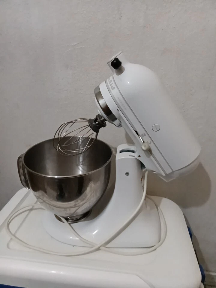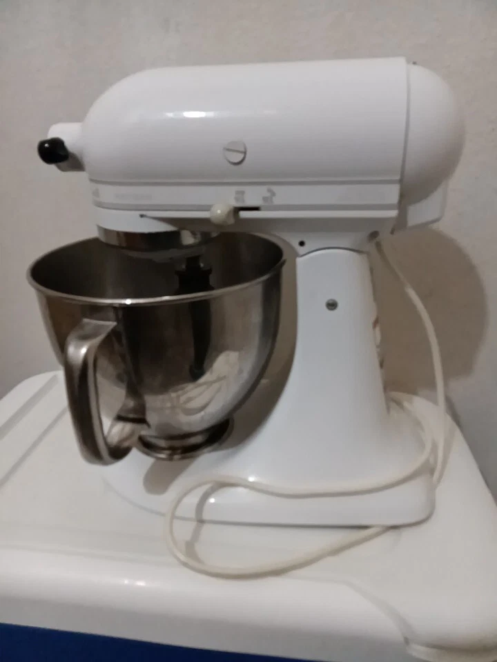 Introducing the KitchenAid Artisan Series Stand Mixer in Milkshake. This powerful 5 qt mixer features 10 different speeds and button controls for easy operation. The glossy white finish and stand included make it a stylish addition to any kitchen. Comes with 5qt stainless steel mixing bowl with handle and mixing blade. With its electric power source, this KitchenAid mixer is perfect for creating delicious treats and mixing ingredients with ease. The Artisan model is a standalone mixer that comes equipped with a variety of features, including a 5 qt capacity and a durable design. It's perfect for home bakers and professional chefs alike. Get ready to create some amazing recipes with this high-quality mixer!