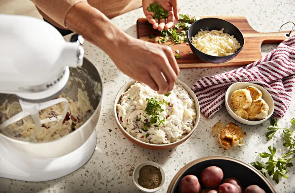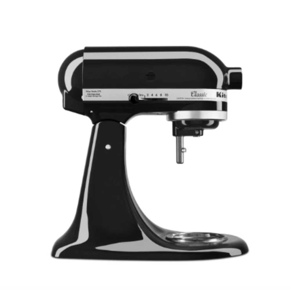 WHAT'S IN THE BOX? Stand Mixer in your color of choice 5 Quart Stainless Steel Bowl Coated dough hook Coated flat beater 6-Wire Whip FEATURES #1 Mixer Brand in the World* *Source: Euromonitor International Ltd. for retail sales revenue, USD, all retail channels. More information, including date ranges available at: mixerclaim.kitchenaid.com 10 Speeds for Nearly any Task or Recipe From mixing ingredients together on stir speed, to whipping cream at speed 8, you'll get thorough ingredient incorporation every time. The Power and Durability to Take It All On Durable and built-to-last metal construction, with 59 touchpoints around the mixer bowl for great mixing results. 4.5 Quart Capacity for Small or Large Batches 4.5 Quart Stainless Steel Bowl to mix up to 8 dozen cookies in a single batch. Dishwasher safe. Using the flat beater; 28g dough each. Easily add Ingredients with the Tilt-Head Design You'll have better access to the bowl when adding ingredients or attaching your preferred accessory. Lock the head in place while mixing. 10+ Attachments Available to Make More with your Mixer A variety of versatile attachments to make everything from fresh pasta to burgers, veggie noodles, ice cream and more. SPECIFICATIONS