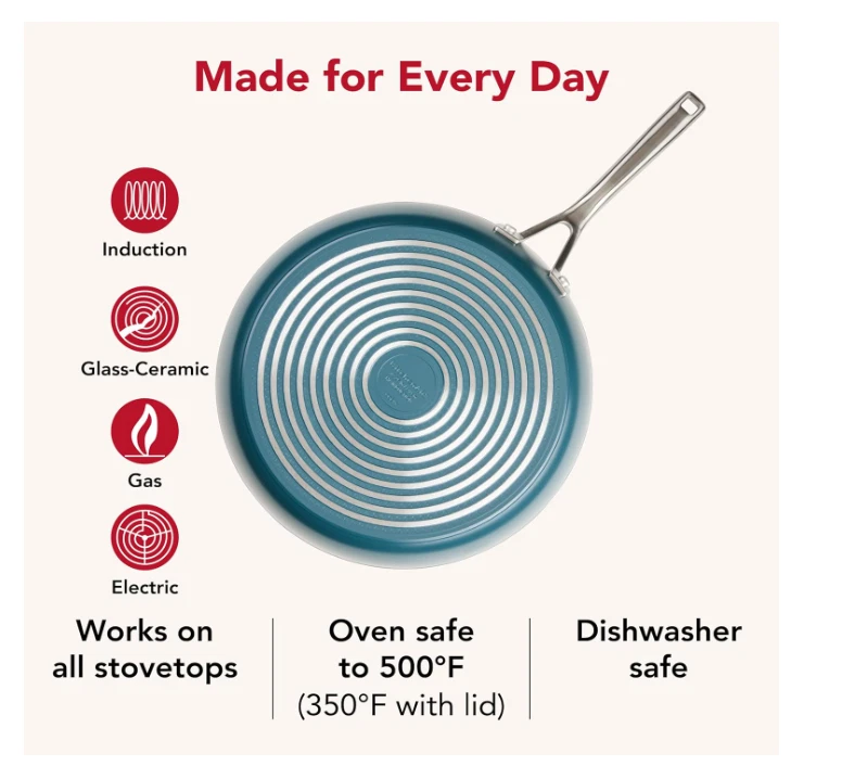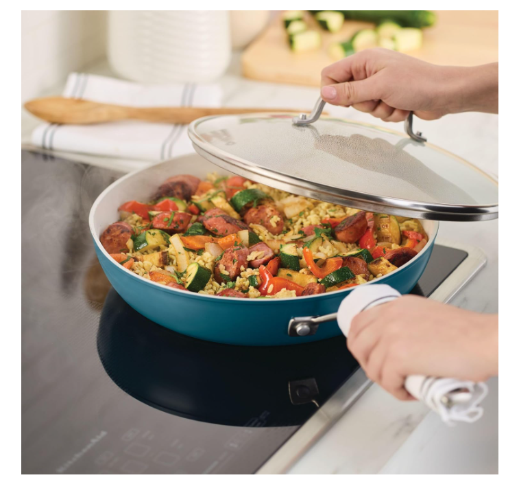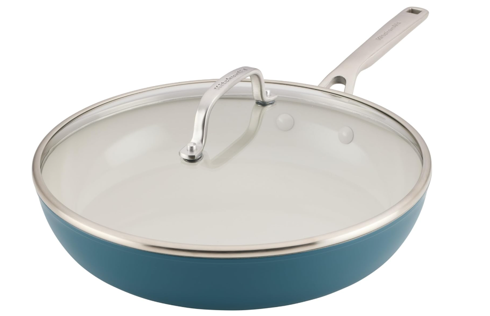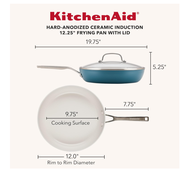 About this item DURABLE CONSTRUCTION: KitchenAid’s hard-anodized cookware is 8x stronger than aluminum and engineered for lasting performance. Designed with a thick, forged base, this skillet ensures fast, even heat distribution for exceptional meals you’ll want to share CERAMIC NONSTICK: High-performance ceramic nonstick is crafted for consistent food release, without the use of additional oils or fats KITCHEN-TO-TABLE STATEMENT: Designed for both performance and presentation, this skillet is finished in a rich Agave, lending Southwest charm to any table setting INDUCTION READY: Skillet is designed for superior performance on any stovetop, including induction PRECISION AND EASE: Shatter-resistant tempered glass lid seals in heat and moisture, while a double-riveted stainless steel handle ensures a secure, seamless transition from stovetop to oven to table RANGE AND REPERTOIRE: Oven-safe up to 500 degrees F (lid to 350), this versatile skillet is built with the widest range of stove-to-oven meal-making, empowering cooks to try new recipes and craft dishes worth gathering around EXCEPTIONAL QUALITY AND ENDURING PERFORMANCE: This hard-anodized ceramic nonstick skillet from KitchenAid is crafted for lasting performance and backed by a Limited Lifetime Warranty
