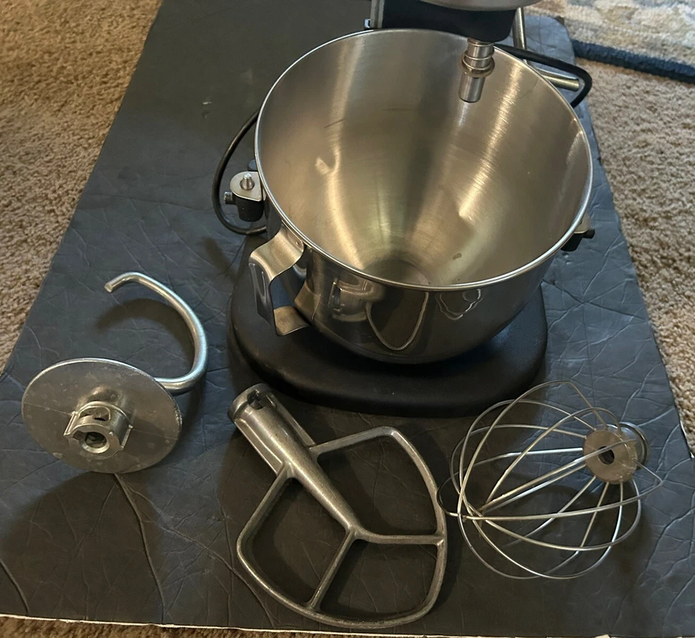 This Kitchen Aid Heavy Duty Plus 10 speed stand up mixer comes with bowl and 3 attachments. There is a small chip on the top back end (pic).