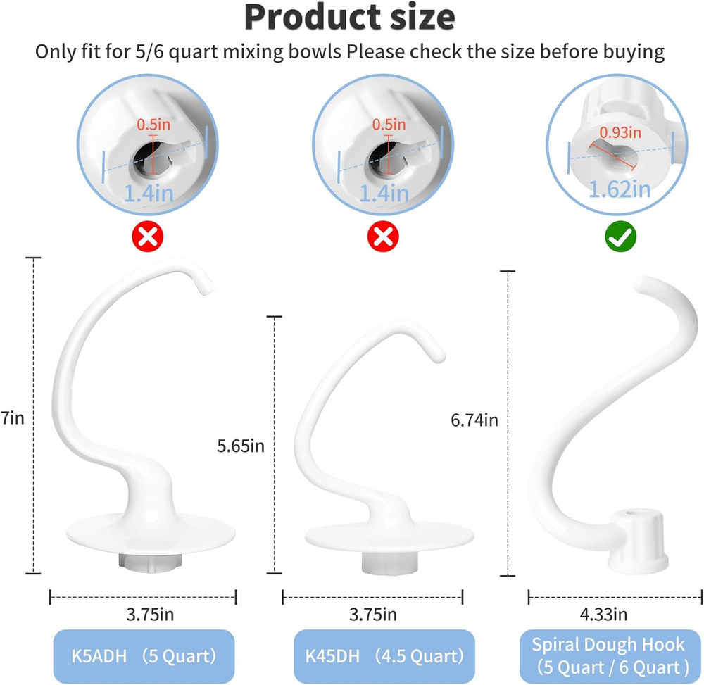 1. This spiral dough hook is a game-changer for my KitchenAid mixer! It fits perfectly and kneads dough so smoothly—no more struggling with tough batches. The coated design prevents sticking, and it's sturdy enough for heavy dough. Works flawlessly with my 5-qt lift stand mixer, making baking a breeze. Highly recommend for anyone who loves homemade bread or pizza!