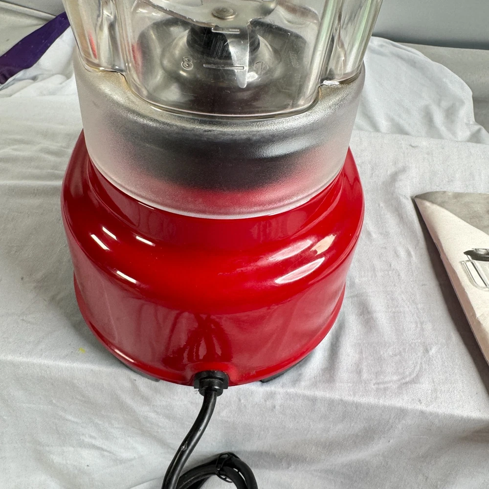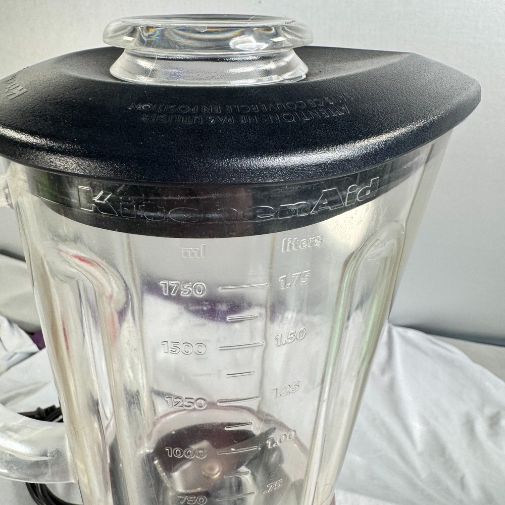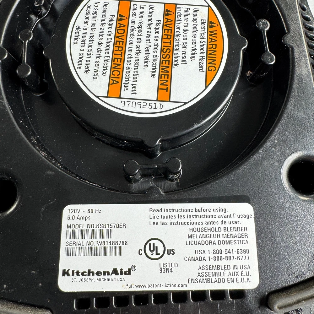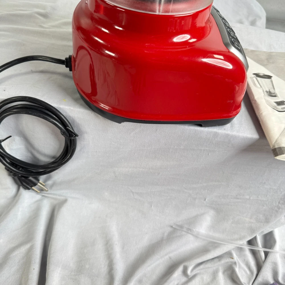 Number of Items: 5 Color: Red Item Depth: 8 in Model: KitchenAid KSB1570ER Power Source: Electric Appliance Uses: Smoothie, Frozen Drink Brand: KitchenAid Appliance Capabilities: Blend Country of Origin: United States Features: Crushes Ice Number of Speeds: 5 Voltage: 120 V Capacity: 56 oz Components Included: Blender Seller Notes: “Pre-owned. Tested and working properly. Cosmetic wear from normal use (see photos).”
