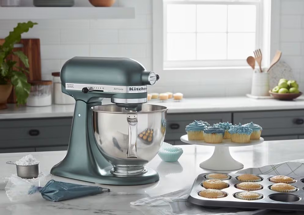 KitchenAid Artisan Series 5-Quart Tilt-Head Stand Mixer The KitchenAid Artisan Series 5-Quart Tilt-Head Stand Mixer is a timeless, professional-grade kitchen appliance renowned for its durability, power, and versatility. Built with high-quality all-metal construction and a powerful direct-drive motor, it delivers consistent performance across 10 precise speeds—from gentle stirring to high-speed whipping—making it ideal for mixing batters, kneading dough, whipping cream, shredding chicken, or preparing large batches of cookies (up to 9 dozen per bowl using 28g dough with the flat beater). The spacious 5-quart polished stainless steel bowl features a comfortable handle for easy lifting and pouring, and it is dishwasher-safe for quick cleanup. The tilt-head design lifts smoothly to allow effortless access for adding ingredients or attaching accessories, then locks securely for stable, hands-free mixing. The front-mounted power hub is compatible with over 10 optional attachments (sold separately), including pasta makers, food grinders, spiralizers, ice cream makers, and vegetable slicers, transforming it into a complete kitchen system. Included accessories provide immediate versatility: a coated flat beater for mixing batters and frostings, a coated dough hook for kneading yeast doughs, and a 6-wire whip for incorporating air into whipped cream, meringues, and soufflés. With 59 touchpoints for thorough mixing and KitchenAid’s legendary reliability, this mixer is engineered for lifelong use. Available in a wide range of classic and contemporary colors (including Porcelain White, Onyx Black, Matte Silver, Empire Red, Contour Silver, and many limited-edition shades), it adds a stylish, personalized touch to any kitchen countertop. Perfect for home bakers, culinary enthusiasts, and small business owners who value precision, durability, and enduring design in their kitchen tools.