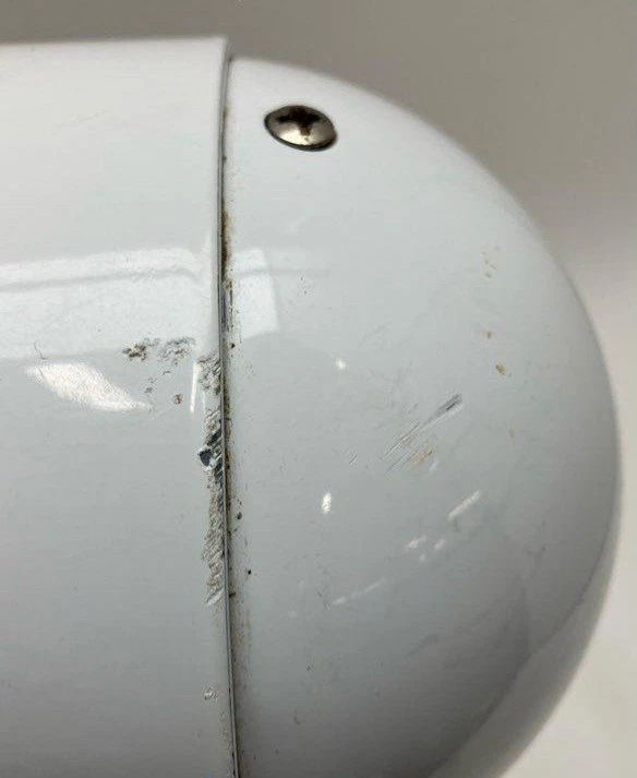 Works perfectly. Needs cleaning. Has a scuff mark, not too bad.