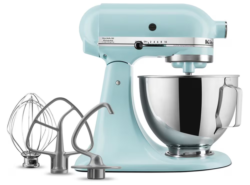 BRAND NEW FAST FREE SHIPPING Durable Construction : Features durable, built-to-last metal construction with 59 touch points for thorough mixing results. Generous Capacity : Includes a 4.5-quart stainless steel bowl with a comfortable handle, capable of mixing up to 8 dozen cookies in one batch. Convenient Access : The tilt-head design allows for easy ingredient addition and better access to the bowl, with a secure lock during mixing. Versatile Speeds : Offers 10 distinct speeds for various tasks, from gentle stirring to powerful whipping, ensuring thorough ingredient incorporation. Expandable Functionality : Compatible with over 10 optional hub-powered attachments, sold separately, for making a wide range of foods like pasta and veggie noodles. Included Accessories : Comes with a 4.5-quart stainless steel bowl, a coated flat beater, a coated dough hook, and a 6-wire metal whip.