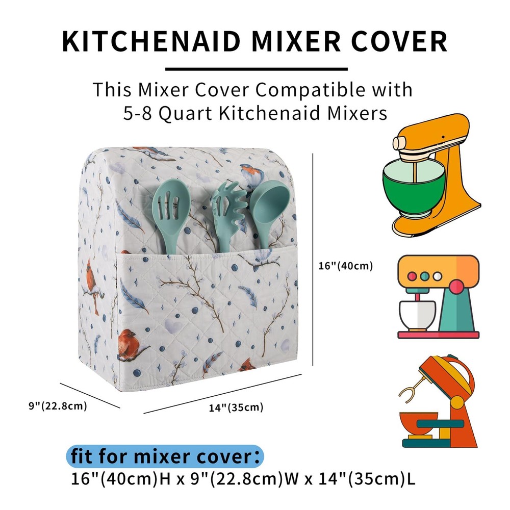 Kitchen Aid Mixer Cover Compatible with 6-8 Quarts Kitchen Aid/Hamilton Stand Mixer/Tilt Head & Bowl Lift Model,Flower Print Mixer Cover Pioneer Woman Kitchen Accessories,Kitchen Aid Mixer Accessories 【Kitchen Mixer Cover Premium Quality】This Unique Stand Mixer Cover with high quality polyester with quilted fabric, anti-tear, dust-proof will effectively extend the service life, with the neat stitches make it look so pretty.this quilted appliance cover will stand the test of time while keeping your appliances looking clean and spotless. 【Kitchen Aid Mixer Cover Dimension】16"H x 9"W x 14"L, Suit for most 6-8 quart stand mixer, compatible with Kitchenaid, Sunbeam, Cuisinart, Hamilton, kitchen Aid pasta, covers up the whole mixer even the bowl, and also fit same size coffee maker and toaster machine. 【Large Exterior Pocket For Stand Mixer Cover】Kitchen Aid Covers For Stand Mixer Great for storing recipes, the manual, spatulas, flat attachments,kitchen Aid pasta attachment, kitchen aid attachments or other kitchen gadgets. 【Easy To Use And Clean】Kitchen Aid Mixer Assecories-Mixer Cover no heavy or more extra cleaning process required.If the kitchen aid covers for stand mixer becomes soiled or stained, throw the kitchen aide covers stand mixers attachments in the washing machine to refresh with your other kitchen or home linens and tumble dry on low. 【Perfect Gift For Your Lover】Our mixer cover with a beautiful watercolor floral print design, that would look nice in kitchen. Both practical and beautiful.it is pioneer woman kitchen accessories,The Stand Mixer Cover is valentines day gifts for mom,valentine's day gifts for her,valentines day gifts for wife.Any important festival can choose it as the best gift kitchen aid mixer cover Shipping We offer FREE shipping on all orders! We ship within Three business days of payment, usually sooner. We use a selection of shipping services such as UPS, FedEx, USPS etc. We only ship to the lower 48 states, no APO/FPO addresses or PO Boxes allowed. Local pickups and combined shipping options are not provided at this time. International buyers – please note: Import duties, taxes, and charges aren't included in the item price or postage cost. These charges are the buyer's responsibility. Please check with your country's customs office to determine what these additional costs will be prior to bidding or buying. Order Cancellation Policy * Order Cancellation Policy ** You can return a product for up to 30 days from the date you purchased it. 1. The seller reserves the right to cancel the special case only due to eBay cancellation fee. 2. The decision of seller is the final. 3. The seller will respond to the cancellation request within 2 business days. Please wait for the result of cancellation. 4. In case the cancellation is not completed by some reasons, the buyer can follow the options below to get the refund. 4.1 The buyer can reject the item when it arrives. 4.2 The buyer can send the item back to the seller within 30 days If the buyer receives item (USA Shipment ONLY). The seller will provide the FREE return label to the buyer when the buyer opens " Return Item" case on eBay by using the reason as "Change my mind" ONLY. 5. When buyer has placed the order. The order will be processed and completed by automatic warehouse system within 5 minutes. In case that buyer sends the cancellation request after 5 minutes of placing the order, the request will be rejected. **Sending direct message to cancel the order is not allowed for every case.* Return Policy - If buyer would like to return the items for refund or replacement, please CONTACT SELLER to receive the free return label from seller. The refund or replacement will be processed with the tracking number of return label which is provided by seller only. The other ways of return which are not approved by seller will not be processed for the refund or replacement. Return You can return a product for up to 30 days from the date you purchased it. Any product you return must be in the same condition you received it and in the original packaging. Please keep the receipt. Payment We accept payment by any of the following methods: eBay Payments Please pay as soon as possible after winning an auction, as that will allow us to post your item to you sooner! Feedback Customer satisfaction is very important to us. If you have any problem with your order, please contact us and we will do our best to make you satisfied. Contact Us If you have any queries, please contact us via ebay. We usually respond within 24 hours on weekdays. Please visit our eBay store to check out other items for sale! Thank you for shopping at our store.