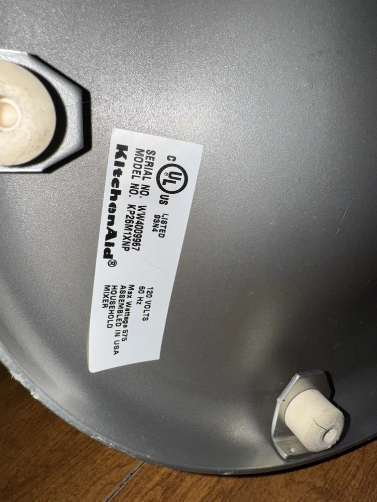 Model: KitchenAid Professional Pro 600 Series Power Source: Electric Voltage: 120 V Number of Items: 6 MPN: KP26M1XPM Material: Steel Country/Region of Manufacture: United States Number of Speeds: 10 Power: 575w Color: Gray Features: Speed Setting Components Included: Mixer Finish: Glossy Brand: KitchenAid Appliance Capabilities: Mix Manufacturer Color: Metallic Type: Standalone Mixer Appliance Uses: Dough, Whipped Cream, Mixing Cable Length: 60 in Capacity: 6 qt Number of Settings/Programs: 10