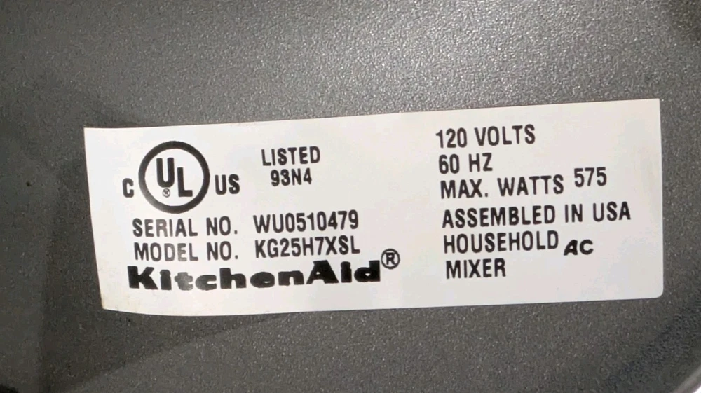 Brand:KitchenAidNumber of Items:5Number of Speeds:10Color:SilverCountry/Region of Manufacture:United StatesModel:KG25H7XSLNumber of Settings/Programs:10Power:575 WComponents Included:Base, Beater, Blades, Bowl, Dough Hook, Mixer, Motor Base, Stainless Steel Bowl, Stand, Whisk