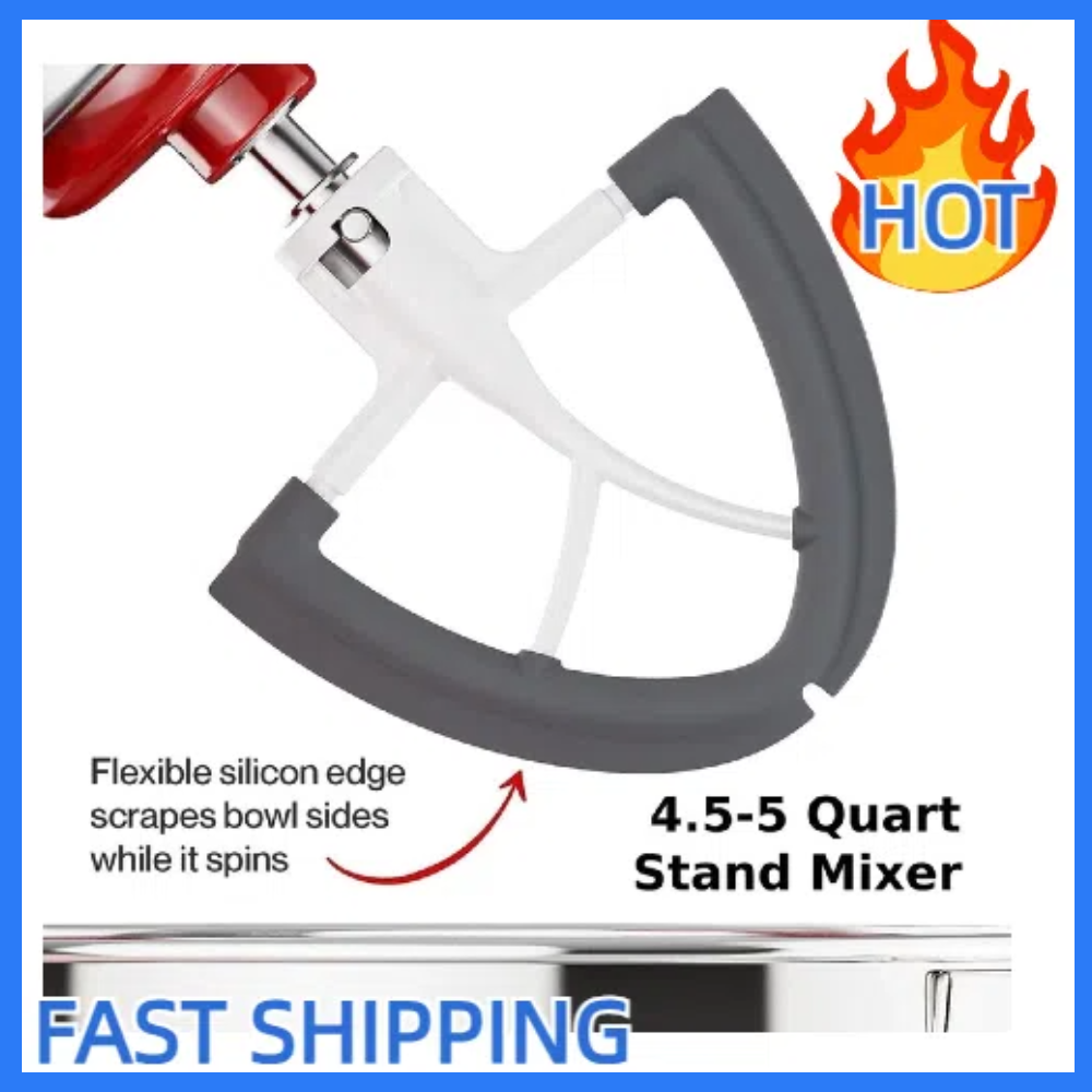 Flex Edge Beater 4.5-5 Quart Stand Mixer Tilt-Head Attachment For Kitchen-Aid Quantity: 1pc Flex Edge Beater Product Overview: Flex edge beater which provides great beating performance and more thorough mixing results with all kinds of liquids, powders, doughs and creams. Reduces mixing time and the need to scrape ingredients down the side of the bowl when you’re mixing because this beater features a flexible edge that thoroughly scrapes ingredients into the bowl. Compatibility: Suitable bowl size: 4.5 or 5 quart titl-head stand mixer bowls. Fits model: for Classic, Classic Plus, Ultra Power, Artisan, Artisan Design, K45, K45SS, KSM1, KSM15, KMS16, KSM100, KSM103, KSM110, KSM120, KSM150, KSM151, KSM152, KSM153, KSM155, KSM158, KSM160, KSM165, KSM4, KSM45, KSM75, KSM8, KSM80, KSM85, KSM9, KSM90, KSM95. Not compatible with some Costco and Sams Club KitcherAid Mixers. Not fit 6 quart, NOT for bowl-lift mixer. Not for 5 qt bowl-lift style mixer like the PRO 500 and the Professional Plus 5 Series stand-mixer. Main Mixing Jobs: 1. Ideal for light to medium-heavy mixing, such as biscuits, cookies, quick breads, cheesecakes, cake dough, waffle and pancakes, mashed potatoes, pie mix, creamed frostings, whipping eggs and much more. 2. But do not use with heavy mixes such as breads, coffee cakes, rolls and buns, which should turn to dough hook or that flat beater without silicone edge. Instructions: Note: replaces the flat beater from your stand mixer. 1.Secure mixing bowl and attach; 2.Raise bowl into locked position; 3.If needed,lower the mixing bowl and use the height adjustment screw to fine tune the blade-to-bowl contact; -Clockwise lowers the bowl(1/8 turn at a time to decrease contact). -Counterlockwise raises the bowl(1/8 turn at a time to increase contact). 4.Add ingredients on the left side,facing the machine,aiming for the center of the bowl; 5.Always add flour slowly on “Stir”; 6.If motor slows when adding flour,increase speed one level at a time. Material: Sturdy metal alloy frame & soft silicone edges. The metal inner-frame offers high stability and power for heavy mixing jobs while the soft silicone sides ensure mixing is done thoroughly without scratching your 4.5 and 5 quart mixing bowl. Time Saver: The flexible silicone edges make it possible to scrape the side of the bowl so you don't have to constantly stop and use a spatula to do so. Reduces mixing time by 50 percent. Cleaning: Dishwasher or hand wash Specifications: Item Name: Beater Blade Material: Metal + Coating + Silicone Features: Mixer Accessories, Durable, Flexible Edge Size: 15.6cm x 15.2cm / 6.14" x 6" (Approx.) Package Included: Flex Edge Beater 4.5-5 Quart Stand Mixer Tilt-Head Attachment For Kitchen-Aid