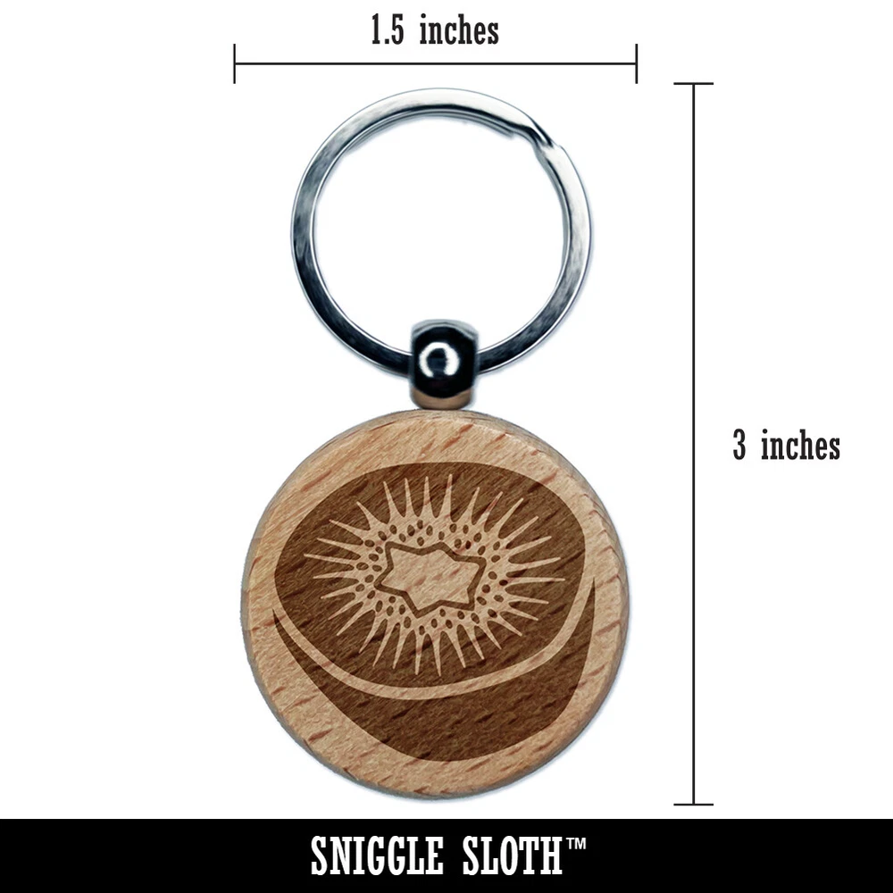Kiwi Fruit Drawing Engraved Wood Round Keychain Tag Charm