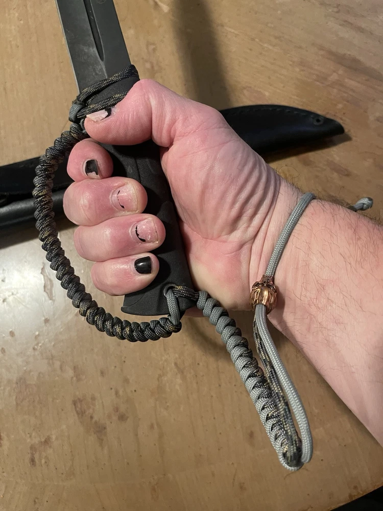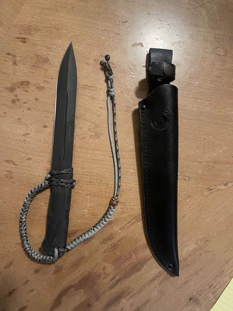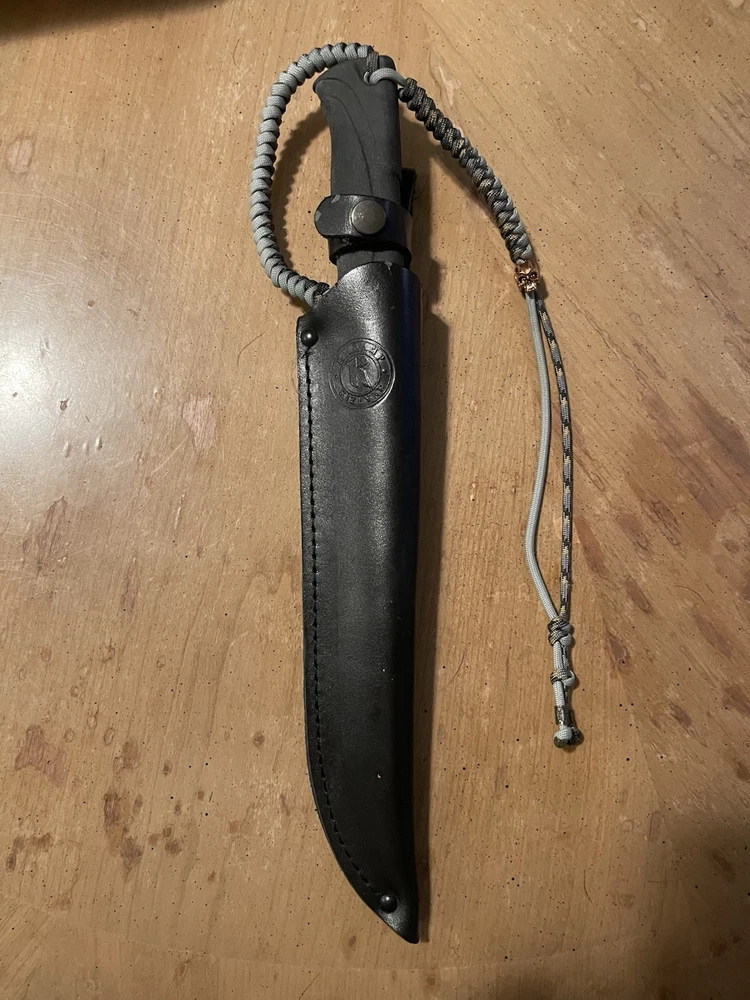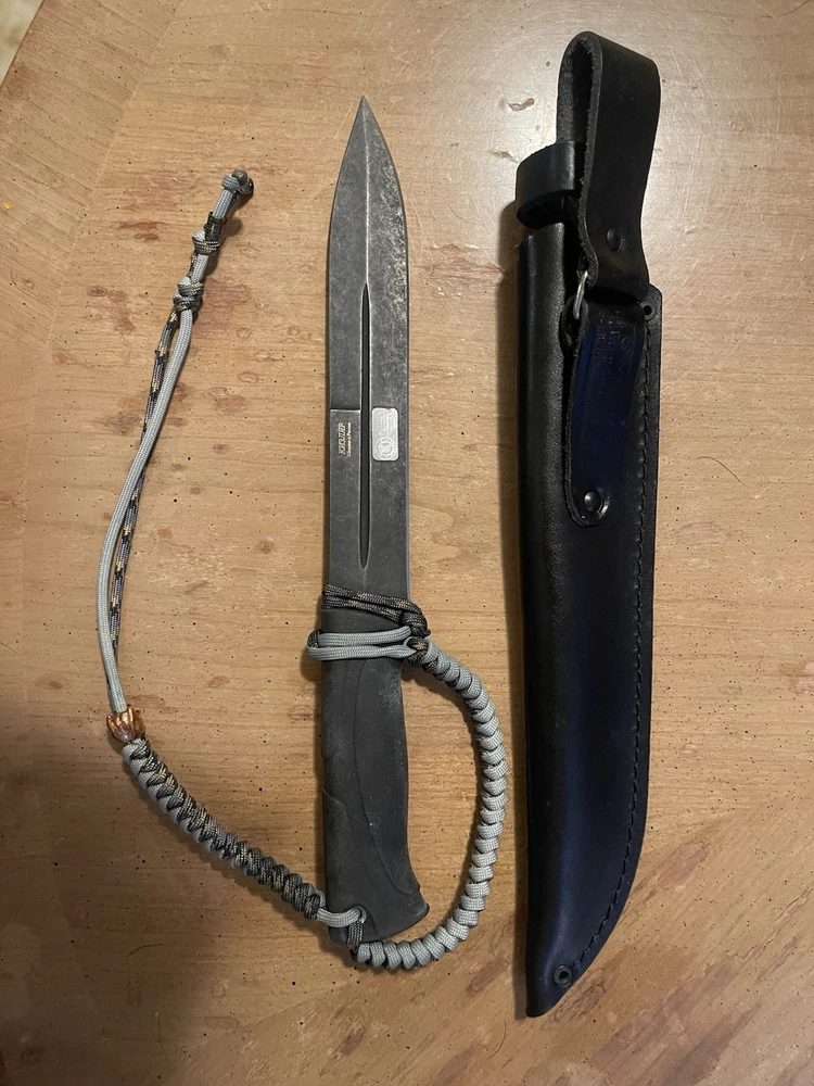 Kizlyar Supreme Fixed Blade Tactical Survival Knife With Paracord Lanyard. This knife is unused and I tied the paracord myself and it has survival paracord with fire starter in the paracord. Hopefully you never need it. This has NO box.