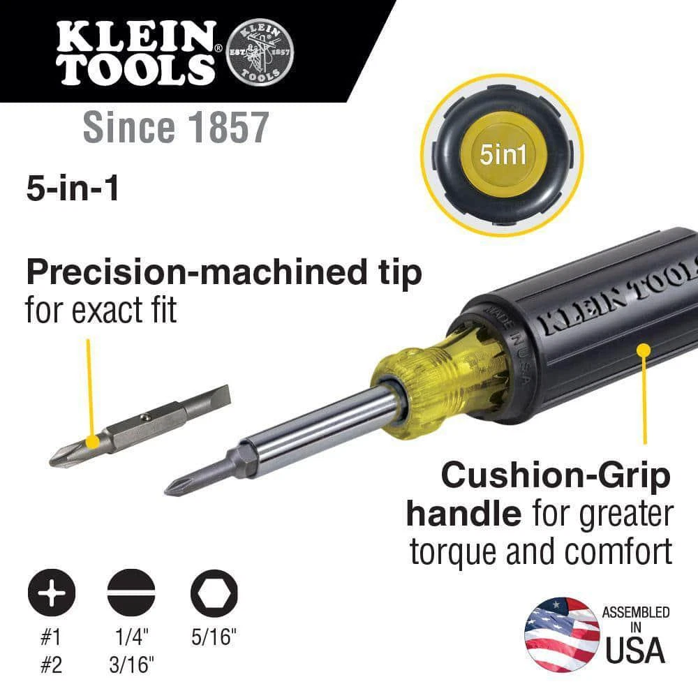 Welcome to our eBay Shop 1 Add to favorite 2 Contact us 5-in-1 Screwdriver/Nut Driver- Cushion Grip Handle Trusted Seller we have a proven track record over the years. we have 1000s of satisfied customers all over the world. 100% Positive Feedback We have 100% postive feedback score on our eBay profile. 24 Hour Dispatch We dispatch orders every working day at 3 PM. So all the orders received will be dispatched within 24 hours. Fast & Free Delivery We use UPS and royalmail first class to post items to buyers. so that buyer can receive items quickly and on time. Item Description The Klein Tools 5-in-1 Screwdriver / Nut Driver features 5 drivers in 1. Patented tip-ident quickly identifies the type of screwdriver and tip orientation. The driver contains head tips that are precision-machined for an exact fit. Drive Style: N/A Hand Tool Type: Individual or Specialty Screwdriver Handle Material: Comfort Grip Individual/Set: Individual Magnetic Tip: No Maximum tip size: Multiple Tip Sizes Number of Pieces: 1 Pack Size: 1 Ratcheting: No Tools Product Type: Hand Tool Assembled Depth (in.): 1.25 in Assembled Height (in.): 7.3125 in Assembled Width (in.): 1.25 in Handle Length (in.): 4.3125 Minimum tip size: Multiple Tip Sizes Shaft Length (in.): 3 Features Multi-bit screwdriver/ nut driver has #1 and #2 Phillips bits 7-3/4 in. driver has comfortable cushion grip handle Contains 9/32 in. and 3/16 in. slotted bits About us Customer satisfaction is our highest priority! We encourage you to thoroughly read the items description to ensure it meets your needs before you make a purchase. If you have any questions, please feel free to reach out to us via eBay messages prior to ordering. We strive to provide accurate descriptions and images of our products, but please note that variations in color may occur due to lighting differences and monitor settings. All items are available at the time they are listed, but in the rare event that we cannot fulfill your order due to inventory issues, we will inform you promptly and issue a full refund. Thank you for choosing us for your shopping needs. We value your business! Payment Shipping We provide fast, free shipping. Most items are shipped within 1-3 business days of receiving cleared payment. We ship to the lower 48 contiguous United States only. We do not ship to P.O. Boxes or APOs. sometime we ship from multiple locations Returns We offer a 30 day return/exchange policy for most of our products. if the item was damaged or not as described Disclaimer Were sorry, but we do not honor product exchange requests. If you need to exchange an item received, you will need to go through the normal returns process identified in our returns section and then order the correct item, if it is still available. Orders are processed immediately and dispatched to fulfillment as soon as they are received. For this reason, we are typically unable to honor cancellation requests. If you need to cancel the transaction, please contact us as soon as possible and we will attempt to cancel the order. If the order has gone too far through the fulfillment process, we will be unable to cancel. In that event, you would need to wait until you receive the item and go through the normal returns process as mentioned in the returns section of our policies. Get in Touch If you have any question regarding our products. Feel free to contact us anytime using eBay messaging service. We will get back to you at our earliest. Copyright ©2023, All Rights Reserved. Listed by Sku Fetch
