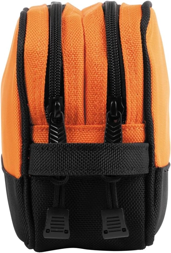 Klein Tools 55582 Tool Pouch Zipper Bag, Dual Compartments, 10-Inch x Orange Product Details Color: Orange Brand: Klein Tools Material: Polyester Product Dimensions: 10"L x 3"W x 6"H Item Weight: 0.71 Pounds Number Of Pockets: 2 Closure Type: Zipper Manufacturer: Klein Tools Number of Compartments: 2 Item Package Dimensions L x W x H: 15.59 x 7.8 x 3.15 inches Package Weight: 0.36 Kilograms Item Dimensions LxWxH: 10 x 3 x 6 inches Brand Name: Klein Tools Model Name: 55582 Suggested Users: unisex-adult Number of Items: 1 Part Number: 55582 Included Components: Double Zipper Bag, 10 x 6-Inch Color: Orange Brand: Klein Tools Material: Polyester Product Dimensions: 10"L x 3"W x 6"H Item Weight: 0.71 Pounds DUAL COMPARTMENTS: Zipper bag has two compartments to organize small tools, supplies, and parts, keeping items like meters and leads, sockets and wrenches, or earplugs and gloves separated MADE TO LAST: Tool pouch body is made with heavy-duty 1680d material with a 2520d reinforce 3-Inch gusseted bottom allowing it to stand up for easy access CONVENIENT SIZE: At 10-Inch (25 cm) long x 6-Inch (15 cm) high, the double-zipper bag bag can be easily loaded into toolboxes, tool bags, tool totes, and backpacks EASILY IDENTIFY CONTENTS: White space on front to write bag contents or name EASY TO CARRY HANDLE: Tool pouch is easy to grab for quick transport on any job site MULTIPURPOSE BAG: Designed with the durability for tools but can be used for anything that requires storage organization like crafting, hobbies, electronics and school supplies ON THE GO: Quickly grab and conveniently carry smaller items while keeping them organized when not wanting to carry a full bag or tote