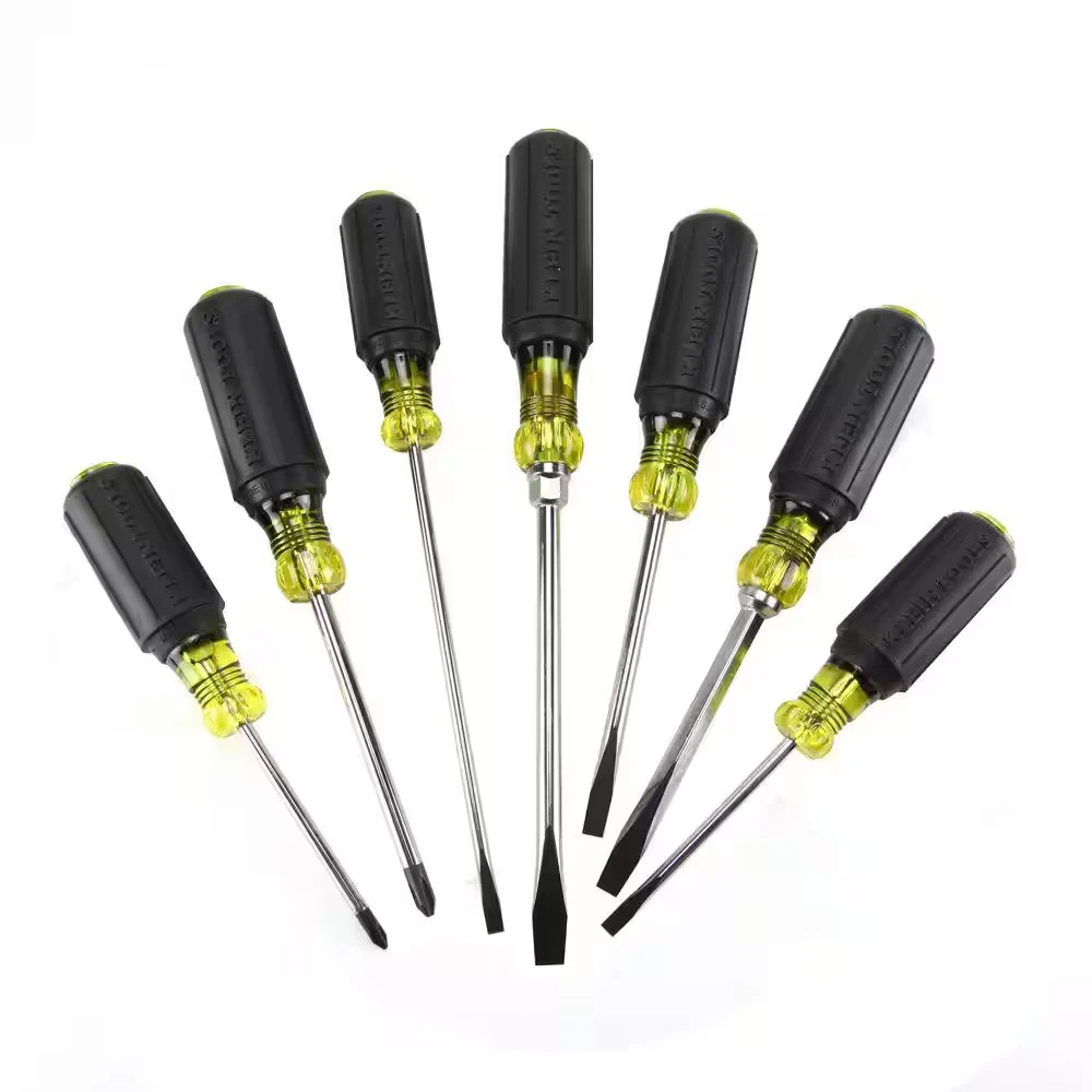 Store New Arrivals Add to Favorite View Feedback Contact Klein Tools 7-Piece Assorted Screwdriver Set with Cushion Grip Handles Description Color Family Black Drive Style N/A Electrical Tools Features No Additional Features Hand Tool Type Screwdriver Set Individual/Set Set Number of Pieces 7 Returnable 90-Day Tool Set Type Screwdriver Sets Tools Product Type Hand Tool Manufacturer Warranty Please refer to the attached warranty document in the Product Overview section above under Info & Guides. Set with 3 cabinet, 2 Phillips, and 2 keystone tip screwdrivers Screwdriver with patented tip-ident, has cushion grip handle Chrome plating resists corrosion This 7-Piece Klein Tools Screwdriver Set contains the most frequently used, general purpose screwdrivers. Included are three cabinet-tip, two Phillips-tip, and two keystone-tip style screwdrivers. Each screwdriver features Klein's patented Tip-Ident which allows quick identification of the type of screwdriver and tip orientation. These screwdrivers are a general-purpose selection of the most frequently used screwdriver tips and sizes Screwdriver Set includes three cabinet-tip, two Phillips-tip and two keystone-tip styles Cushion-Grip handle for greater torque and comfort and premium chrome-plated for smooth feel and corrosion resistance Internal flanges inside handle provide solid, twist-resistant blade anchor Made in USA Special heat-treated shafts Precision-machined tip for exact fit Meets or exceeds applicable ASME / ANSI specifications Tip-Ident quickly identifies the screwdriver type and tip orientation Note: product may vary by store Note: product may vary by store ABOUT US We offer the best prices around on high quality products. Our E-store includes tools, general home, garden items and more. SHIPPING We are always working hard to ensure your package arrives as soon as possible. Please understand that some factors like weather, high postal traffic, and the performance of shipping companies are outside of our control. We offer free shipping to the lower 48 states and ship within 4 business days of payment, usually sooner. We do not accept P.O. Boxes. Please provide a physical address. RETURNS We offer a 30-Day Return Policy on items which you are not completely satisfied with. You have the option for a full-refund or an exchange of the item. No returns are available on items shipped outside of the USA. PAYMENT We accept PayPal. CONTACT US This page content is yet to come Please ad us to your favorite seller and visit again later Thank You CUSTOMER SATISFACTION We try our very best to make sure every customer is completely satisfied. If there's a problem, message us! We're happy to help. WE ACCEPT Copyright © 2017 AutoDs. | All Rights Reserved