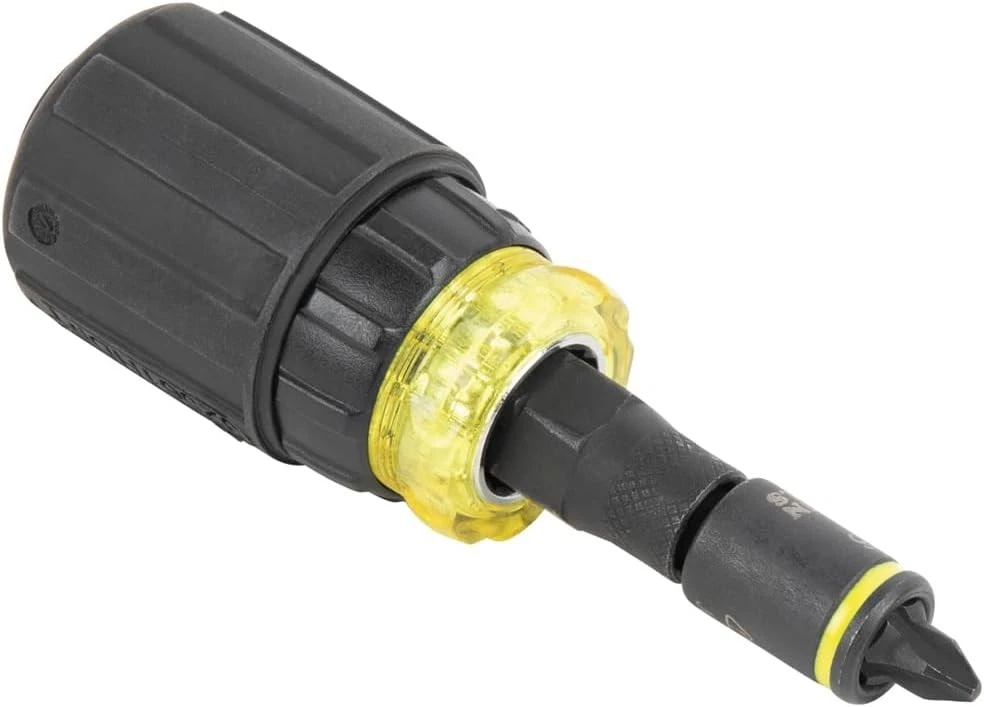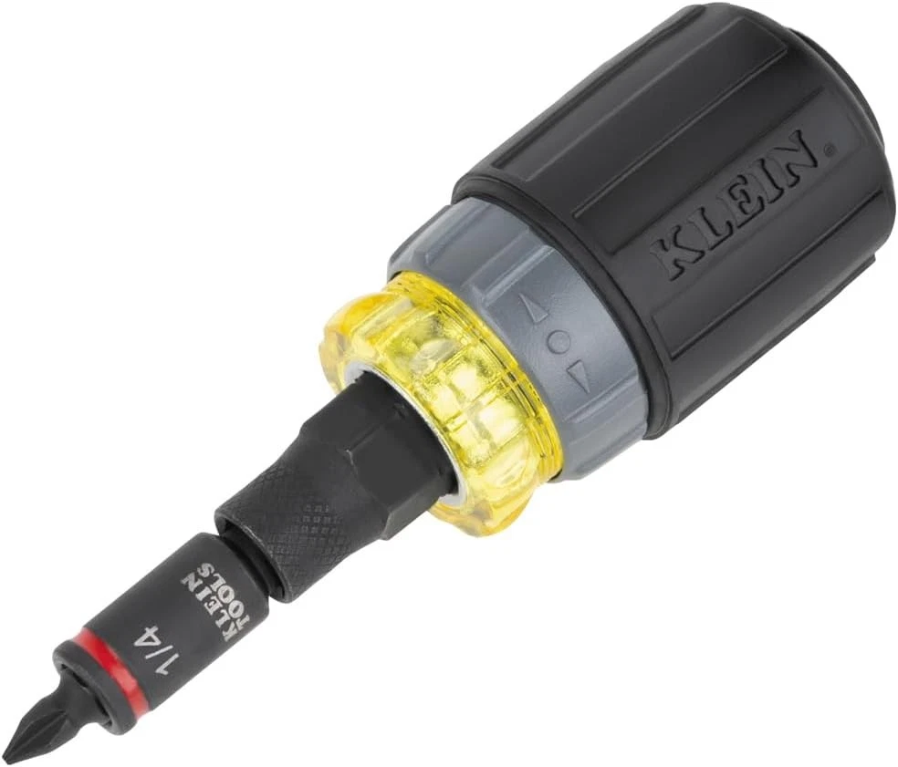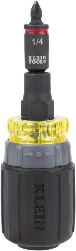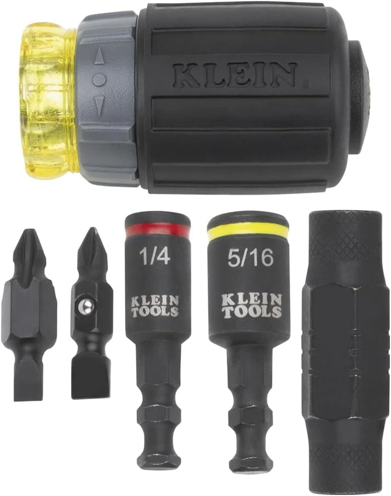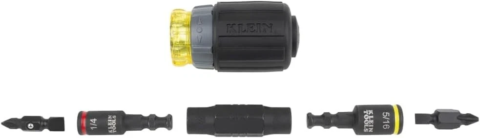 Klein Tools 32561HDRT KNECT 7-in-1 Ratcheting Screwdriver, Impact Black Description The 7-in-1 Ratcheting Impact-Rated Stubby Screwdriver / Nut Driver is part of Klein's KNECT system. KNECT is a cross compatible impact-rated driver and ratchet system that delivers a seamless back and forth transition between hand and power tools. This versatile set houses popular tips and nut driver sizes. This stubby tool is small to allow easy access to tight work spaces and was designed with a 1/4-Inch deep bit holding feature. For more than 160 years, Klein Tools has manufactured premium-quality, professional-grade hand tools that deliver the performance, durability and precision needed to get the job done right. Our family of engineers, workers and craftsman continue to put six generations of expertise into every tool we create by using only the highest quality materials, superior workmanship, and keeping manufacturing as close to home as we can. Klein isn't just the name of our company, it's also our family name. And since we're an American company that's family-owned and family-run, you know you can count on us to be here tomorrow. Klein Tools doesn't just make great products, we make great products that stand up to the demands of the professionals who use them every day ... Since 1857. Features: VERSATILE STUBBY DRIVER: KNECT 7-in-1 Ratcheting Impact-Rated Stubby Screwdriver / Nut Driver features 3 hex nut drivers and 2 double-sided screwdriver bits NUT DRIVER AND BIT SIZES: 1/4, 5/16-Inch nut drivers, #1, #2 Phillips, 3/16, 1/4-Inch slotted, 1/4-Inch bit adapter and 1/2-Inch KNECT collet RATCHETING: Designed for faster driving with the forward, fixed and reverse ratcheting feature KLEIN KNECT (S) COMPATIBLE: Klein KNECT is a cross-compatible driver and ratchet system IMPACT-RATED COMPONENTS: Designed for heavy-duty applications PRECISION-MACHINED TIPS: Provides exact fit into fasteners to reduce cam-out CUSHION-GRIP HANDLES: Offer greater comfort and torque while fastening Product Details: Brand: Klein Tools Material: Stainless Steel Drive System: Phillips Finish Type: Painted Number of Pieces: 7 Drive Bit Shank Style: 1/4 inch Bit Compatibilities: Phillips #1, #2, 3/16, 1/4 inch slotted, 1/4, 5/16 inch hex nut drivers Manufacturer: Klein Tools Part Number: 32561HDRT Item Weight: 5.3 ounces Product Dimensions: 4.22 x 1.25 x 1.25 inches Country of Origin: Taiwan Item model number: 32561HDRT Color: Black Finish: Painted Item Package Quantity: 1 Head Style: Phillips Compatible Fastener Range: Screws (Phillips #1, #2, 3/16, 1/4 inch slotted), Nuts and Bolts (1/4, 5/16 inch hex) Special Features: Adjustable Torque Batteries Required?: No Brand: Klein Tools Material: Stainless Steel Drive System: Phillips Finish Type: Painted Number of Pieces: 7 Handling We will ship all orders within 3 business day of payment. Delivery We take pride in offering fast and reliable delivery for your orders! We are committed to getting your products to you as quickly as possible. Generally, we would like to inform you that all orders will be delivered to you within 1-3 business days after processing.However, in some cases, delivery times may vary depending on the buyer's location. Especially in remote or rural areas, the expected delivery time may be extended. In such situations, we do our best to ensure that your order reaches you as quickly as possible.If there are any delays, we will be happy to contact you to explain the situation. Our goal is to enhance your satisfaction with our fast delivery times. We work diligently to ensure that your order arrives safely.Trust us and enjoy our speedy delivery! Return Policy All items qualify for returns within 30 days of receipt. Buyer is responsible for return shipping on any item that is not damaged. Feedback We take our reputation seriously, we buy and sell online, so we understand the value of trust. If you are unsatisfied with your order, please contact us and we will work with you to resolve it to your satisfaction.