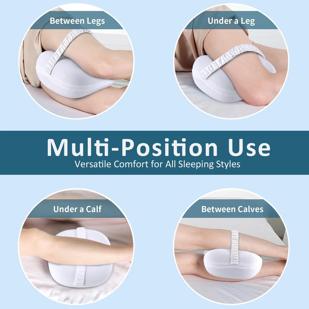 【KNEE PILLOW TO HELP SLEEPING】--As a side sleeper, you don't sleep perfectly straight. Your top leg drops in front of you putting pressure on your back, your hip joints twist & your knees touch, causing pain. Our knee pillow for side sleepers can help you relieve the discomfort of back, buttocks, legs, knees and sciatica. The contour design of the leg pillow perfectly fits the human body curve, allowing your legs to maintain a natural posture during sleep. Make you refreshed the next day. 【SLOW REBOUND MEMORY FOAM KNEE PILLOW】Our leg pillow is CertiPUR-US and Oeko-Tex certified slow rebound memory foam, which is non-toxic, odorless. The unique 3S slow rebound hip pillow lies in its ability to gradually adjust and mold to the contours of your leg and knee. And after long-term use, the leg pillow for side sleeping will not become flat, lose its shape or density. Unleash your best sleep with our side sleeper pillow between legs- the ultimate blend of comfort, style and quality! 【BREATHABLE WASHABLE PILLOWCASE & ELASTIC STRAP】 Our side sleeper pillow comes with a high quality double-layer pillowcase, which is soft and breathable. It has a zipper, removable and machine washable and skin-friendly. The cooling knee pillow cover is made of cold silk fabric that fits perfectly against the skin. Keeps you stay cool and comfortable all night! Unlike other knee and hip pillows, our pillow comes with an elastic strap to keep the pillow stay in place when you sleep or rest. 【WIDE RANGE OF APPLICATIONS LEG PILLOW】The contour knee pillow can be placed in multiple positions to prevent aches and pains. As a knee pillow, leg pillow for side sleeping, knee pillow for side sleepers, hip pillow, pillow for side sleepers, leg pillow for back pain, leg elevation pillows for after surgery, smooth spine alignment pillow, and body pillows for adults. 【HASSLE FREE AFTER-SALE SERVICE】Pick out an excellent knee pillow, and you will find your sleeping improves unexpectedly. Not only soothing relief for sciatica, back, HIPS, knees, but also sleep better in the night. knee pillow for side sleepers is perfect for the elderly, office workers, students and all ages people, long-term usage will greatly improve the quality of sleep. We promise our quality products and customer service, just contact us if any issues arise!