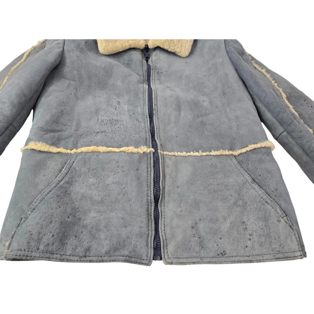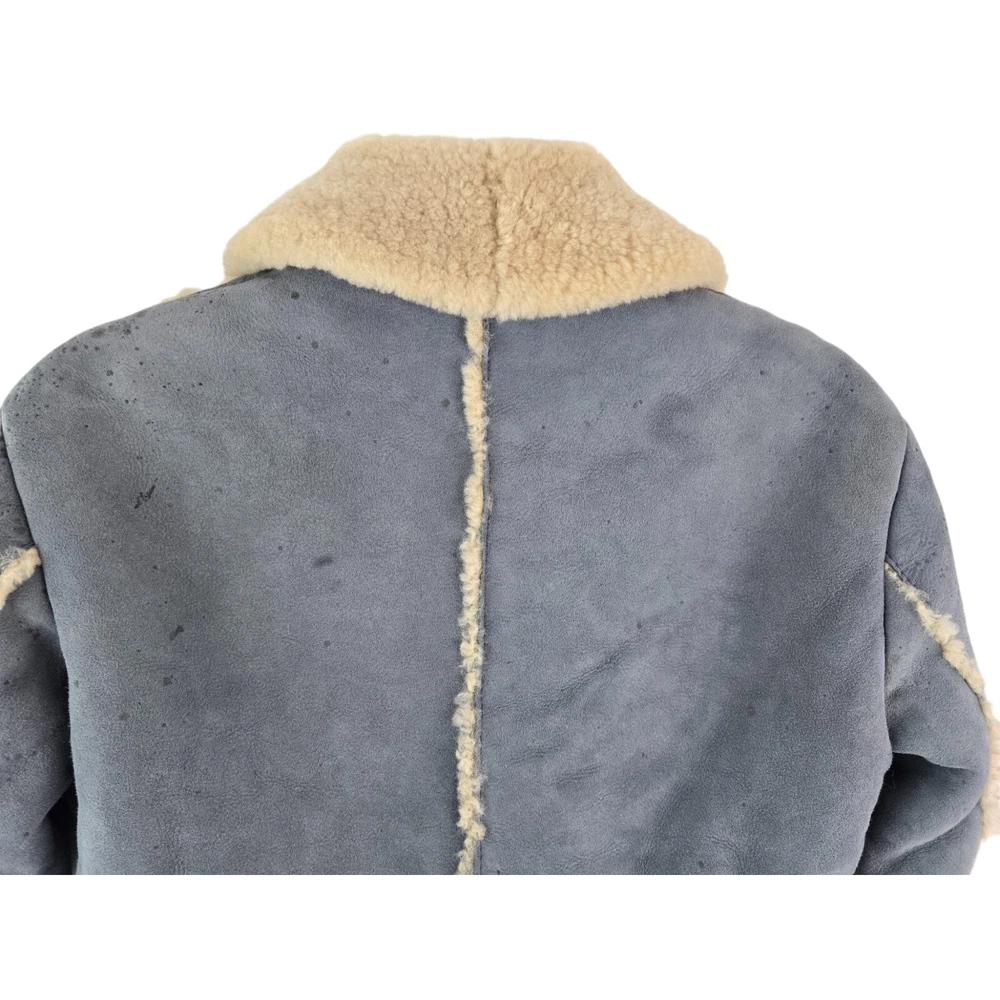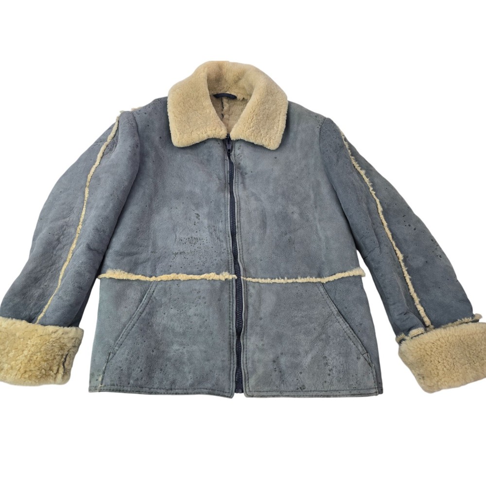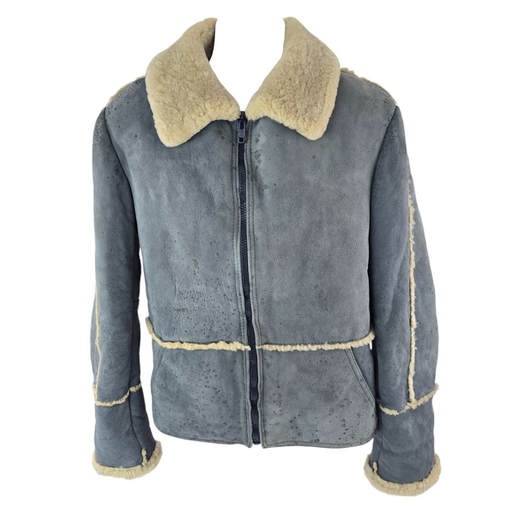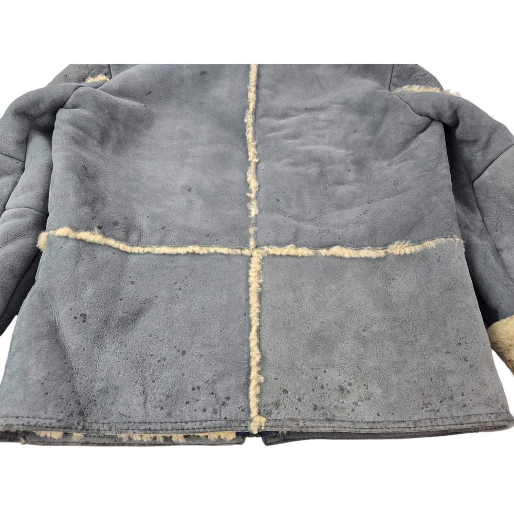 Available for sale is a very nice Men's Knight Tailors Shearling Sheepskin Lined Full Zip Bomber Jacket in size 40" which fits a Men's Small to Medium or a 20-inch chest. M ade in New Zealand by Knight Tailors, this jacket is extraordinarily warm with super thick cream/ivory sheepskin on the interior and a blue suede on the exterior. The jacket does have some stains throughout which may or may not come out from a good cleaning. It certainly is an incredible shearling jacket that compares to those made by Sawyer Of Napa, Saks, or Overland. This beautiful Shearling Jacket is a vintage item and it does have many stains and marks throughout and some normal wear for its age but it still is in decent shape. The jacket has no holes, tears, balding, or major flaws other than the marks. Check the photos to better gauge its condition. It also has a light vintage smell to it. Please check the measurements below. Measurements: Shoulder: 18.5" Chest: 21.5" Length: 26 Sleeve: 25.5" Payment: We Accept PayPal, and eBay Payments which accepts most debit & credit cards and linked bank accounts. Shipping: We ship within 24-48 hours and we generally use USPS Ground Advantage or USPS Priority Mail for most of our shipments. We ship to al 50 states and we also ship Internationally as well, using eBay's International shipping service. We also offer expedited International shipping for an additional cost as well.