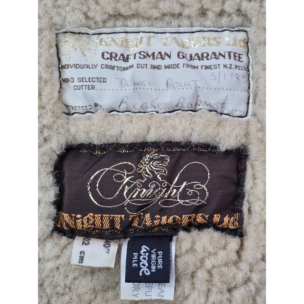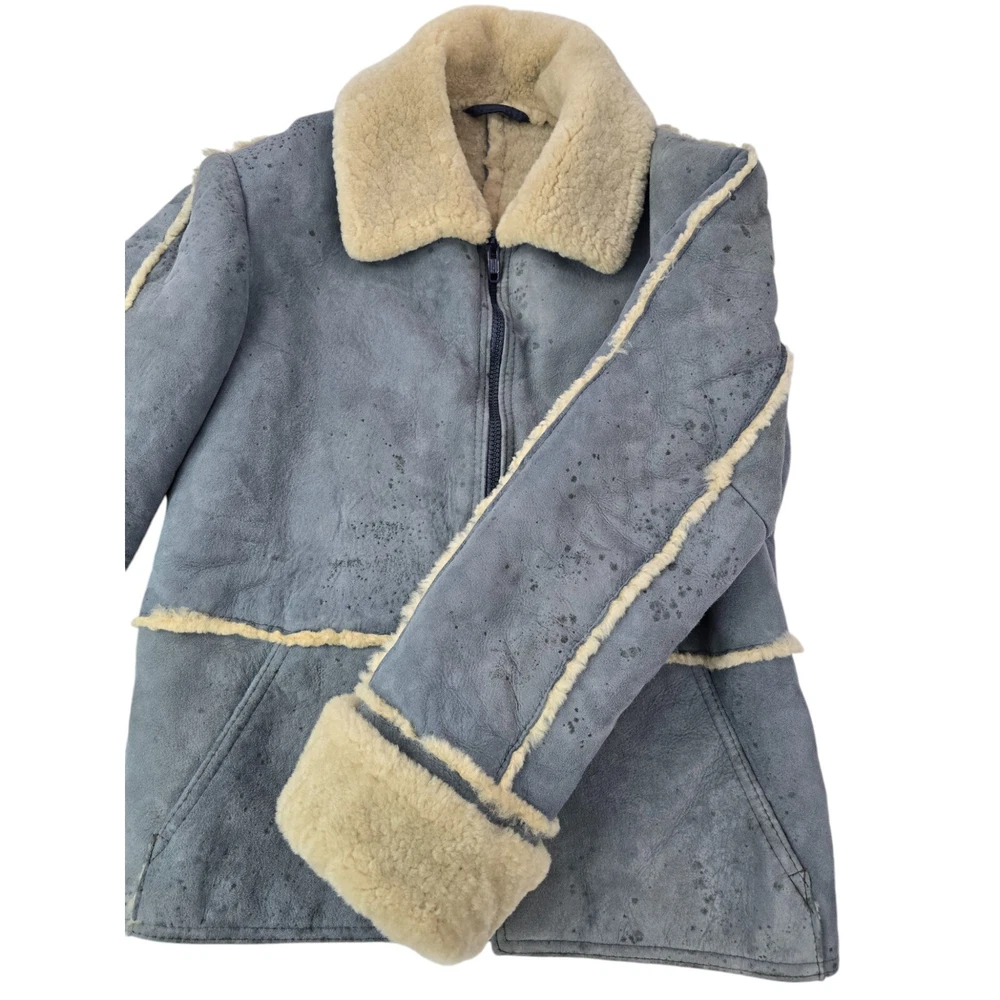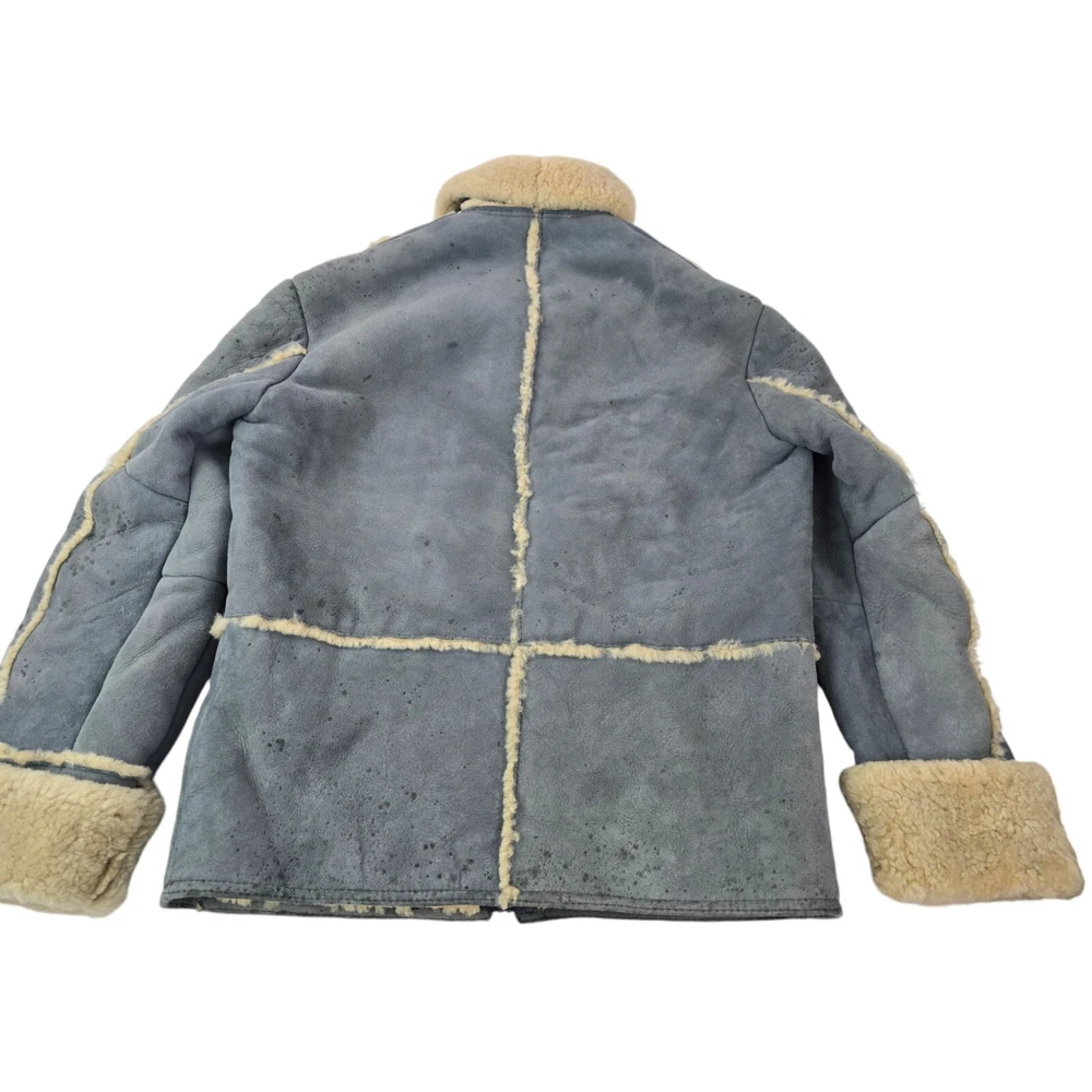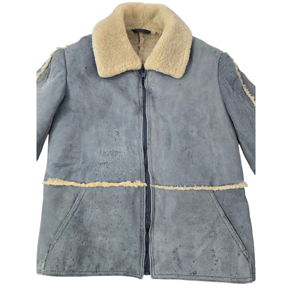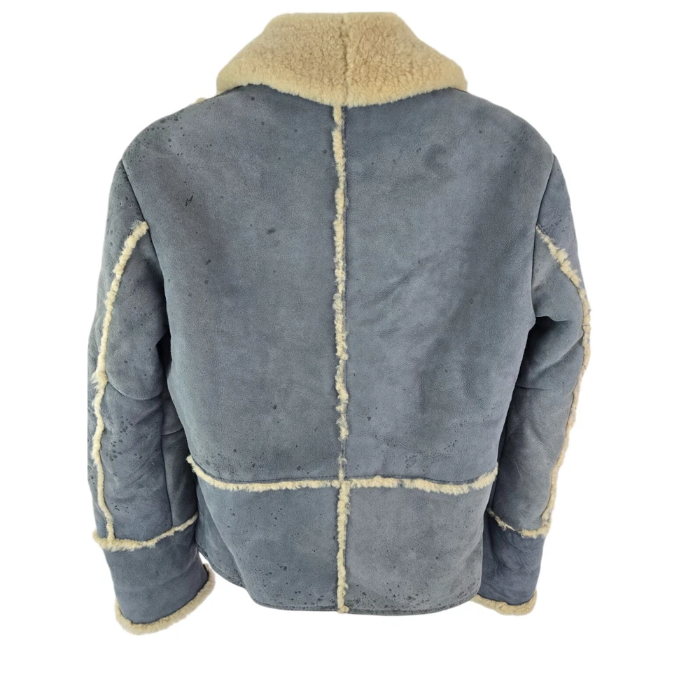Available for sale is a very nice Men's Knight Tailors Shearling Sheepskin Lined Full Zip Bomber Jacket in size 40" which fits a Men's Small to Medium or a 20-inch chest. M ade in New Zealand by Knight Tailors, this jacket is extraordinarily warm with super thick cream/ivory sheepskin on the interior and a blue suede on the exterior. The jacket does have some stains throughout which may or may not come out from a good cleaning. It certainly is an incredible shearling jacket that compares to those made by Sawyer Of Napa, Saks, or Overland. This beautiful Shearling Jacket is a vintage item and it does have many stains and marks throughout and some normal wear for its age but it still is in decent shape. The jacket has no holes, tears, balding, or major flaws other than the marks. Check the photos to better gauge its condition. It also has a light vintage smell to it. Please check the measurements below. Measurements: Shoulder: 18.5" Chest: 21.5" Length: 26 Sleeve: 25.5" Payment: We Accept PayPal, and eBay Payments which accepts most debit & credit cards and linked bank accounts. Shipping: We ship within 24-48 hours and we generally use USPS Ground Advantage or USPS Priority Mail for most of our shipments. We ship to al 50 states and we also ship Internationally as well, using eBay's International shipping service. We also offer expedited International shipping for an additional cost as well.