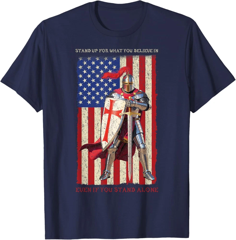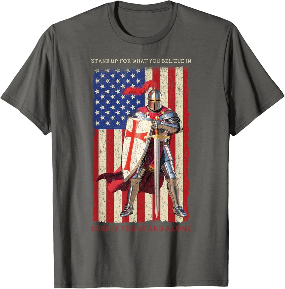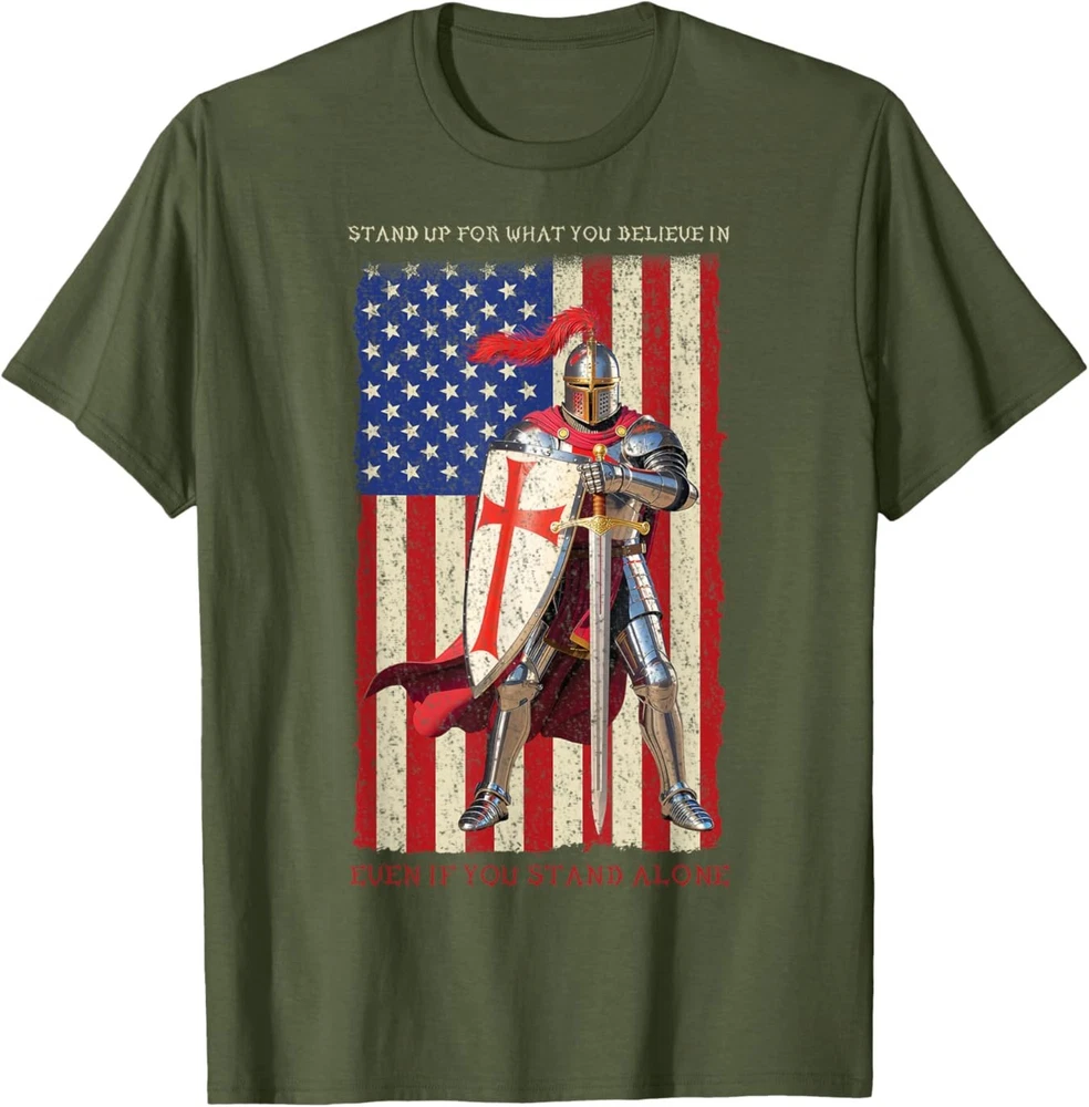 Knights Templar Crusader Medieval American Flag T-Shirt